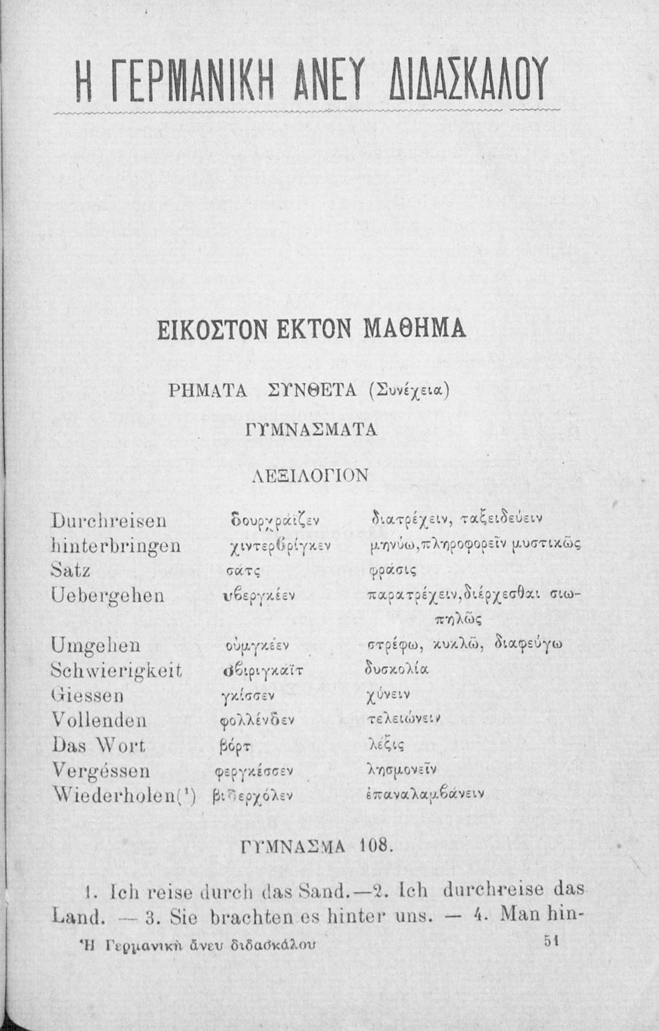 520 ## _aΜαθητικό Βοήθημα αυτοδιδασκαλίας Γερμανικών που περιλαμβάνει γραμματική, σύντομα κείμενα για την εκμάθησή της και λεξιλόγιο.