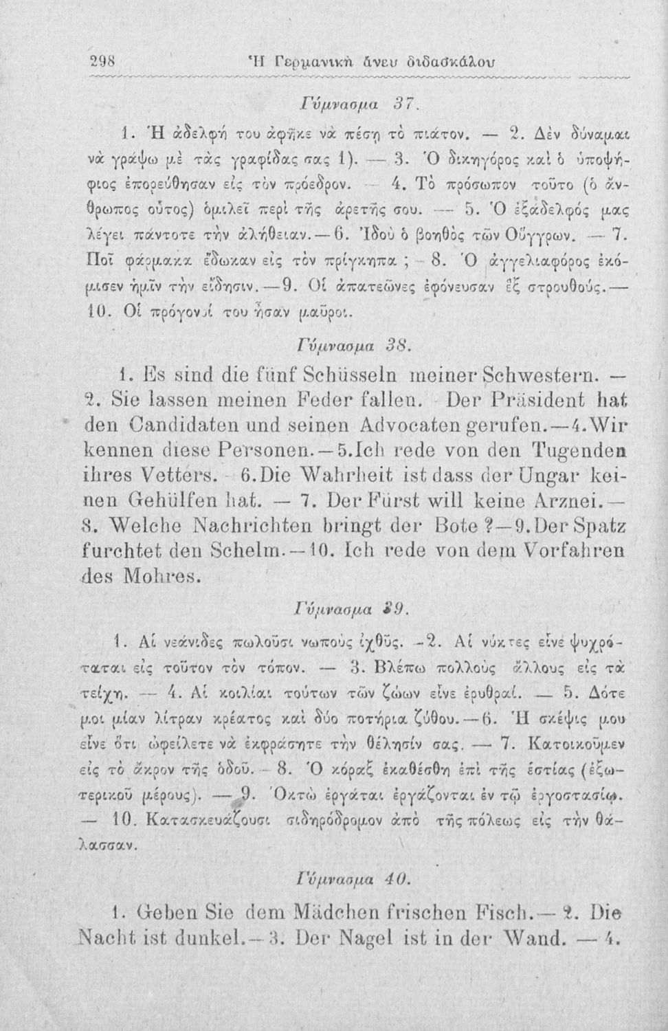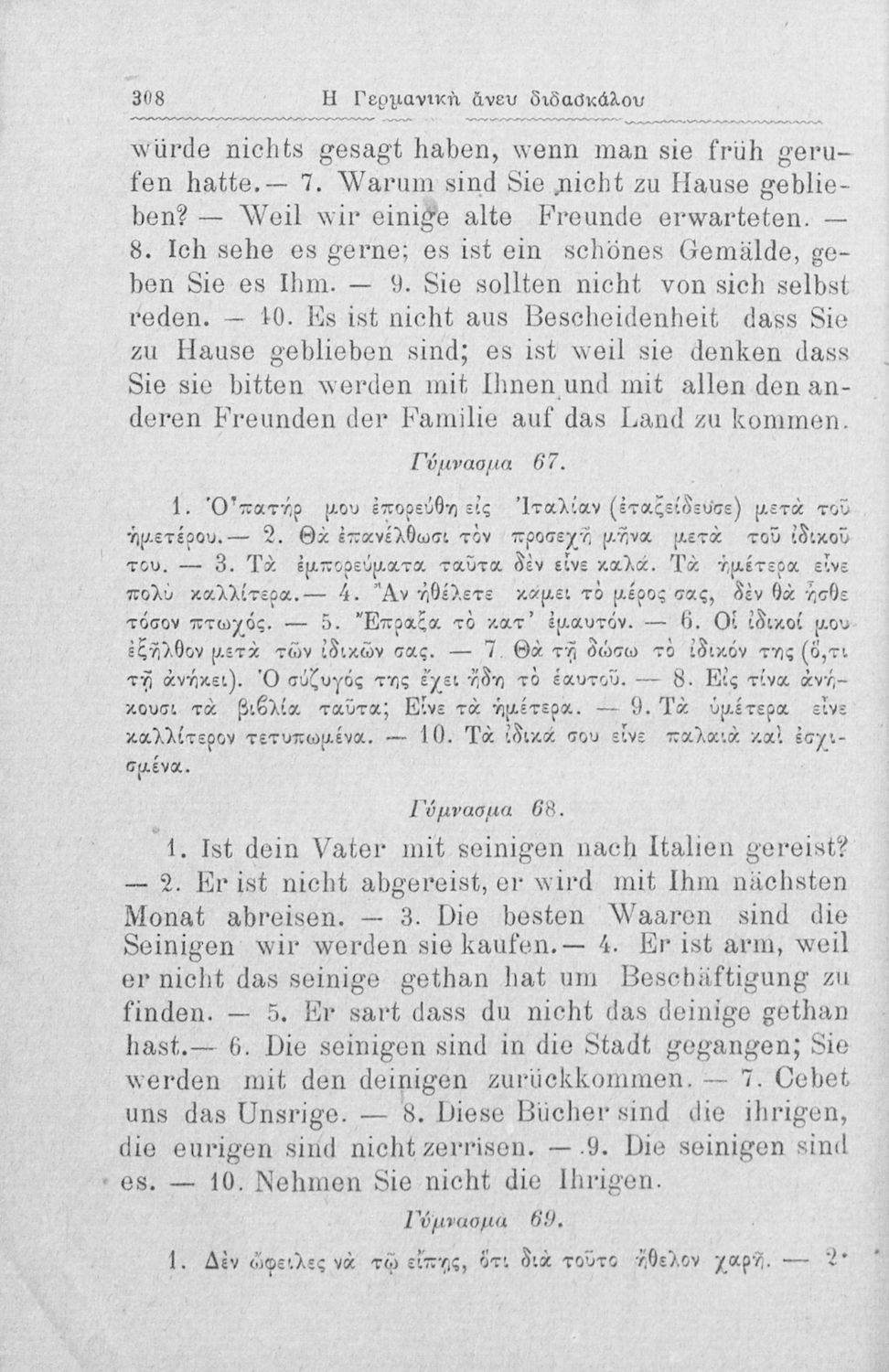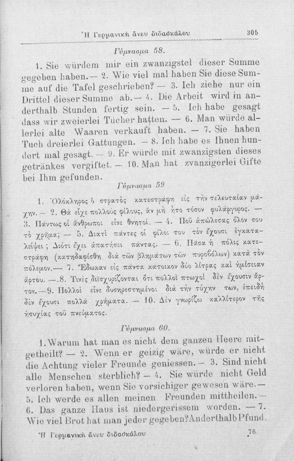 Πρόκειται για εγχειρίδιο που στόχο έχει την εκμάθηση της γερμανικής γλώσσας άνευ διδασκάλου. Το βιβλίο χωρίζεται σε δύο μέρη. Στο πρώτο μέρος, περιλαμβάνει και παρουσιάζει τα διάφορα μέρη του λόγου, τη σωστή ...