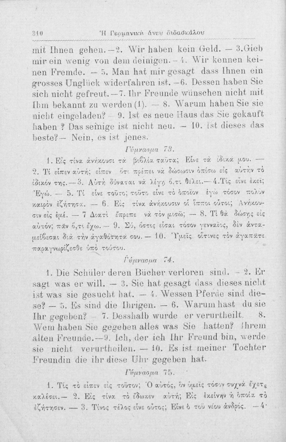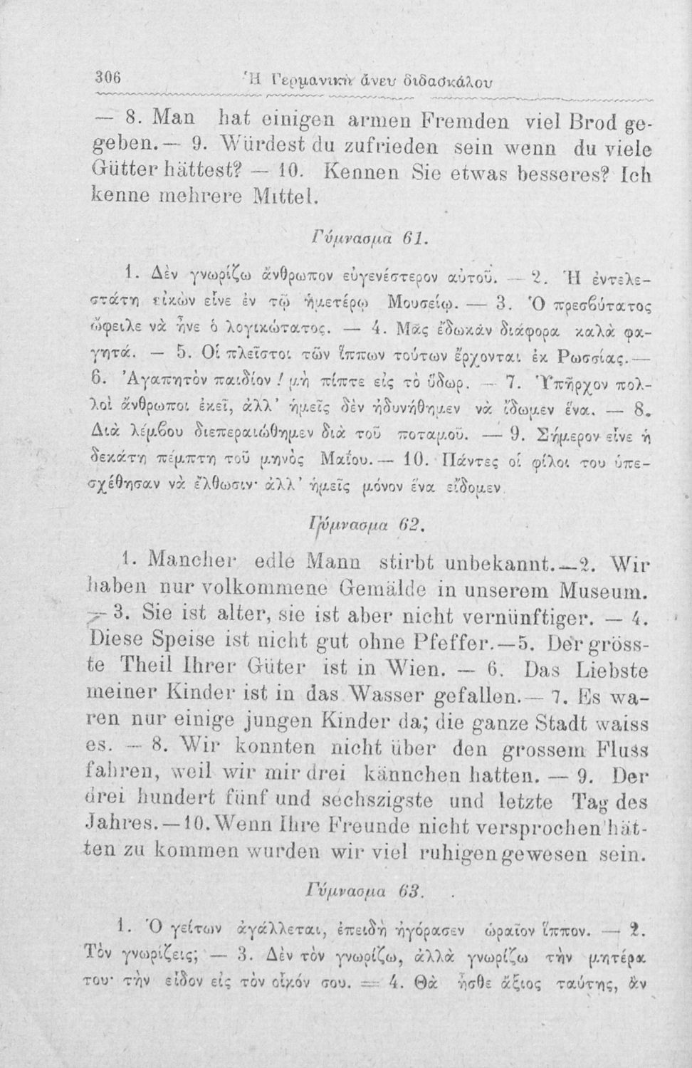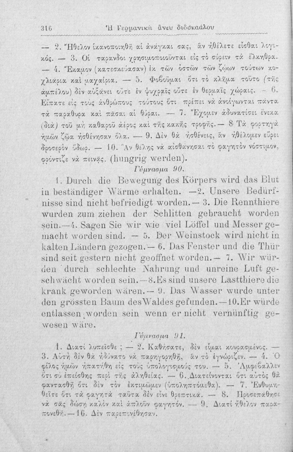 Πρόκειται για εγχειρίδιο που στόχο έχει την εκμάθηση της γερμανικής γλώσσας άνευ διδασκάλου. Το βιβλίο χωρίζεται σε δύο μέρη. Στο πρώτο μέρος, περιλαμβάνει και παρουσιάζει τα διάφορα μέρη του λόγου, τη σωστή ...
