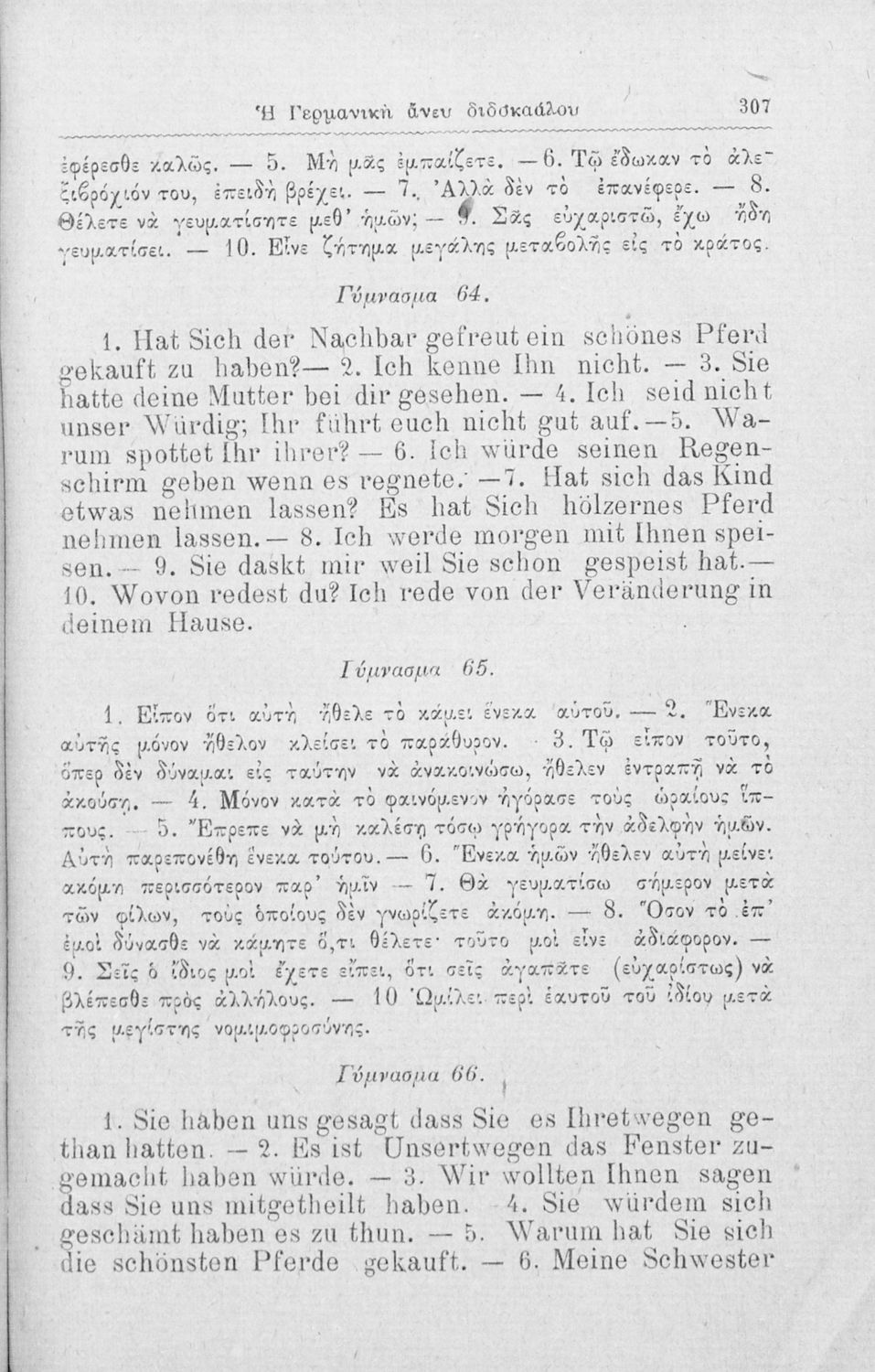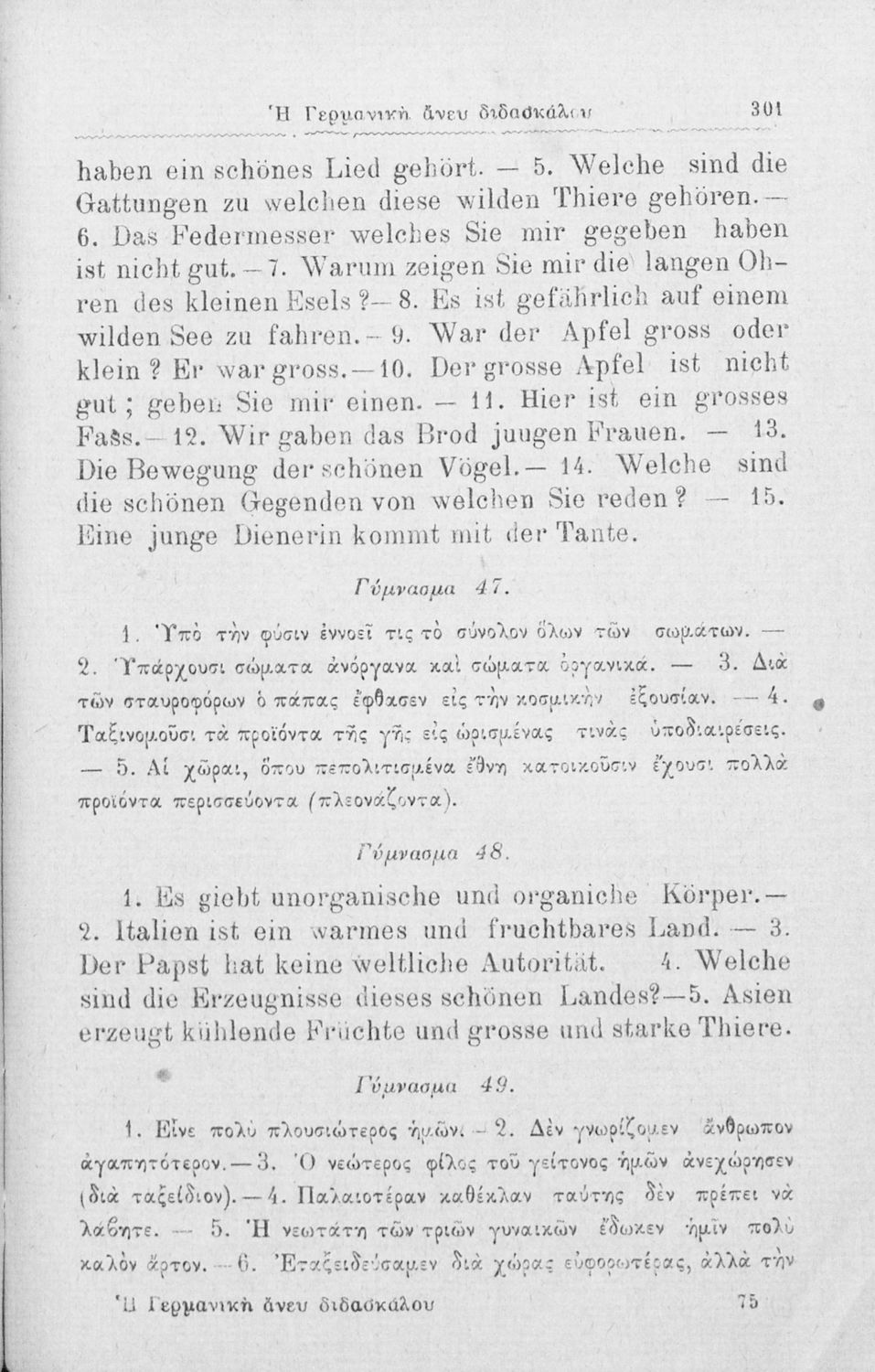 Τάξη:  Α' Γυμνάσιου / Β' Γυμνάσιου / Ανώτερα Παρθεναγωγεία / Α' Διδασκαλείου