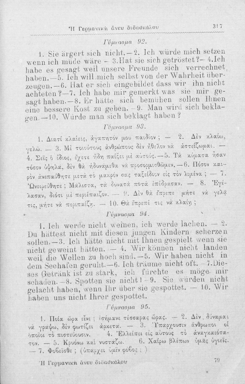 Πρόκειται για εγχειρίδιο που στόχο είχε την εκμάθηση, μέσω της μεθόδου της αυτοδιδασκαλίας κατά το σύστημα Traut-Berlitz-Dr Wogasli, των γραμματικών και συντακτικών φαινομένων της Γερμανικής γλώσσας σε ...