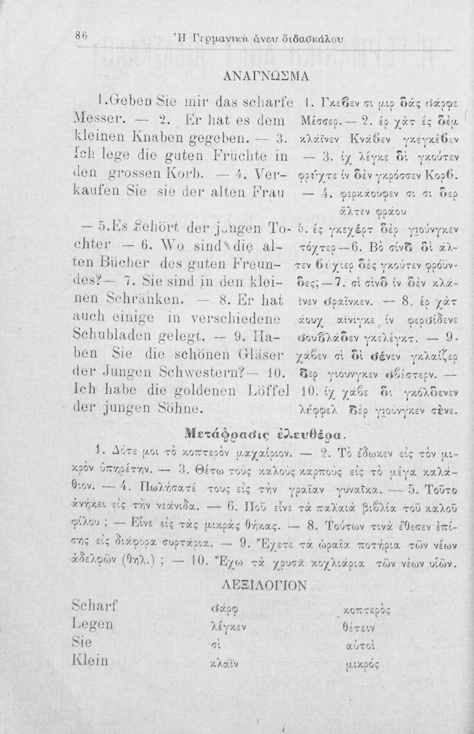 Σχολικό εγχειρίδιο Γ΄ και Δ΄ Δημοτικού που περιέχει τη γραμματικής της νέας ελληνικής. Την έκδοση επιμελήθηκε ο Γ. Λογοθέτης, τέως διευθυντής του επταταξίου δημ. Τμήμ.της Ευαγγελικής Σχολής.