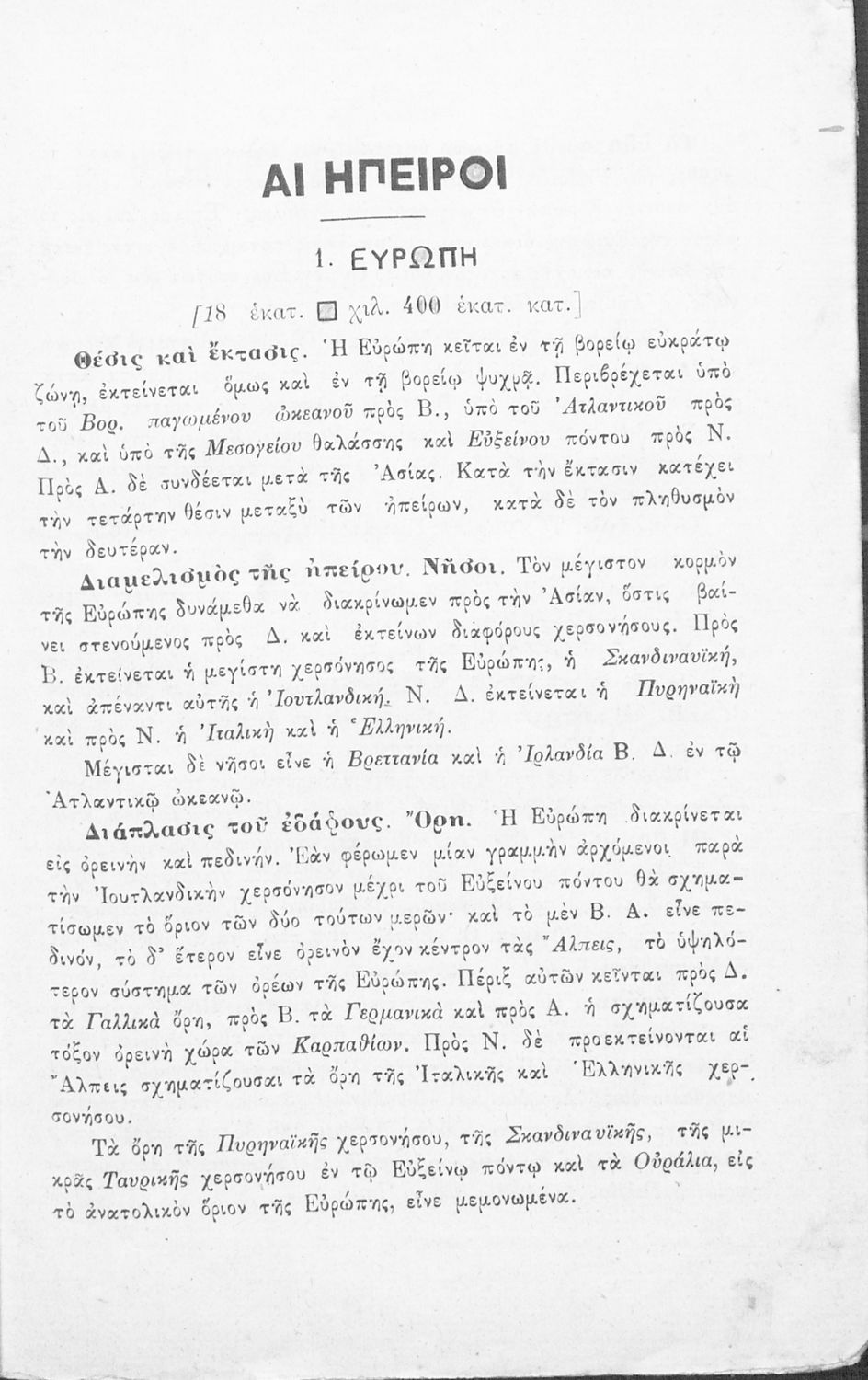 Σχολικό εγχειρίδιο Γεωγραφίας για τα Ελληνικά Σχολεία και Παρθεναγωγεία που περιλαμβάνει εισαγωγή στη φυσική, πολιτική και οικονομική γεωγραφία και μια γενική επισκόπηση της Ελλάδας και της Ευρωπαϊκής Τουρκίας