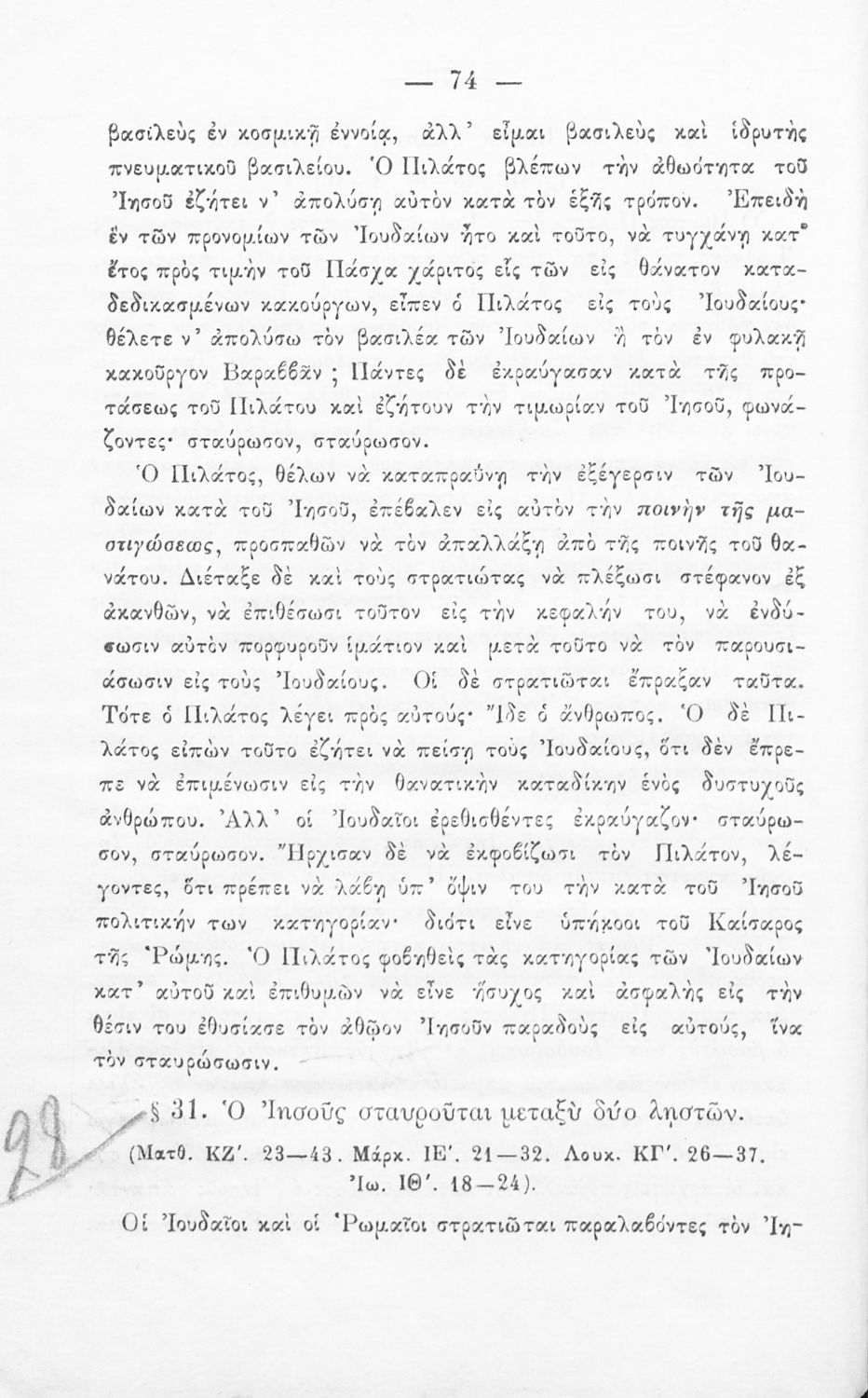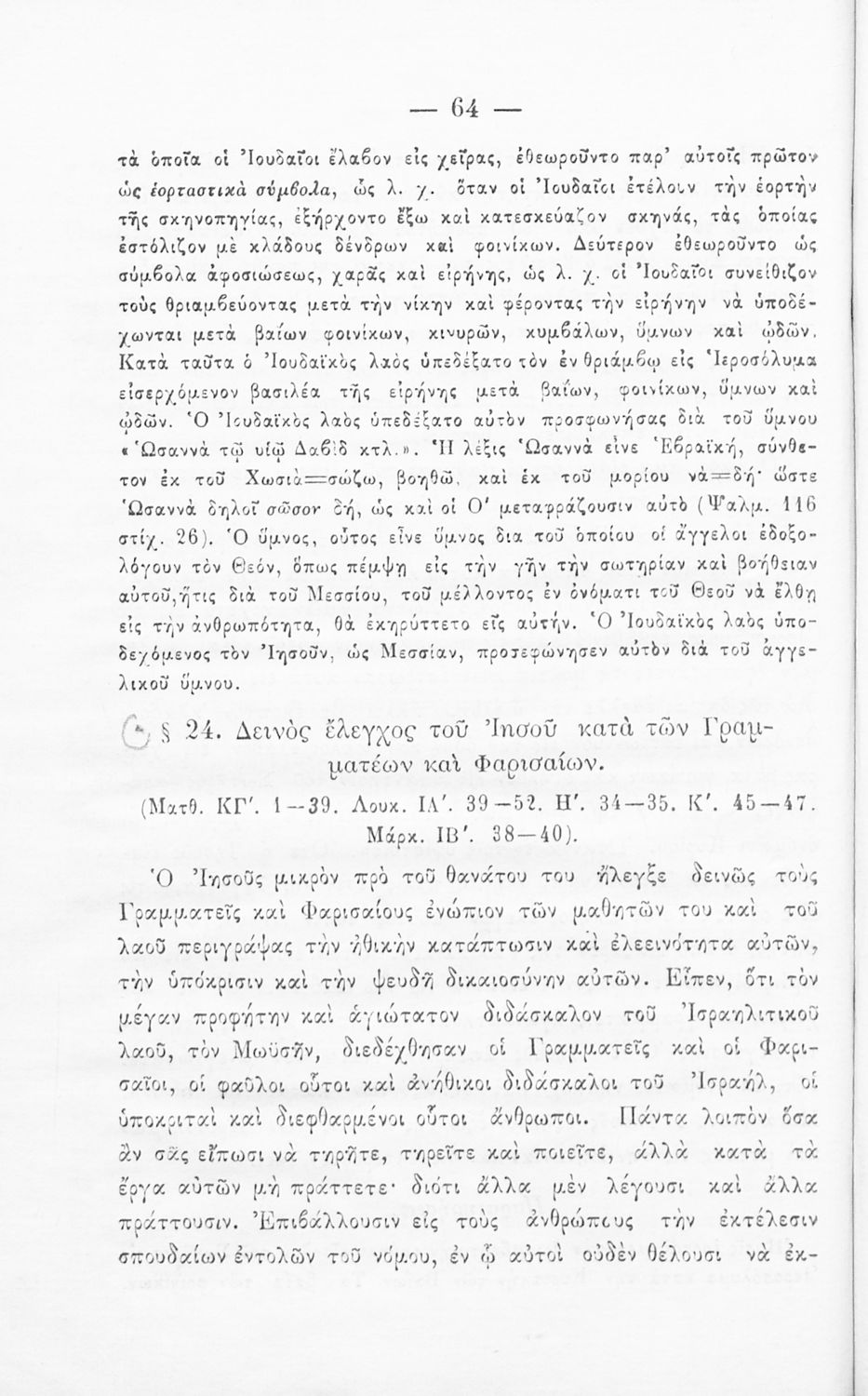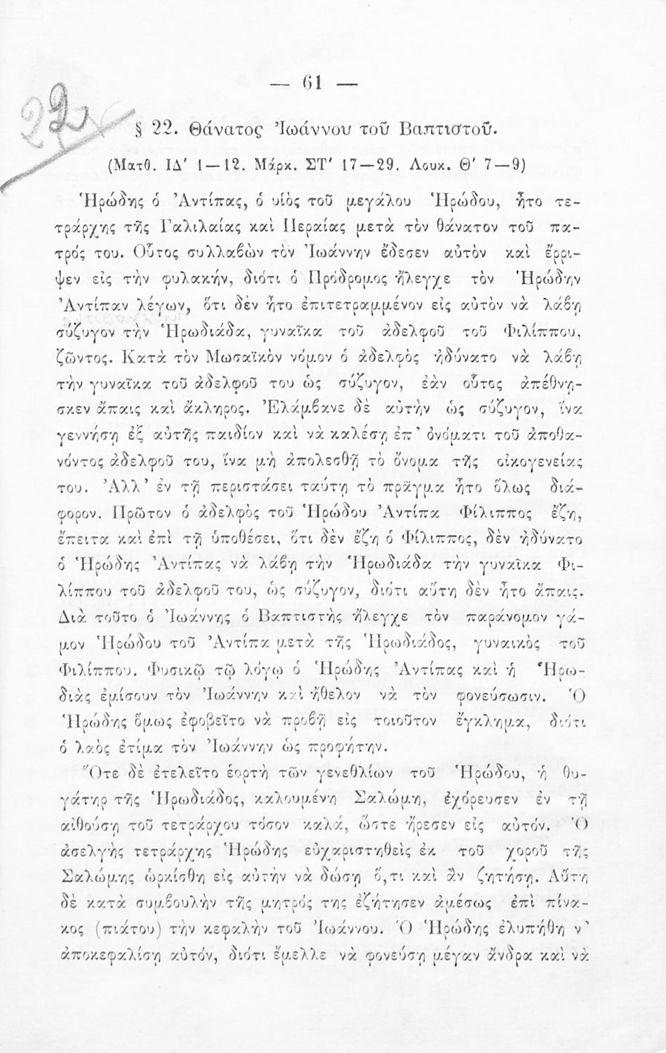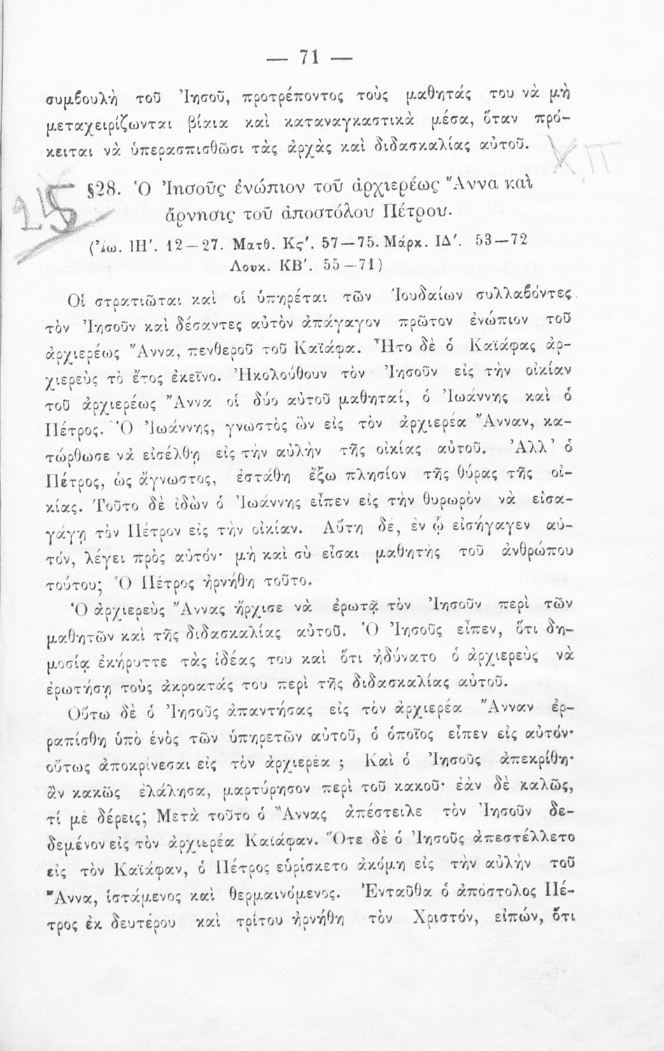Σχολικό εγχειρίδιο Θρησκευτικών για τα Ελληνικά Σχολεία και τα Παρθεναγωγεία που περιλαμβάνει την ιστορία της Καινής Διαθήκης από τον Ευαγγελισμό της Θεοτόκου μέχρι την ανάληψη του Ιησού Χριστού