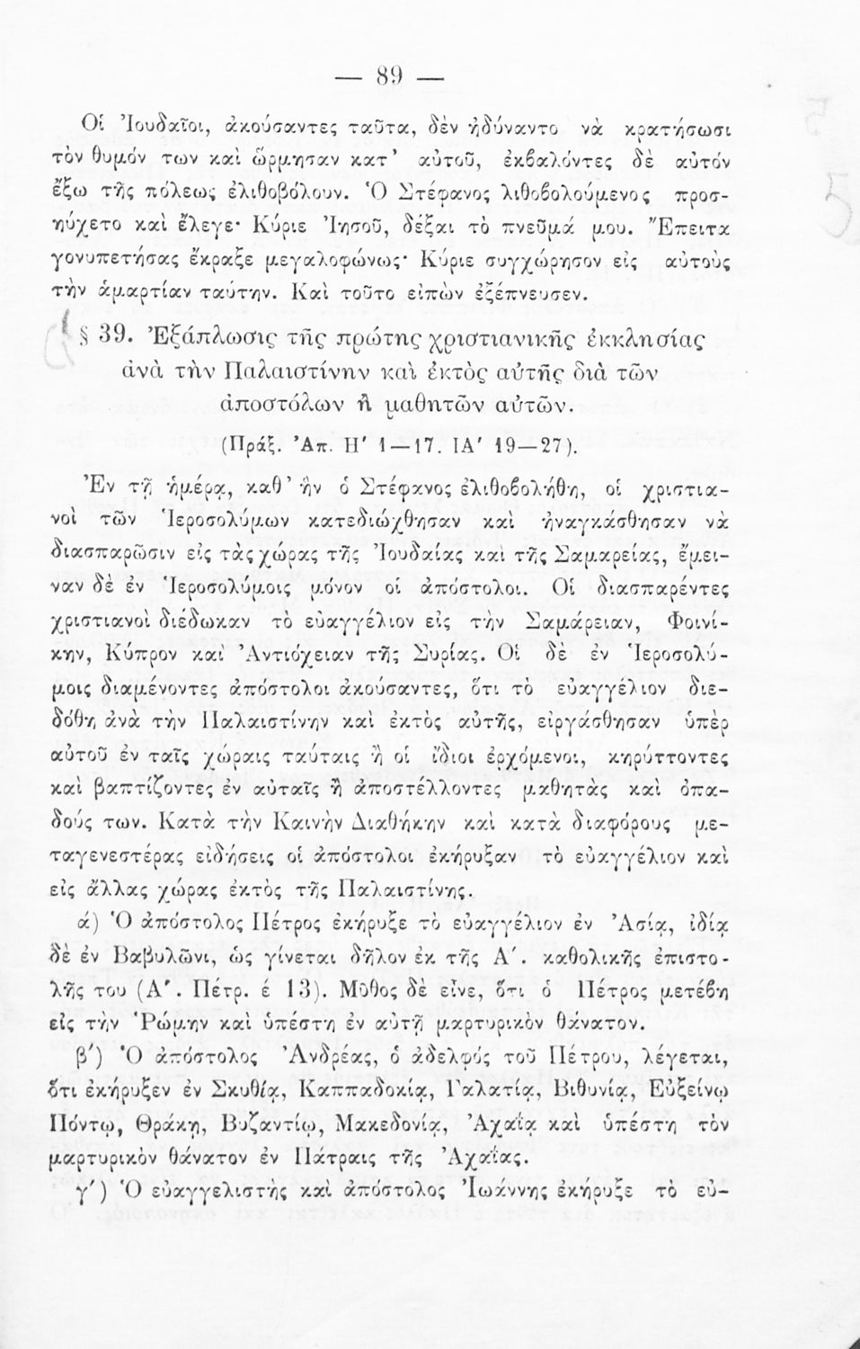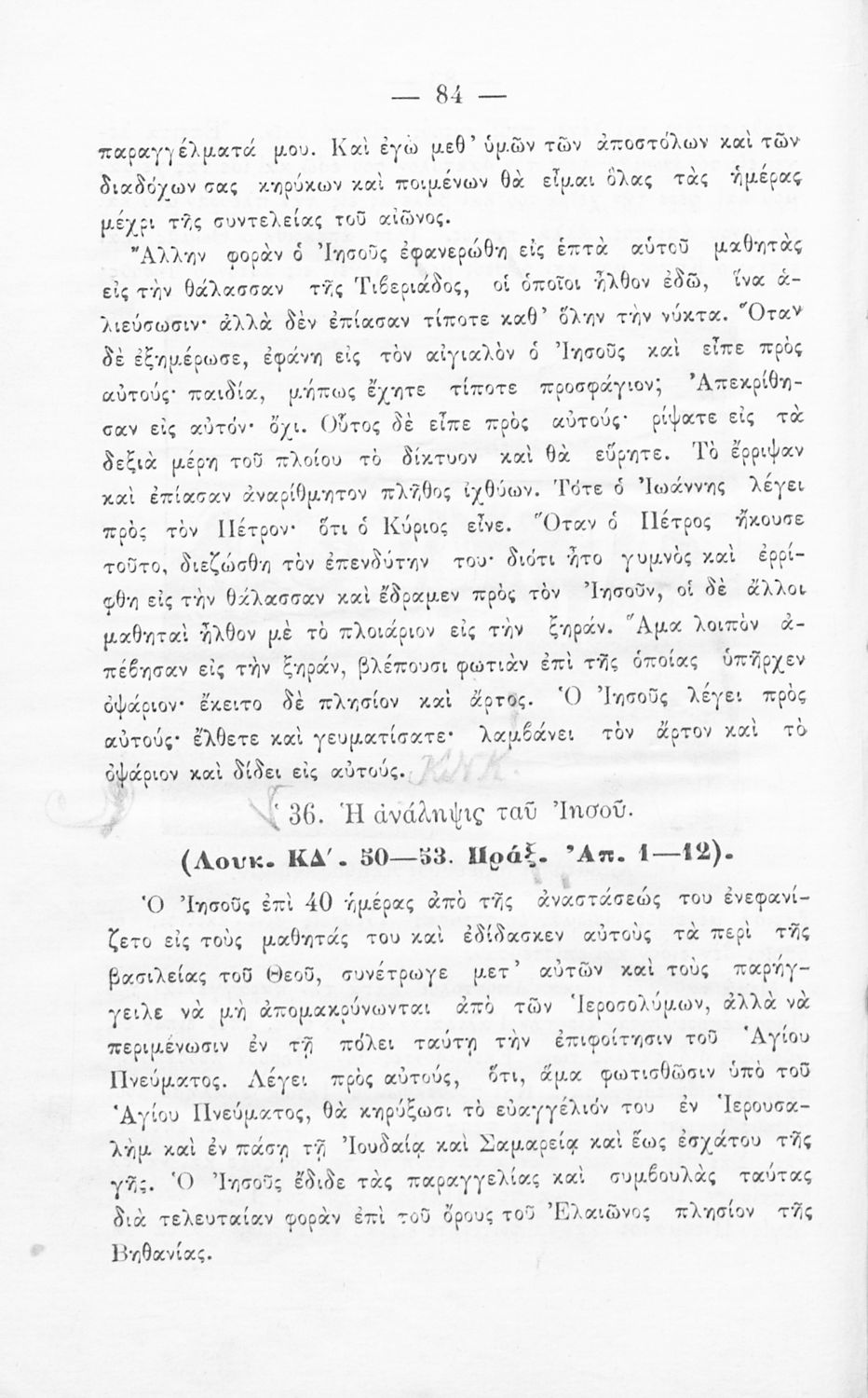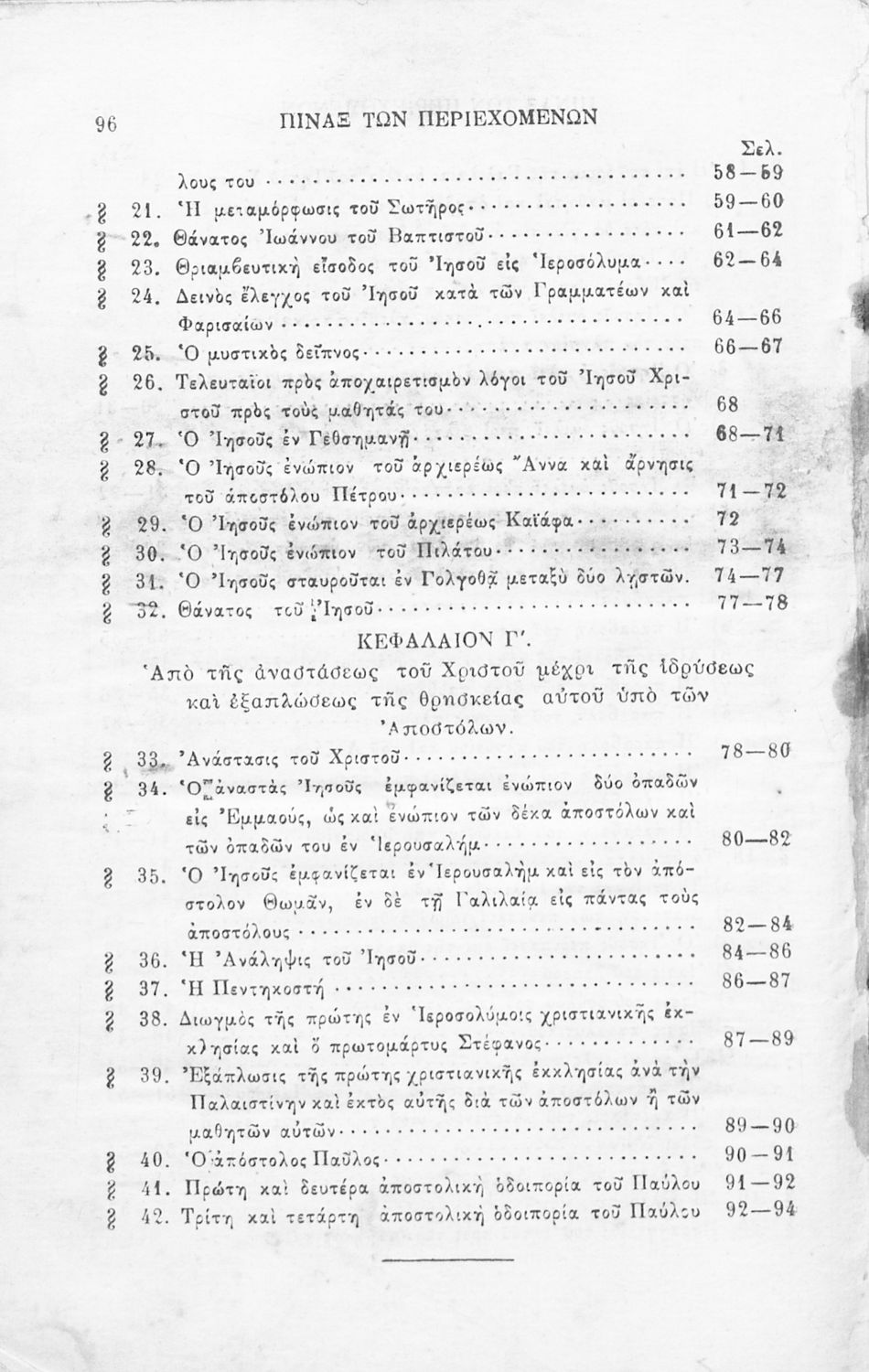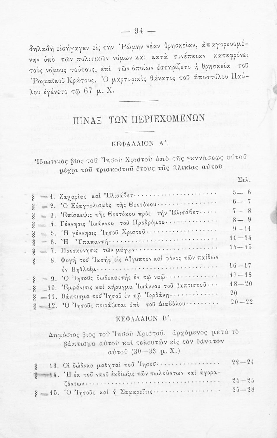 Σχολικό εγχειρίδιο Θρησκευτικών για τα Ελληνικά σχολεία και Παρθεναγωγεία που συνιστά μία εξιστόρηση της Καινής Διαθήκης από τη γέννηση της Θεοτόκου ως την ανάληψη του Χριστού και τη δράση των Αποστόλων.
