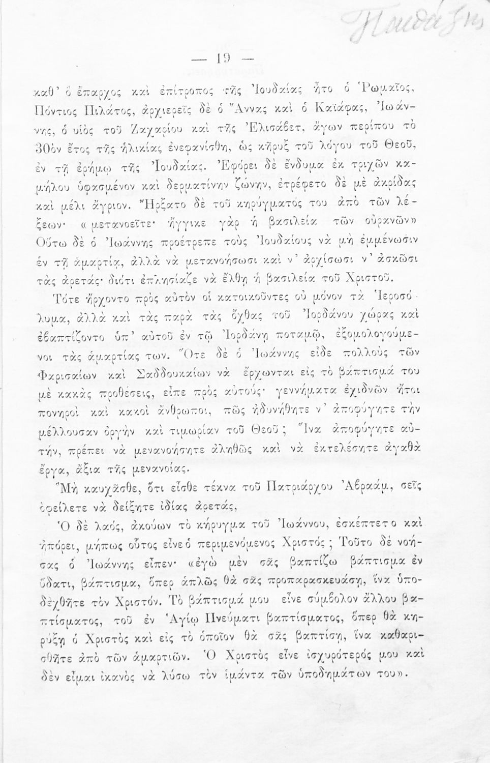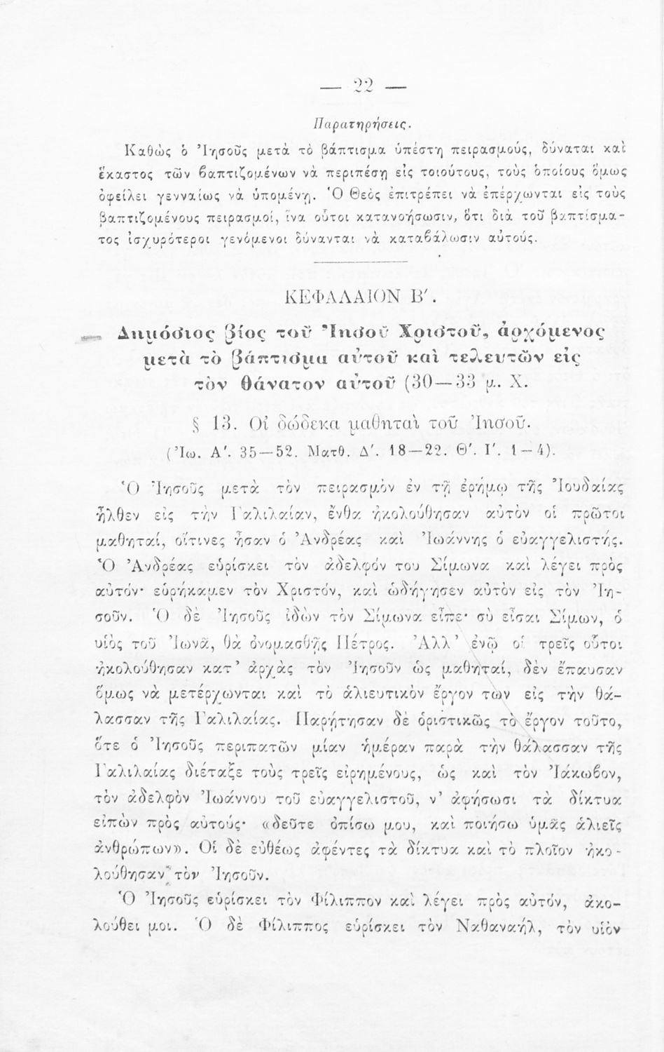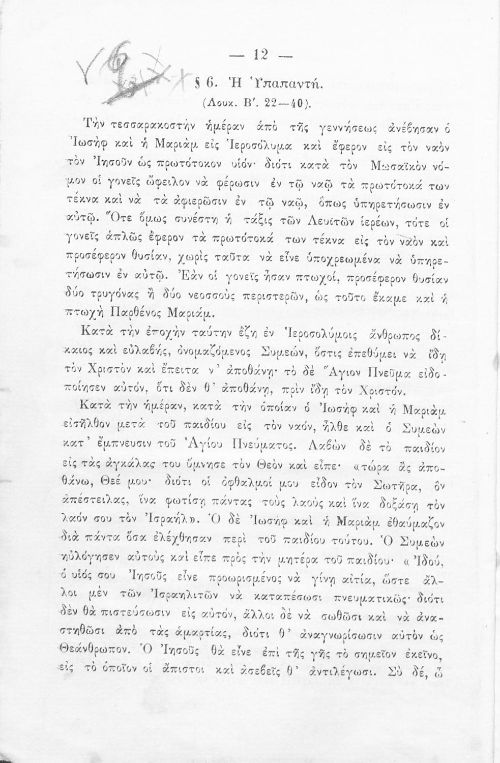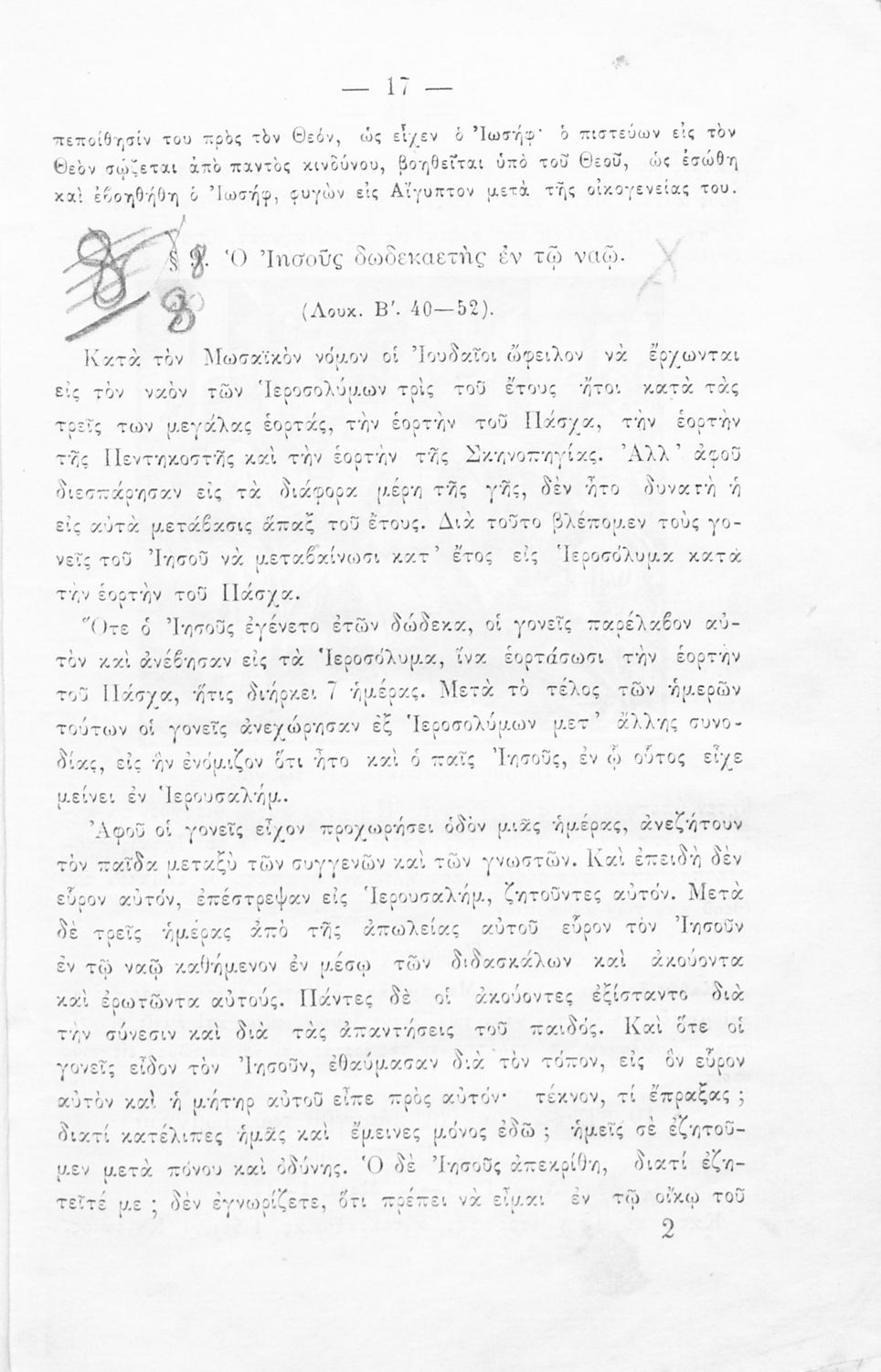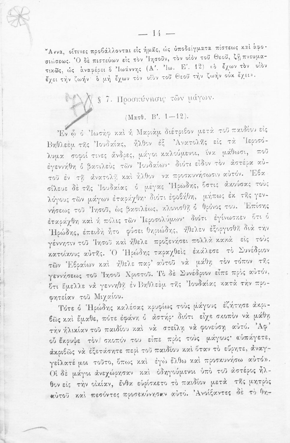 Σχολικό εγχειρίδιο Θρησκευτικών για τα Ελληνικά σχολεία και Παρθεναγωγεία που συνιστά μία εξιστόρηση της Καινής Διαθήκης από τη γέννηση της Θεοτόκου ως την ανάληψη του Χριστού και τη δράση των Αποστόλων.