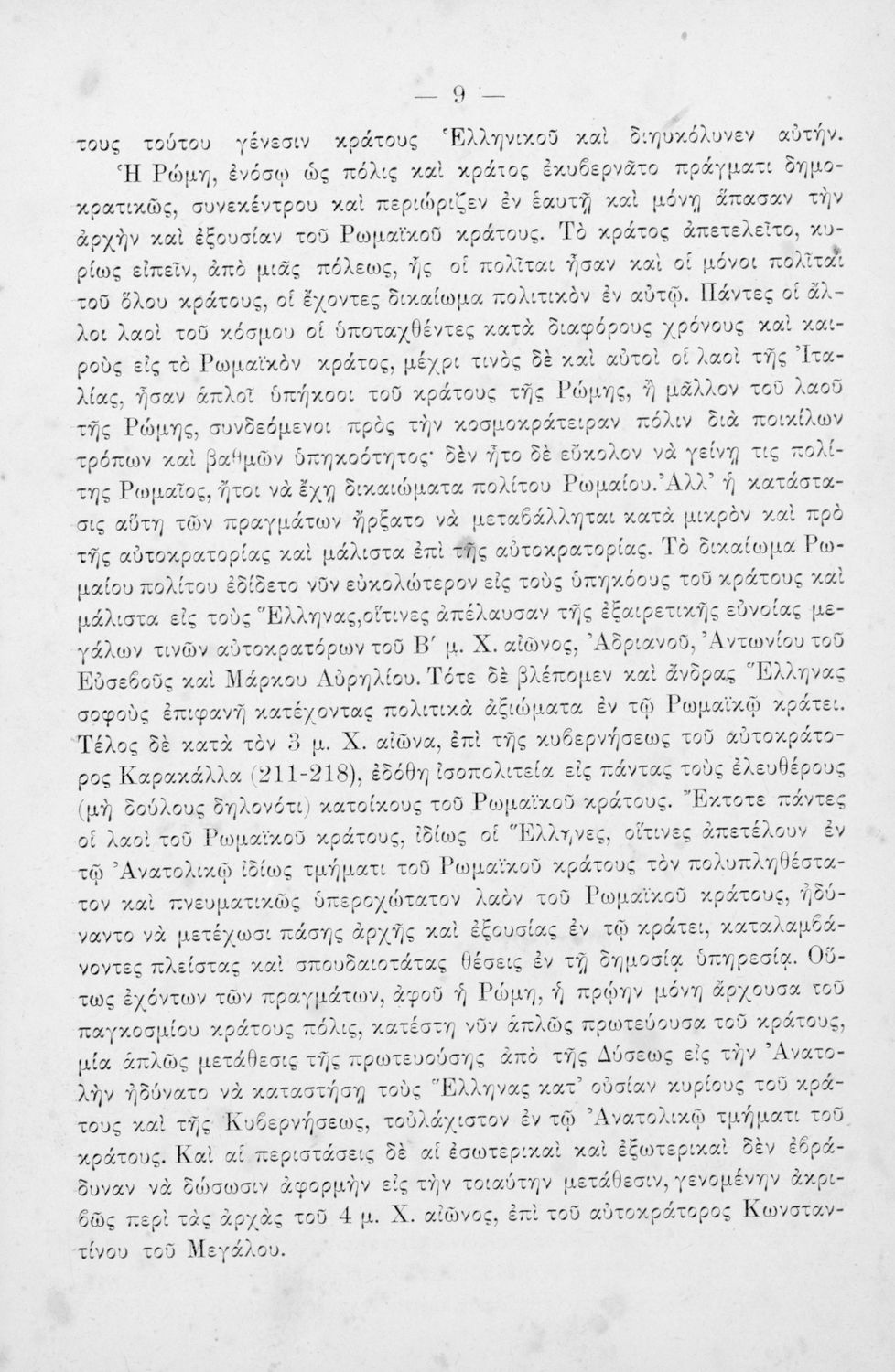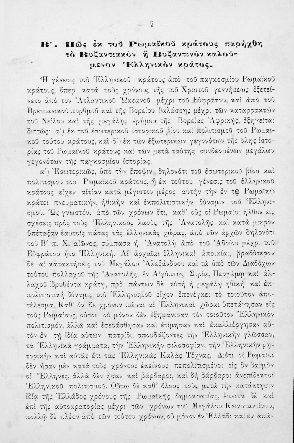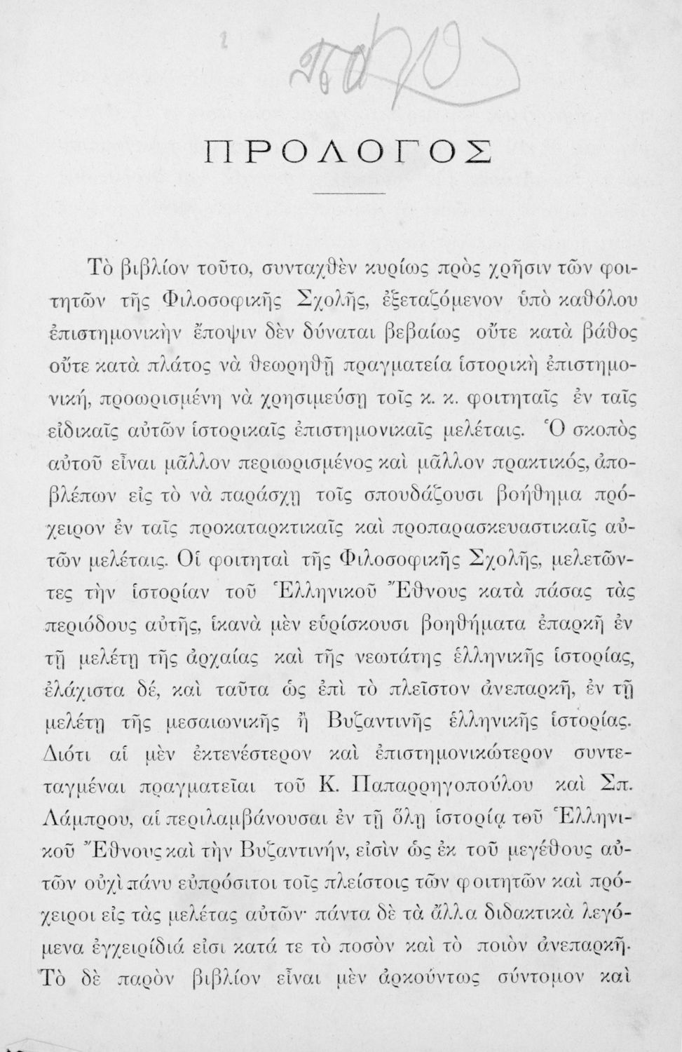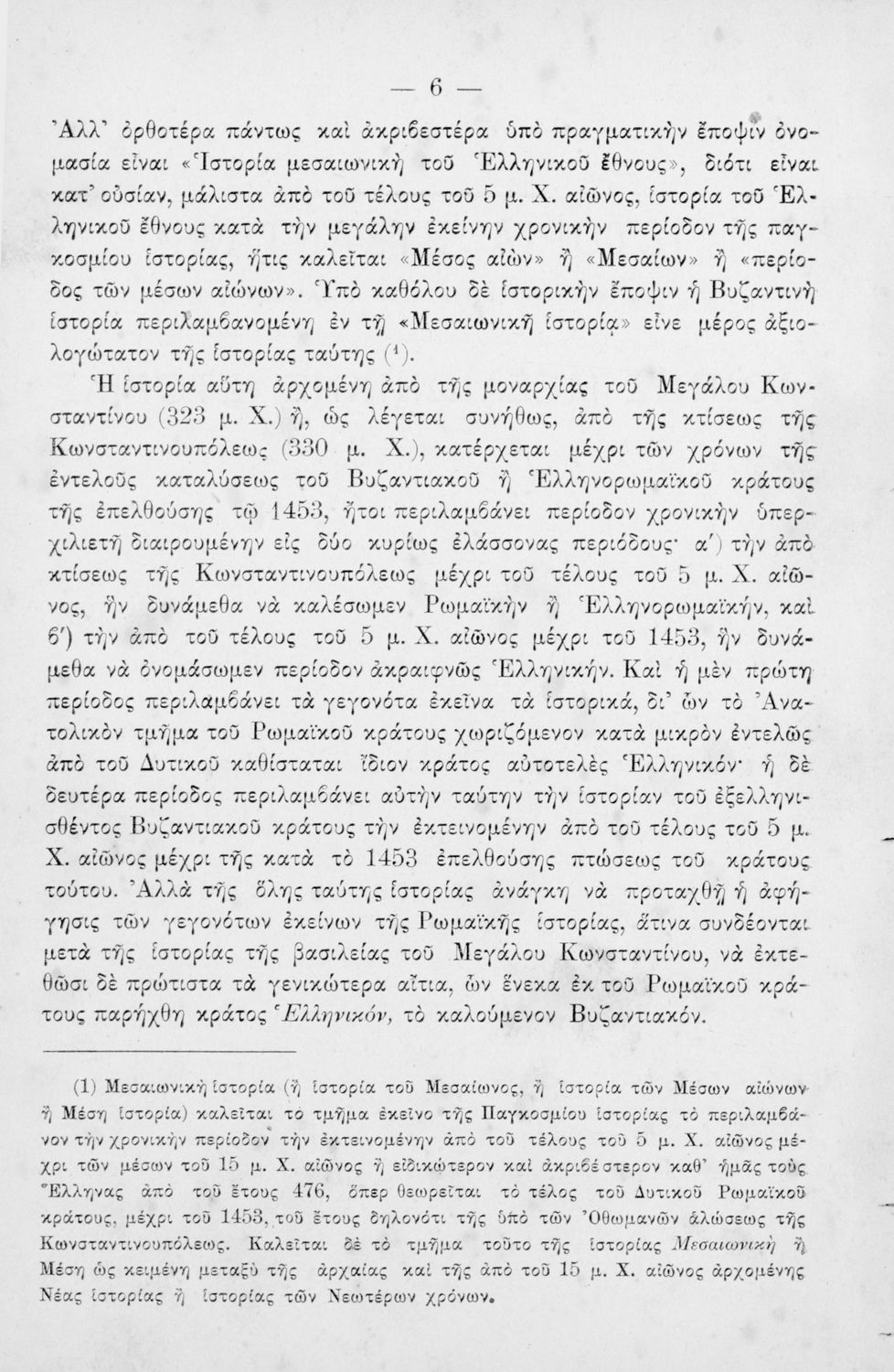 Βαθμίδα εκπαίδευσης: Τριτοβάθμια Μάθημα: Ιστορία Γλώσσα: Καθαρεύουσα Παρουσίαση περιεχομένου: Επιστημονικό σύγγραμμα Ιστορίας που απευθύνεται στους φοιτητές Φιλολογίας, υιοθετεί το σχήμα τον Παπαρρηγόπουλου και Λάμπρου και περιλαμβάνει τη βυζαντινή ιστορία από τα χρόνια του Μεγάλου Κωνσταντίνου μέχρι ην άλωση της Κωνσταντινούπολης. |