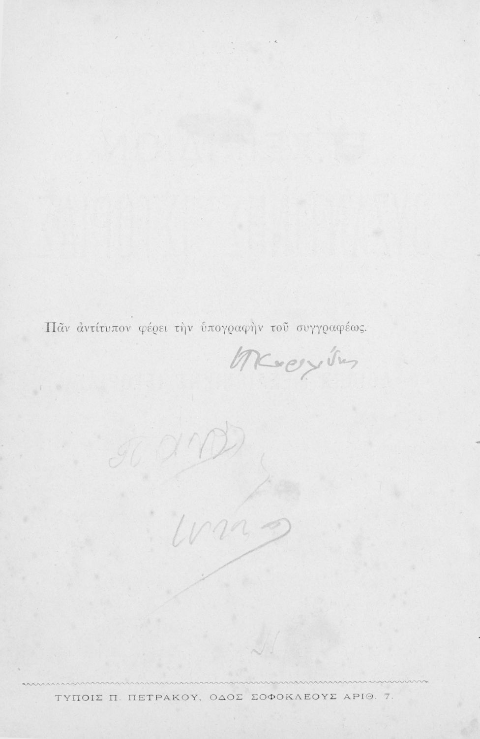 Εκδότης: Νικ. Τζάκας Έτος έκδοσης: 1906 Τόπος έκδοσης: Αθήνα |