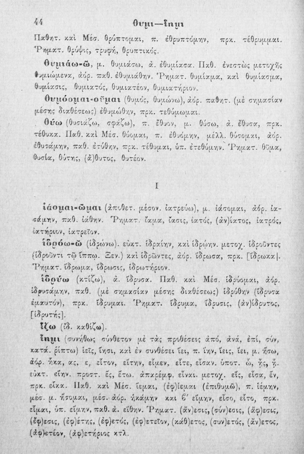 Μαθητικό βοήθημα Αρχαίων Ελληνικών για τα Ελληνικά Σχολεία και Παρθεναγωγεία που περιλαμβάνει τα ανώμαλα και ελλιπή ρήματα της αττικής διαλέκτου.