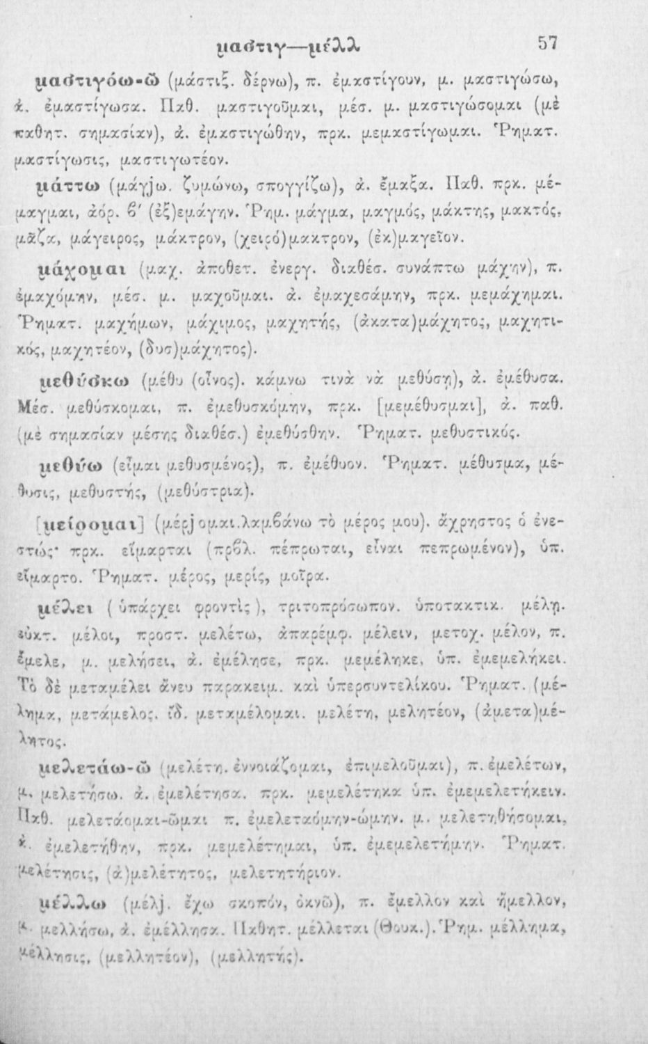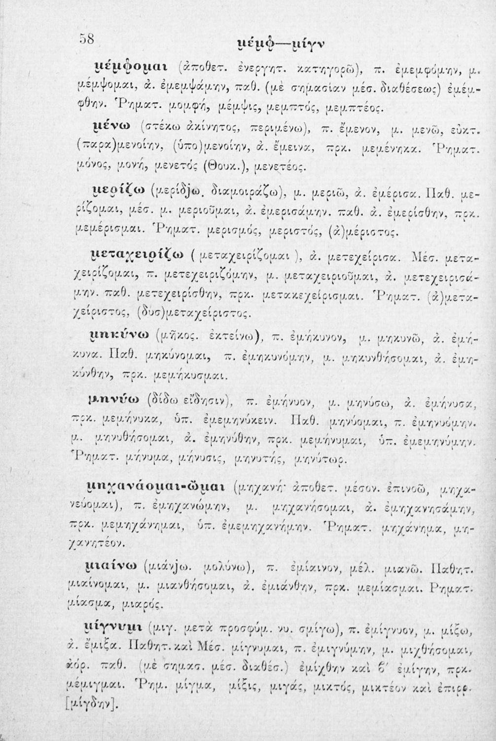 Μαθητικό βοήθημα Αρχαίων Ελληνικών για τα Γυμνάσια, Παρθεναγωγεία και Ελληνικά σχολεία το οποίο περιέχει κατάλογο ανωμάλων ρημάτων της Αττικής διαλέκτου.