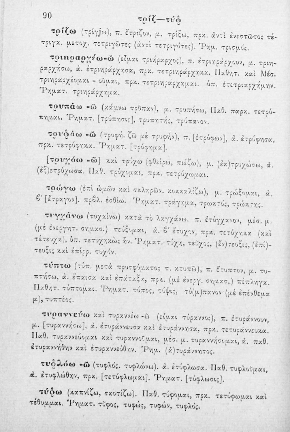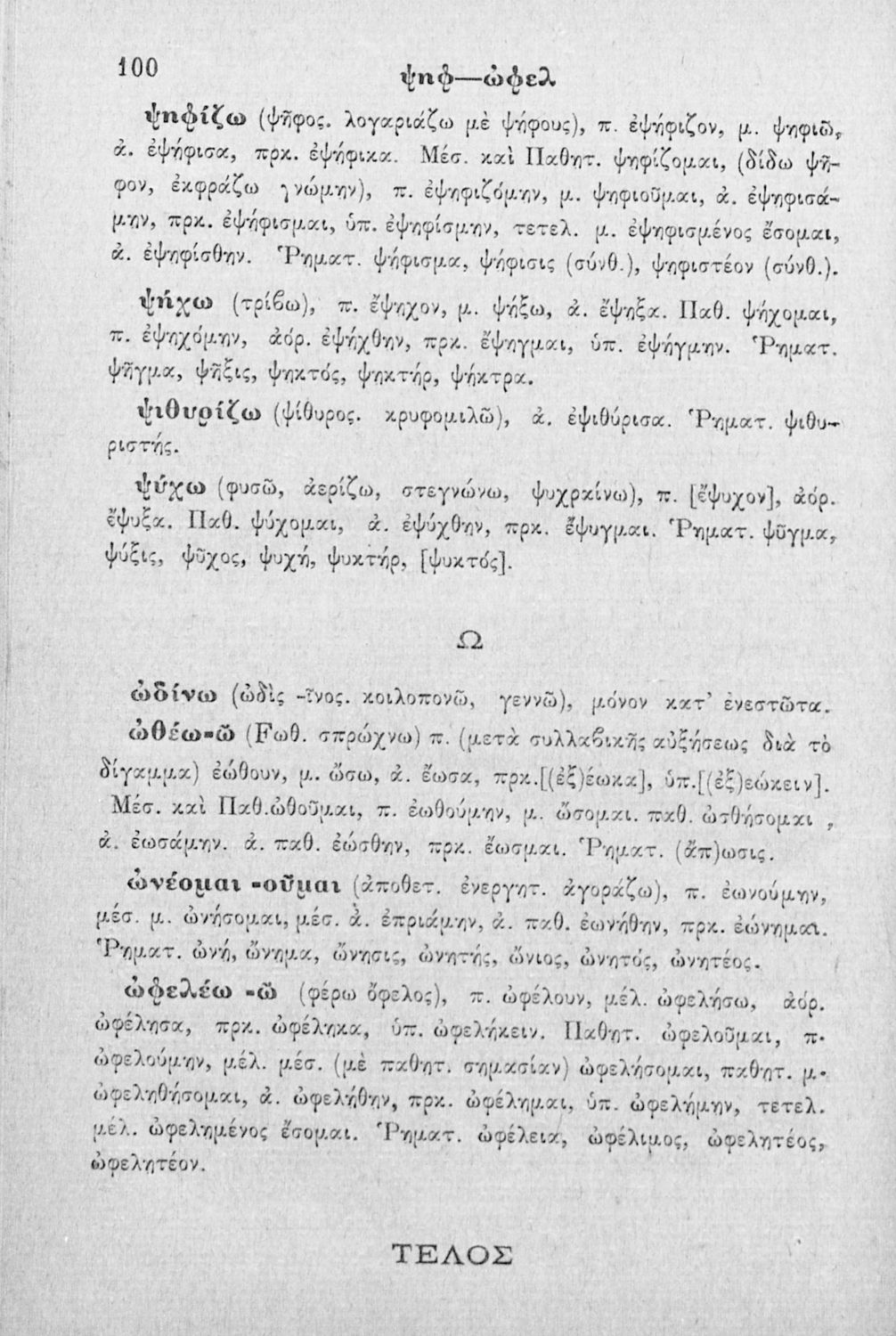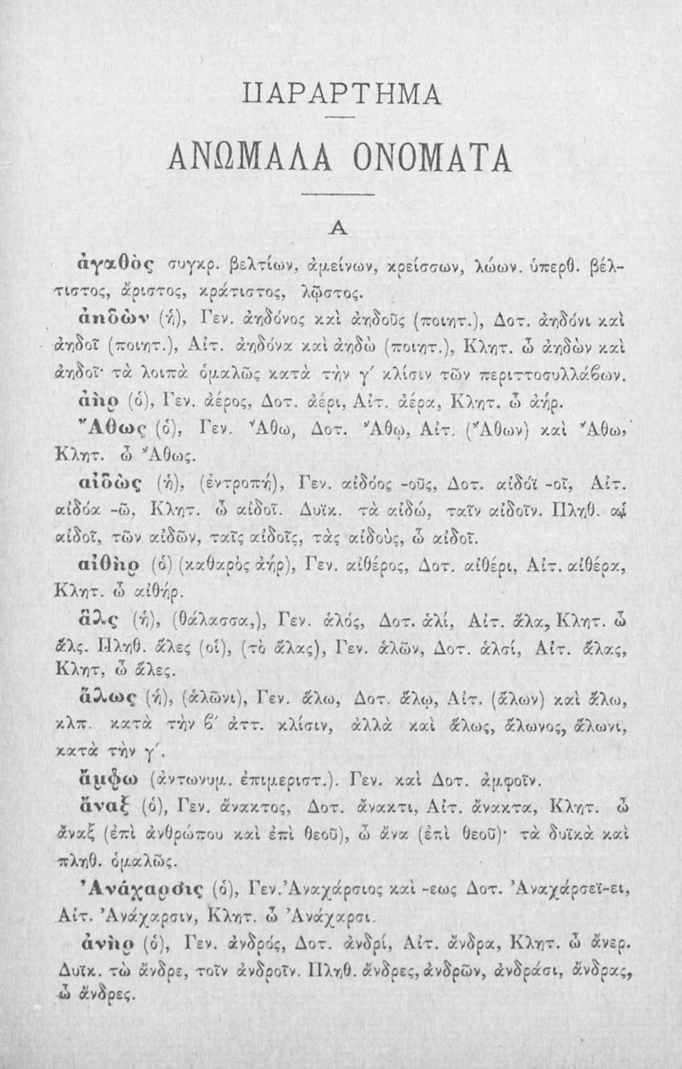 Μαθητικό βοήθημα Αρχαίων Ελληνικών για τα Ελληνικά Σχολεία και Παρθεναγωγεία που περιλαμβάνει τα ανώμαλα και ελλιπή ρήματα της αττικής διαλέκτου.