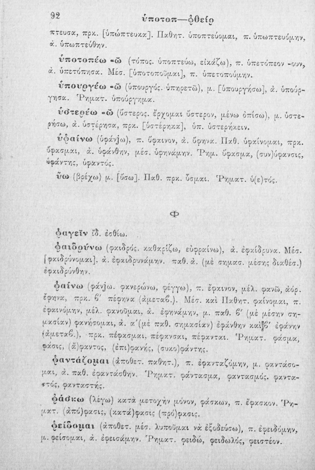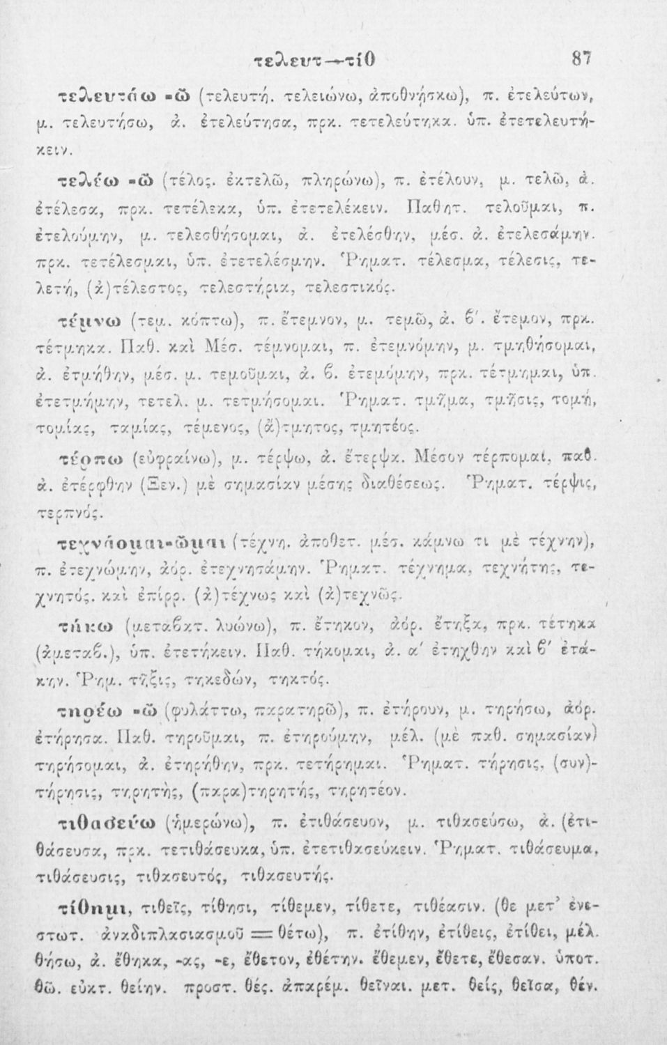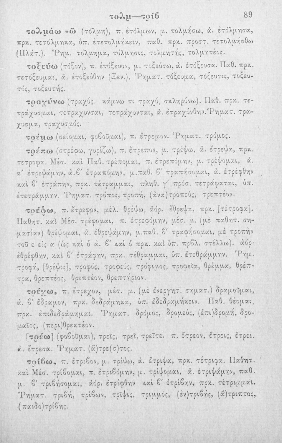 Μαθητικό βοήθημα Αρχαίων Ελληνικών για τα Ελληνικά Σχολεία και Παρθεναγωγεία που περιλαμβάνει τα ανώμαλα και ελλιπή ρήματα της αττικής διαλέκτου.