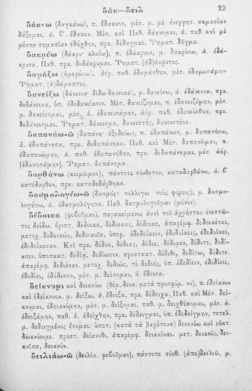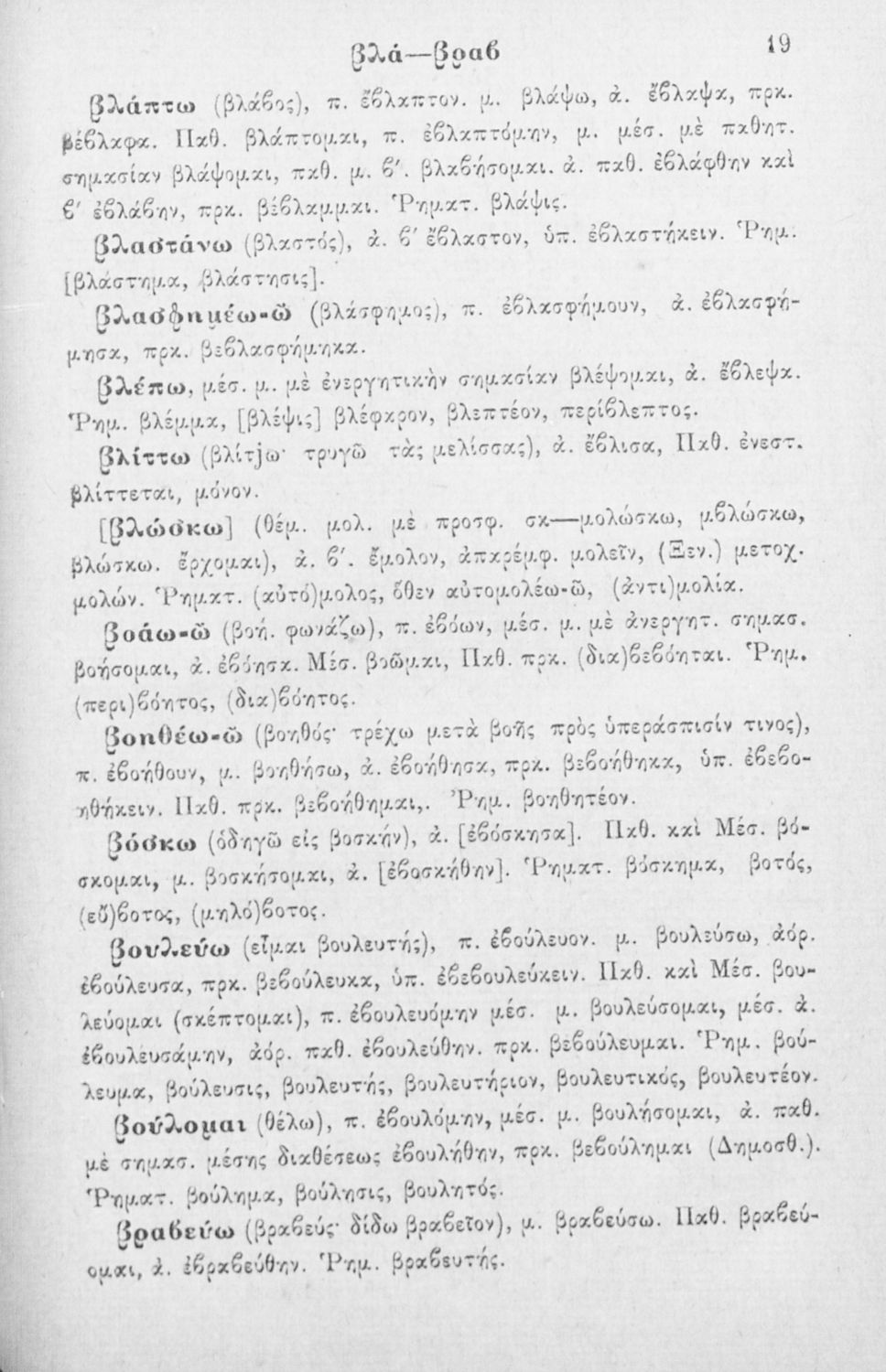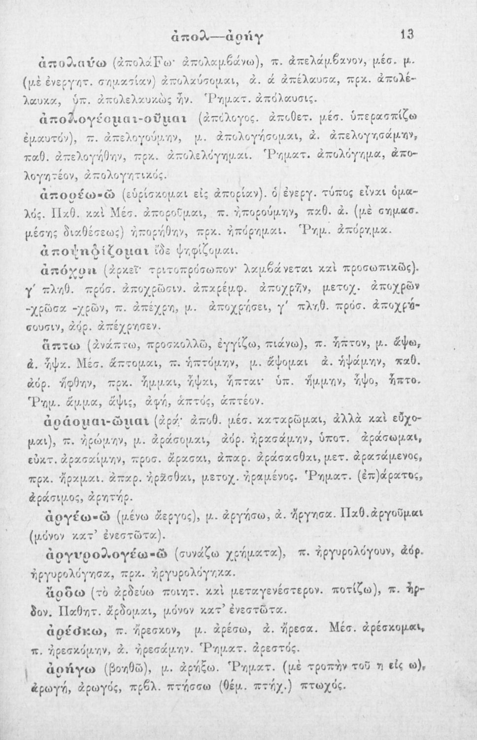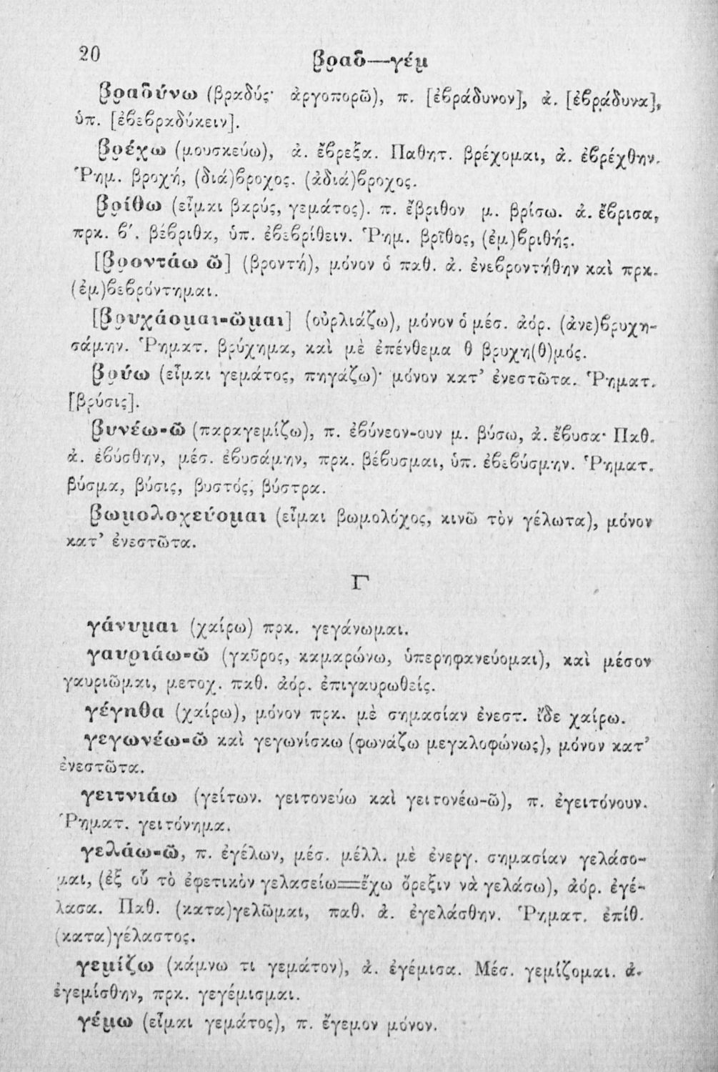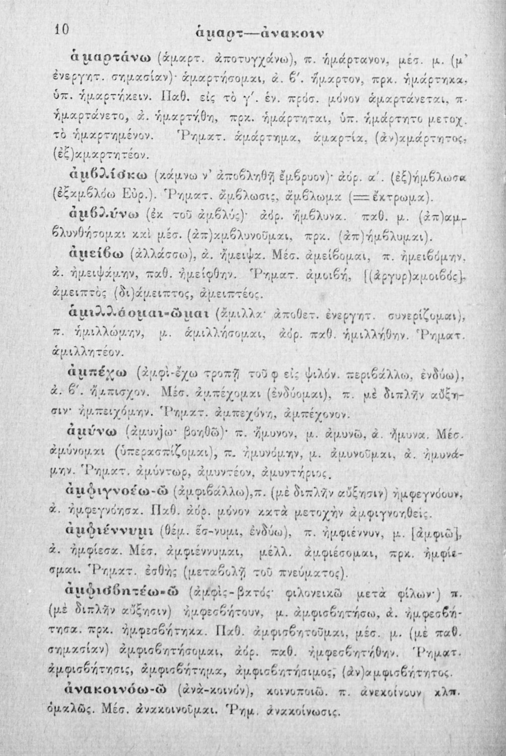 Μαθητικό βοήθημα Αρχαίων Ελληνικών για τα Ελληνικά Σχολεία και Παρθεναγωγεία που περιλαμβάνει τα ανώμαλα και ελλιπή ρήματα της αττικής διαλέκτου.