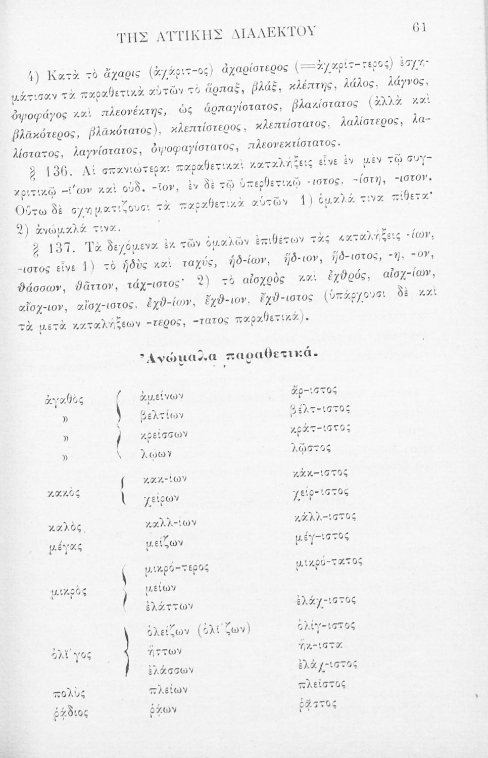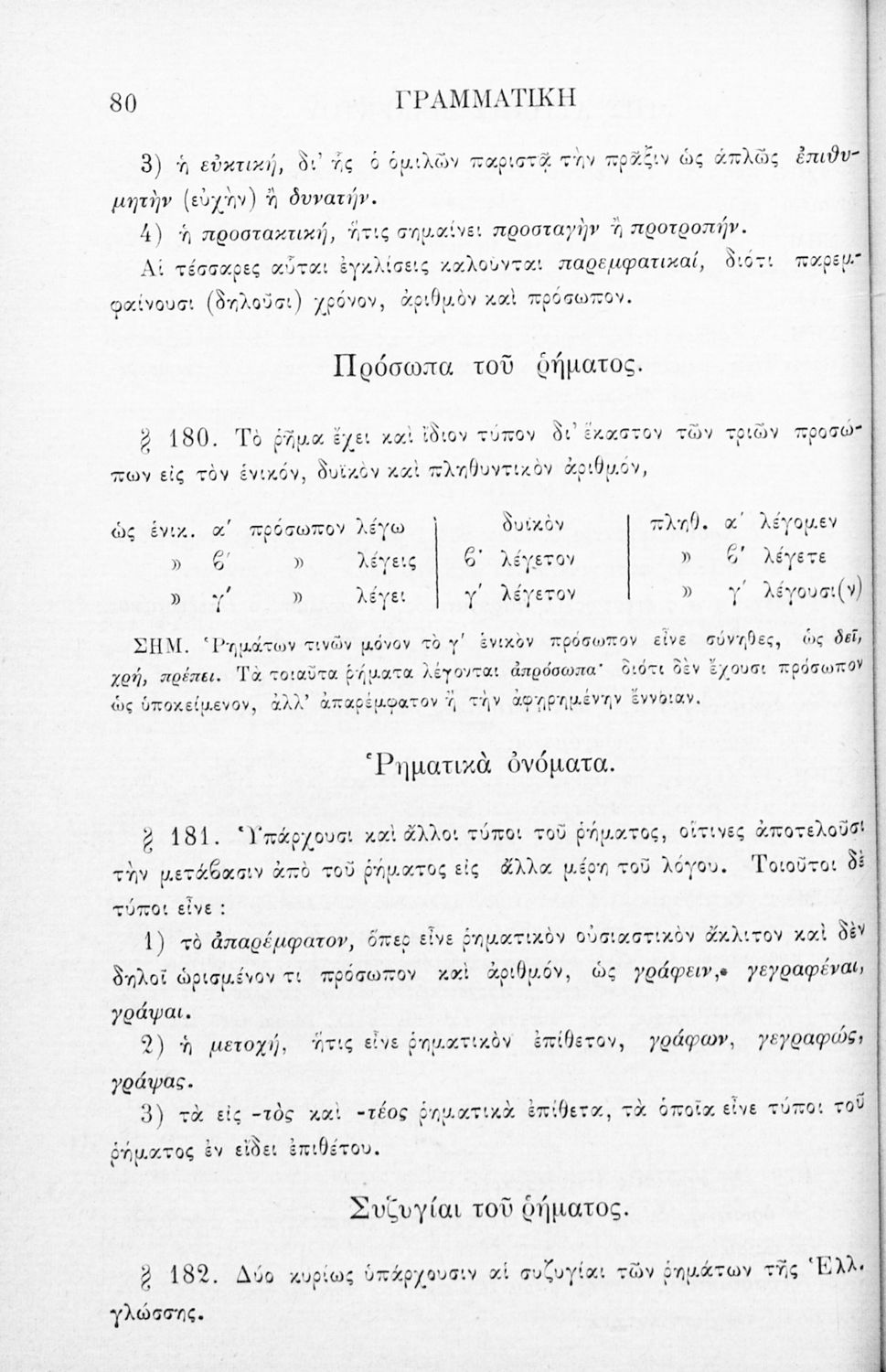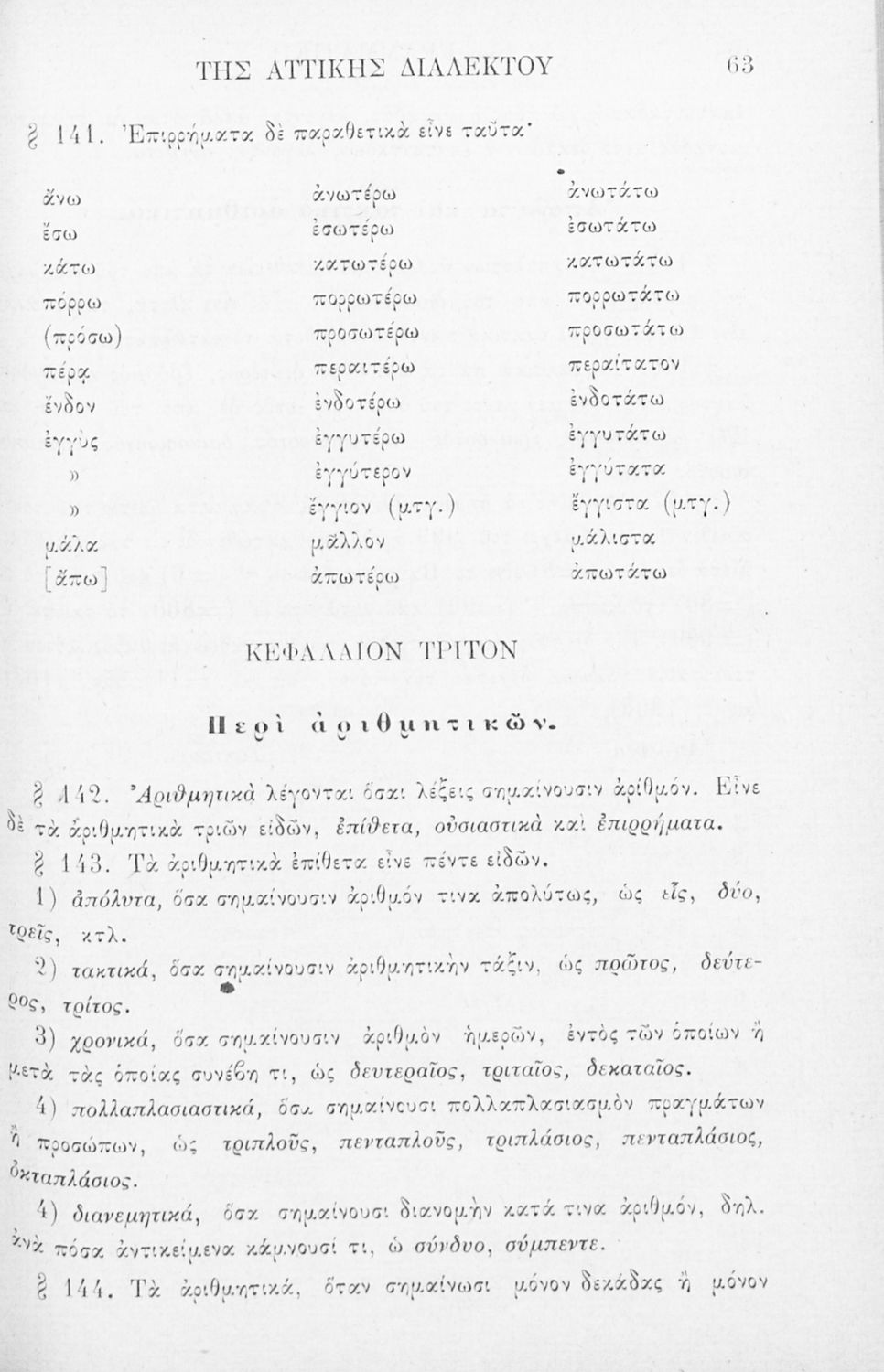 Σχολικό εγχειρίδιο Αρχαίων Ελληνικών για τα Ελληνικά Σχολεία, Παρθεναγωγεία και Γυμνάσια που περιέχει τους κανόνες γραμματικής και είναι χωρισμένο σε φθογγολογικό, τυπολογικό και ετυμολογικό μέρος.