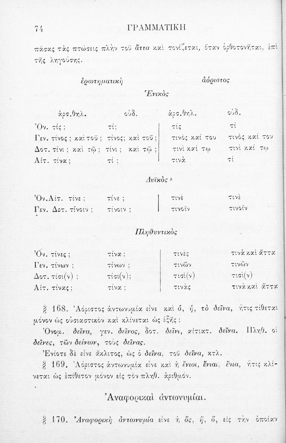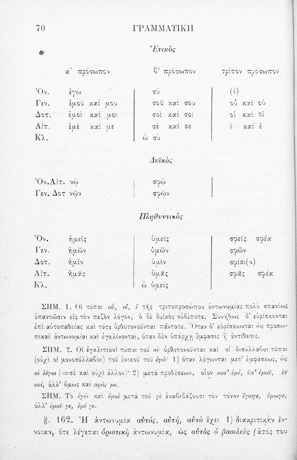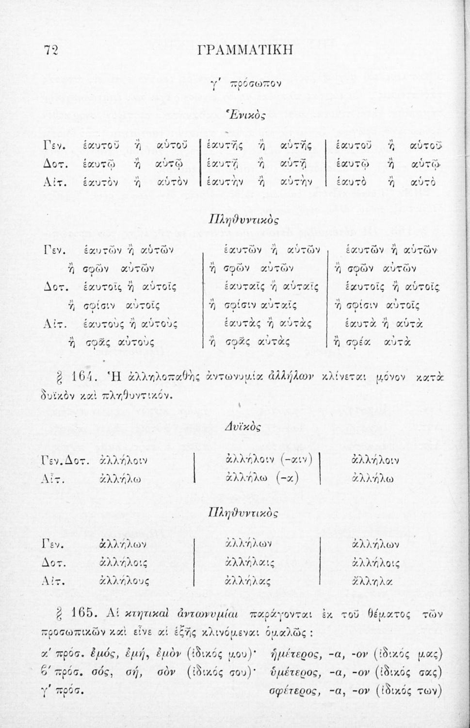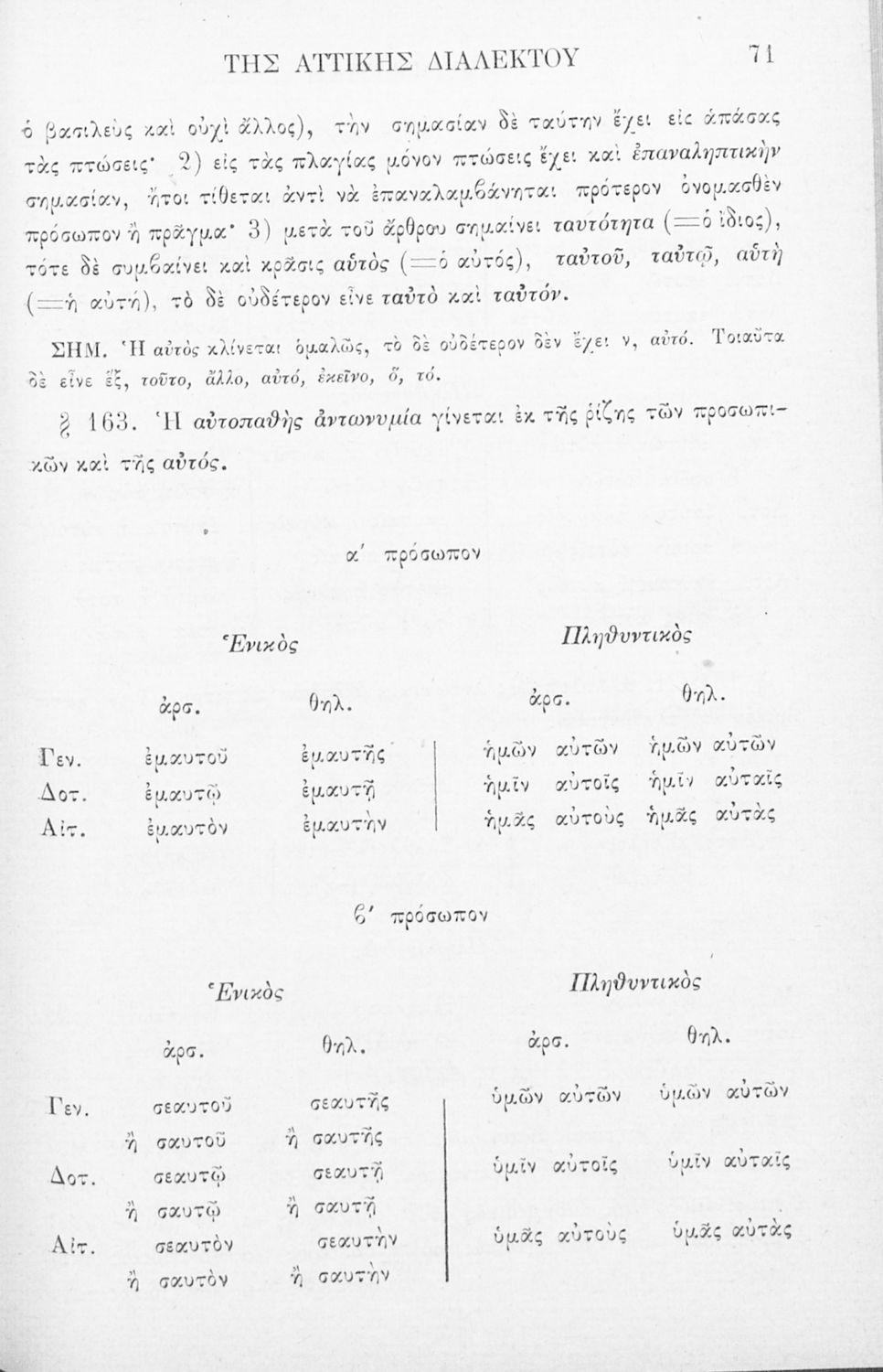 Σχολικό εγχειρίδιο Αρχαίων Ελληνικών για τα Ελληνικά Σχολεία, Παρθεναγωγεία και Γυμνάσια που περιέχει τους κανόνες γραμματικής και είναι χωρισμένο σε φθογγολογικό, τυπολογικό και ετυμολογικό μέρος.