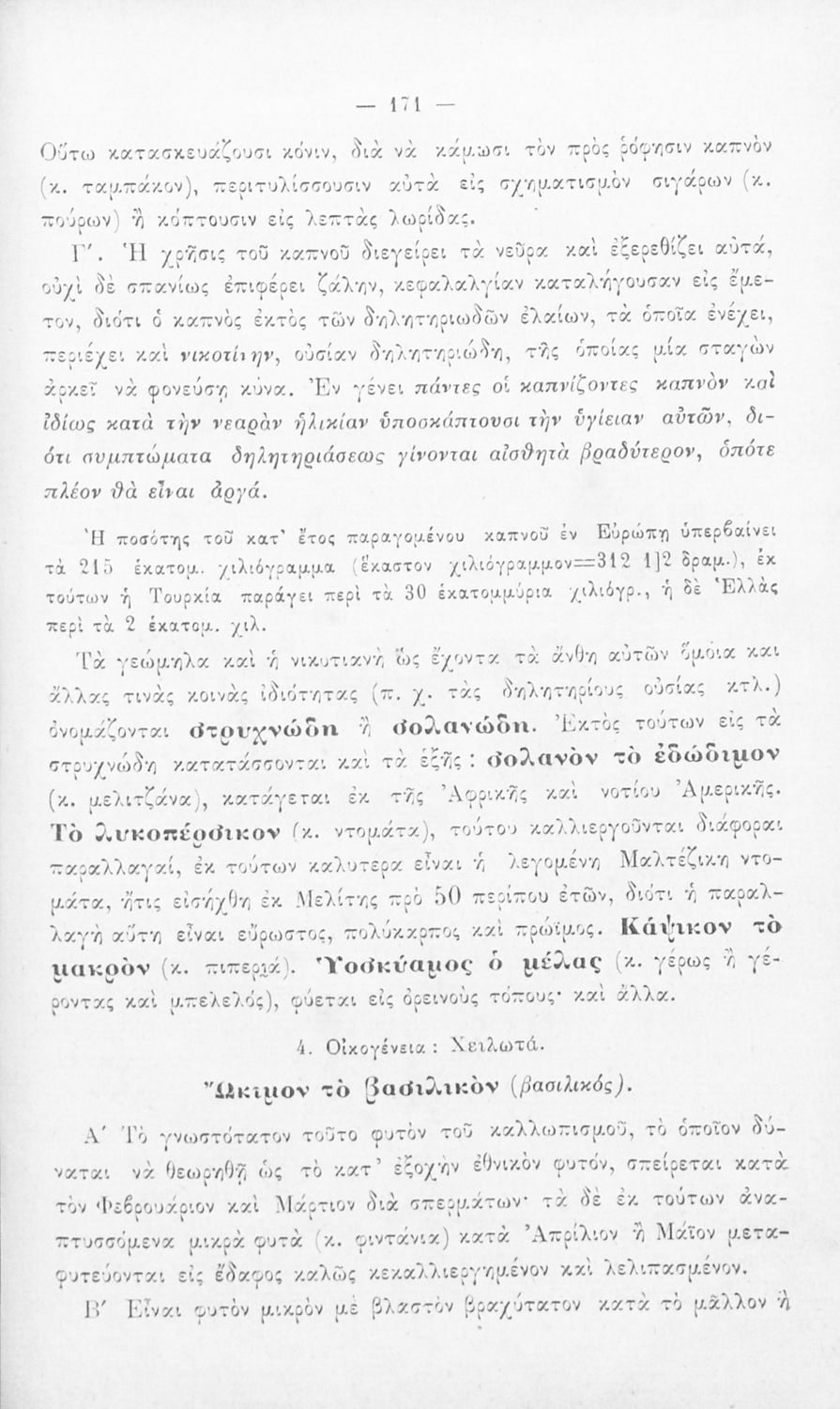 Σχολικό εγχειρίδιο Φυσικής Ιστορίας για τα Ελληνικά Σχολεία και Παρθεναγωγεία που περιλαμβάνει στοιχεία ζωολογίας και της φυτολογίας και διακρίνει τα ζώα και τα φυτά ανάλογα με την συνομοταξία στην οποία ανήκουν
