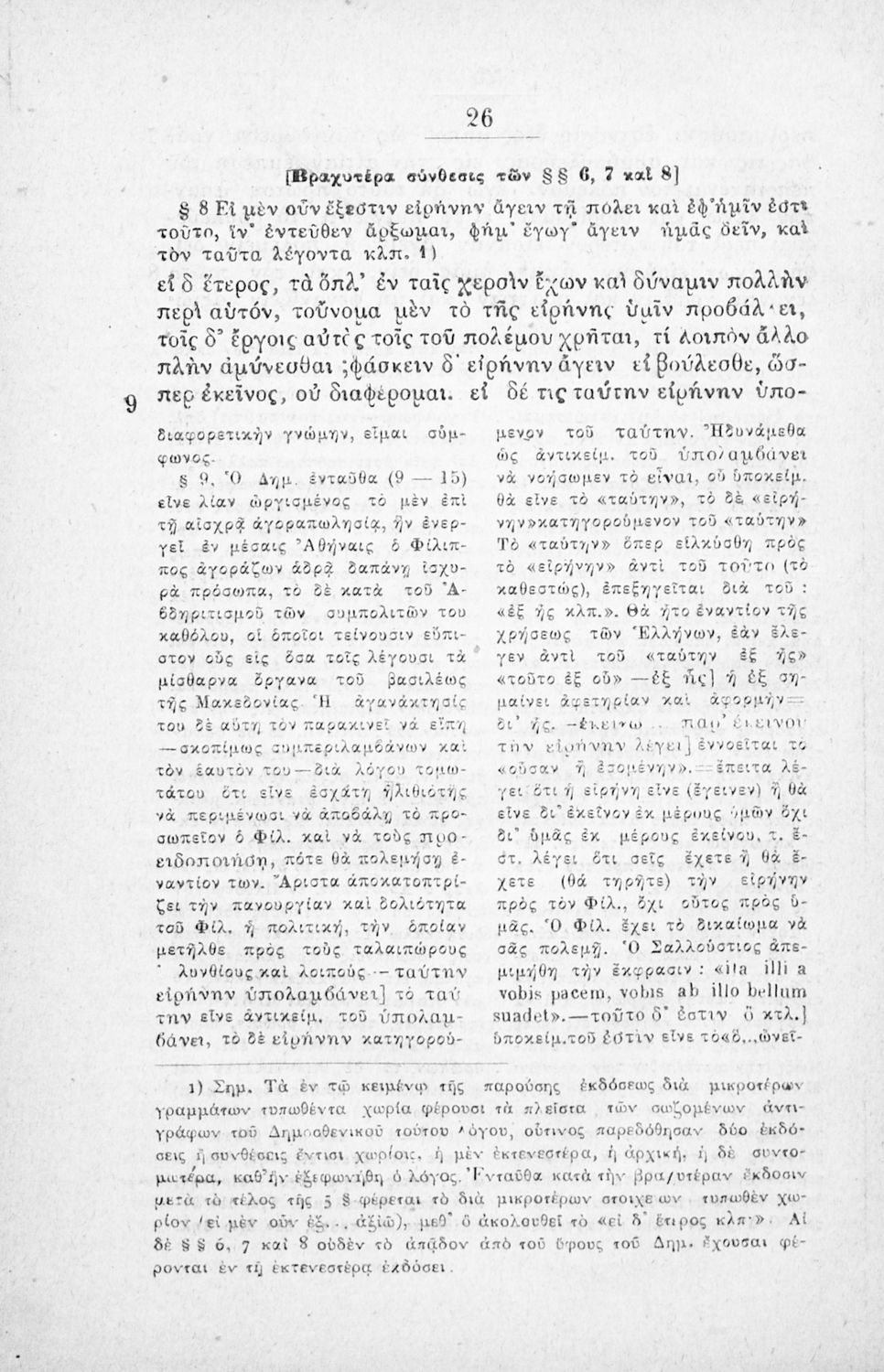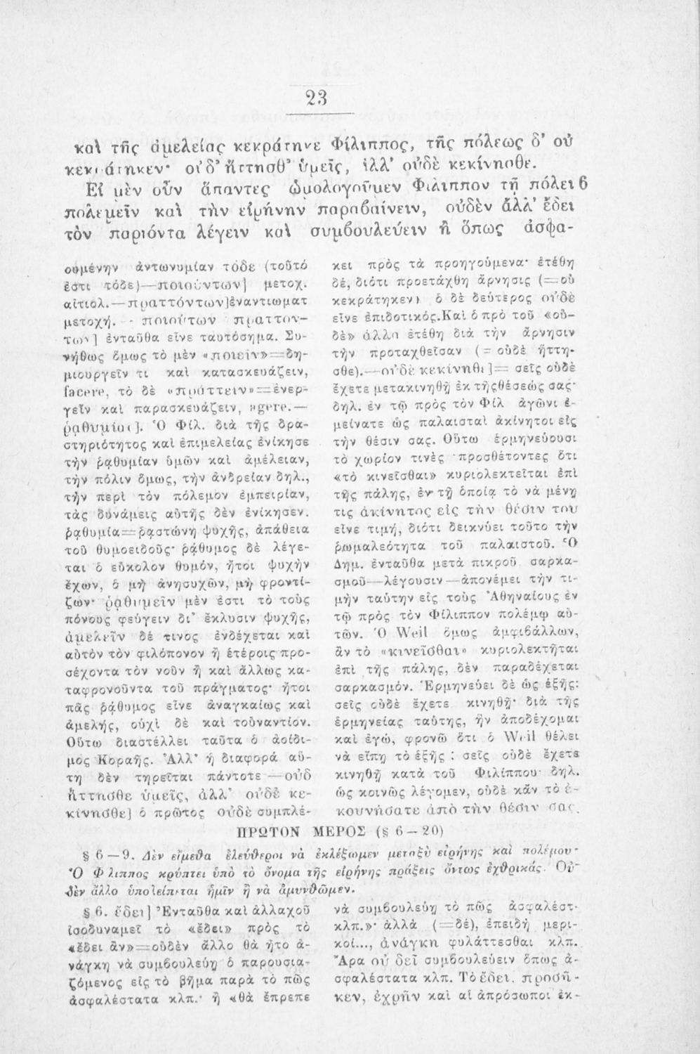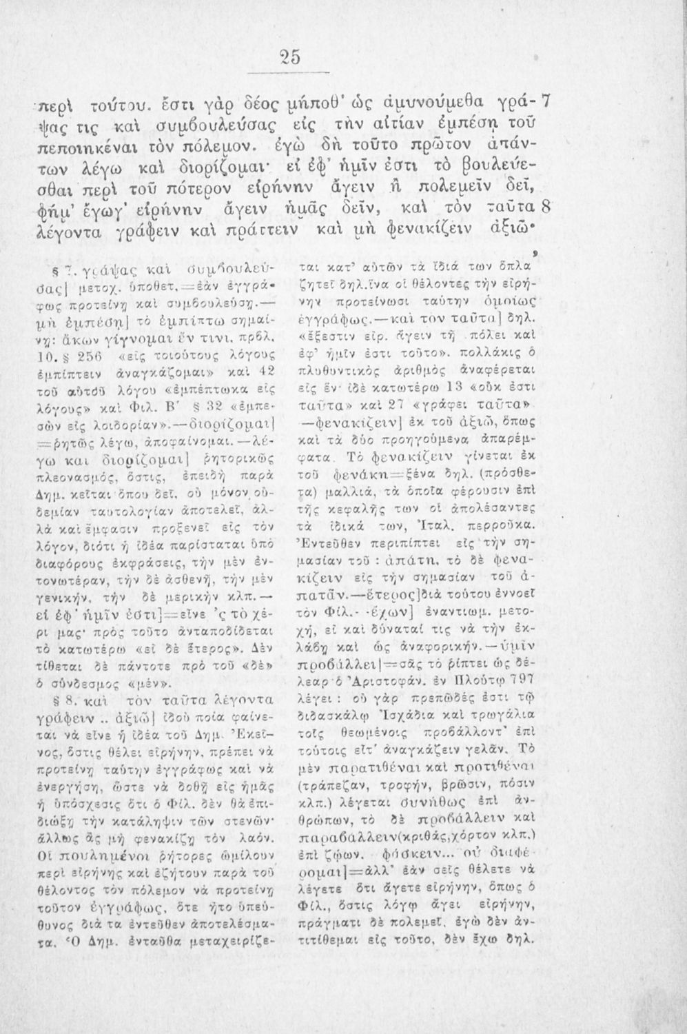 Σχολικό εγχειρίδιο Αρχαίων Ελληνικών Γ΄ Γυμνασίου που περιλαμβάνει τους Λόγους του Δημοσθένη Περί της ειρήνης και Β΄ κατά Φιλίππου, εισαγωγή στη ζωή και το έργο του και ερμηνευτικά και γραμματικά σχόλια.