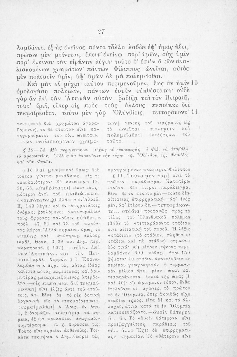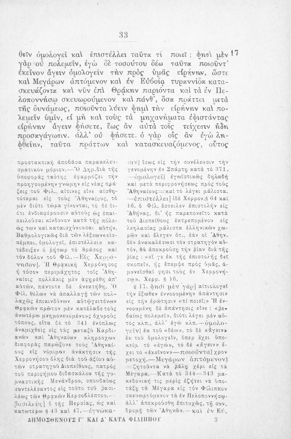 Μαθητικό βοήθημα Αρχαίων Ελληνικών που περιλαμβάνει τους Γ΄ και Δ΄ Φιλιππικούς Λόγους του Δημοσθένη και ερμηνευτικές σημειώσεις.