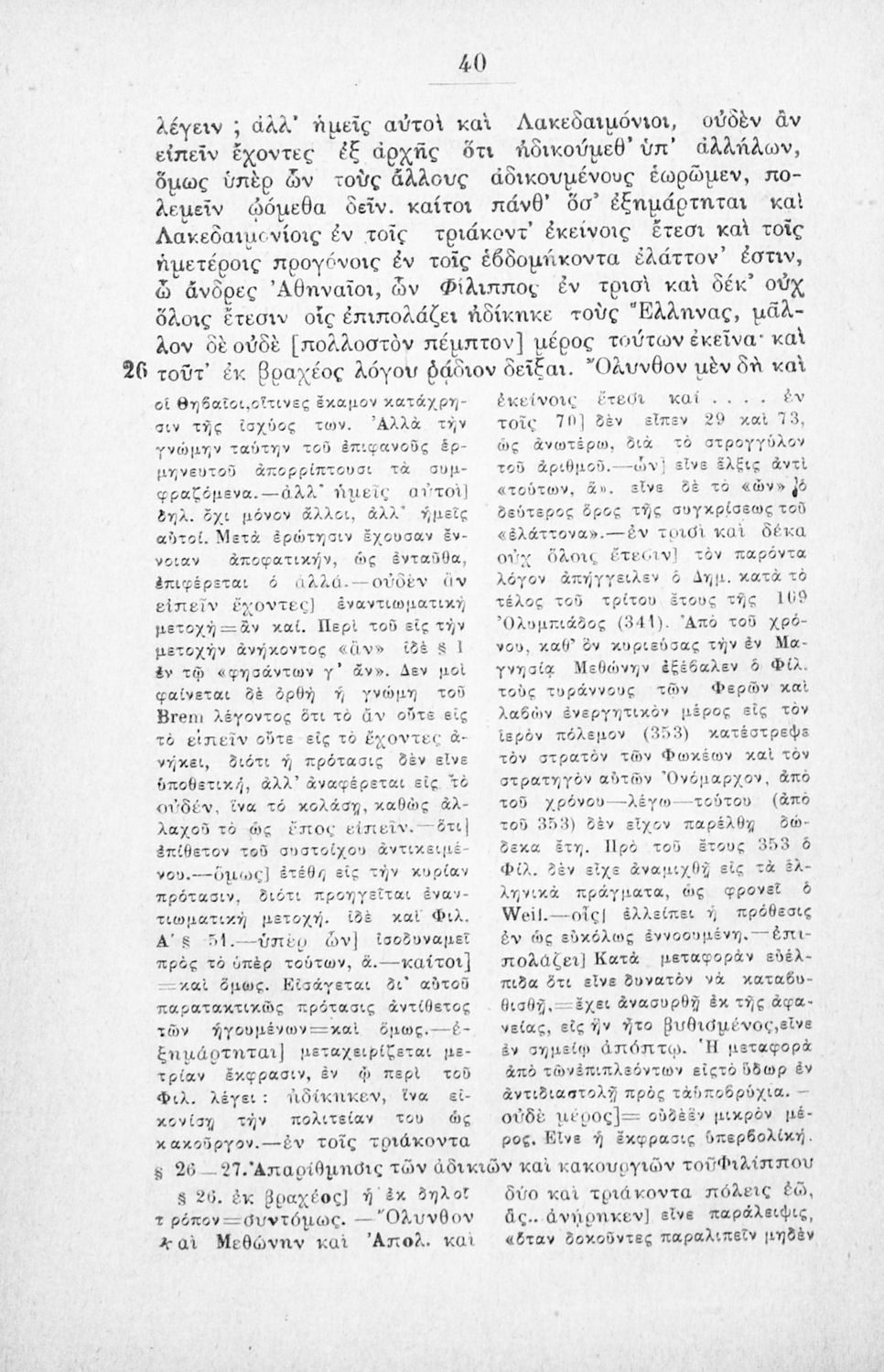 Σχολικό εγχειρίδιο Αρχαίων Ελληνικών Δ΄ Γυμνασίου που περιλαμβάνει εισαγωγή στη ζωή και στο έργο του Δημοσθένη, τον Α΄ κατά Φιλίππου, και τους Α΄ και Β΄ Ολυνθιακούς και ερμηνευτικά και ετυμολογικά σχόλια.