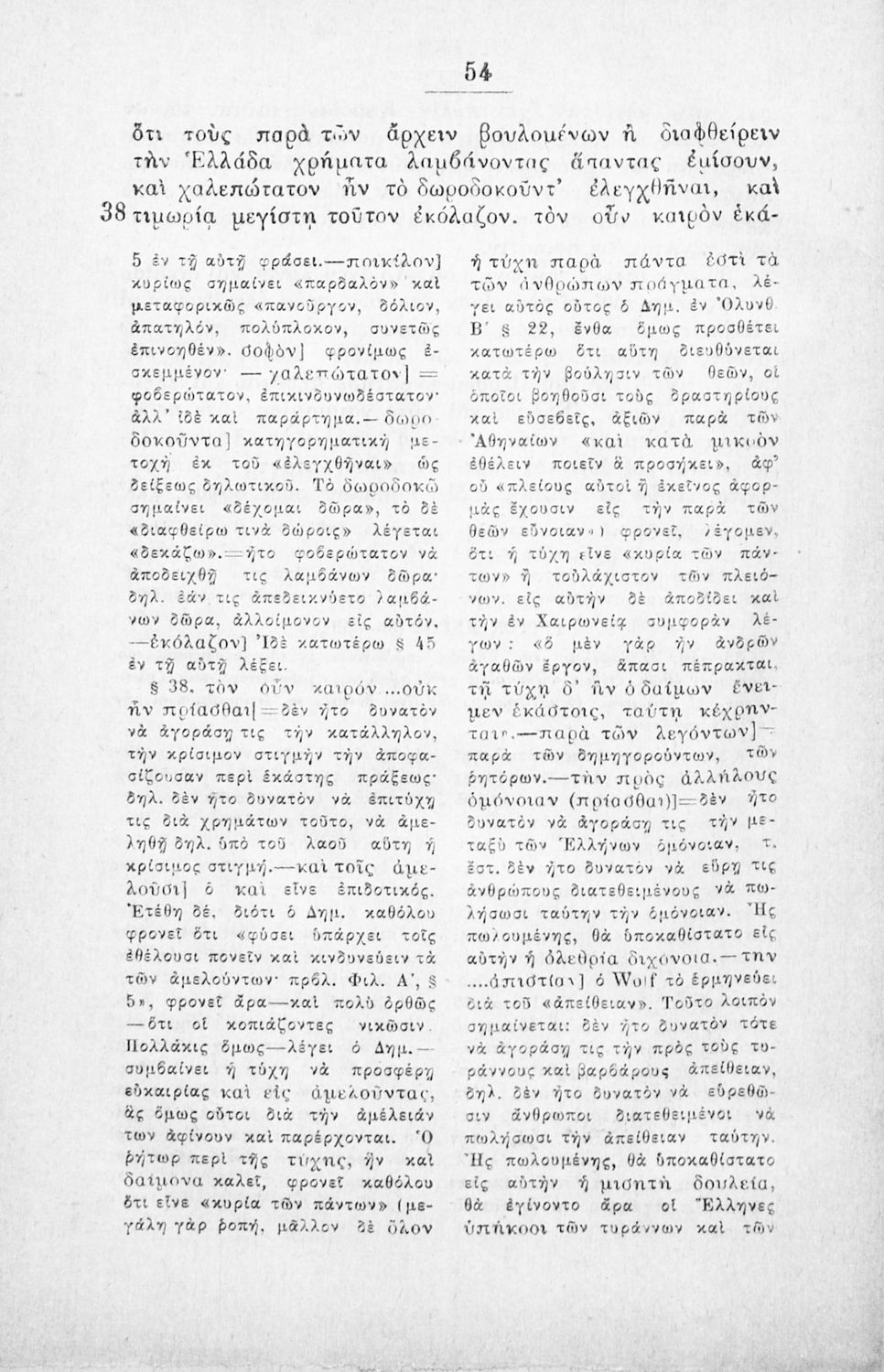 Δημοσθένης, Νικόλαος Χ. Καραβάς (σχόλια)