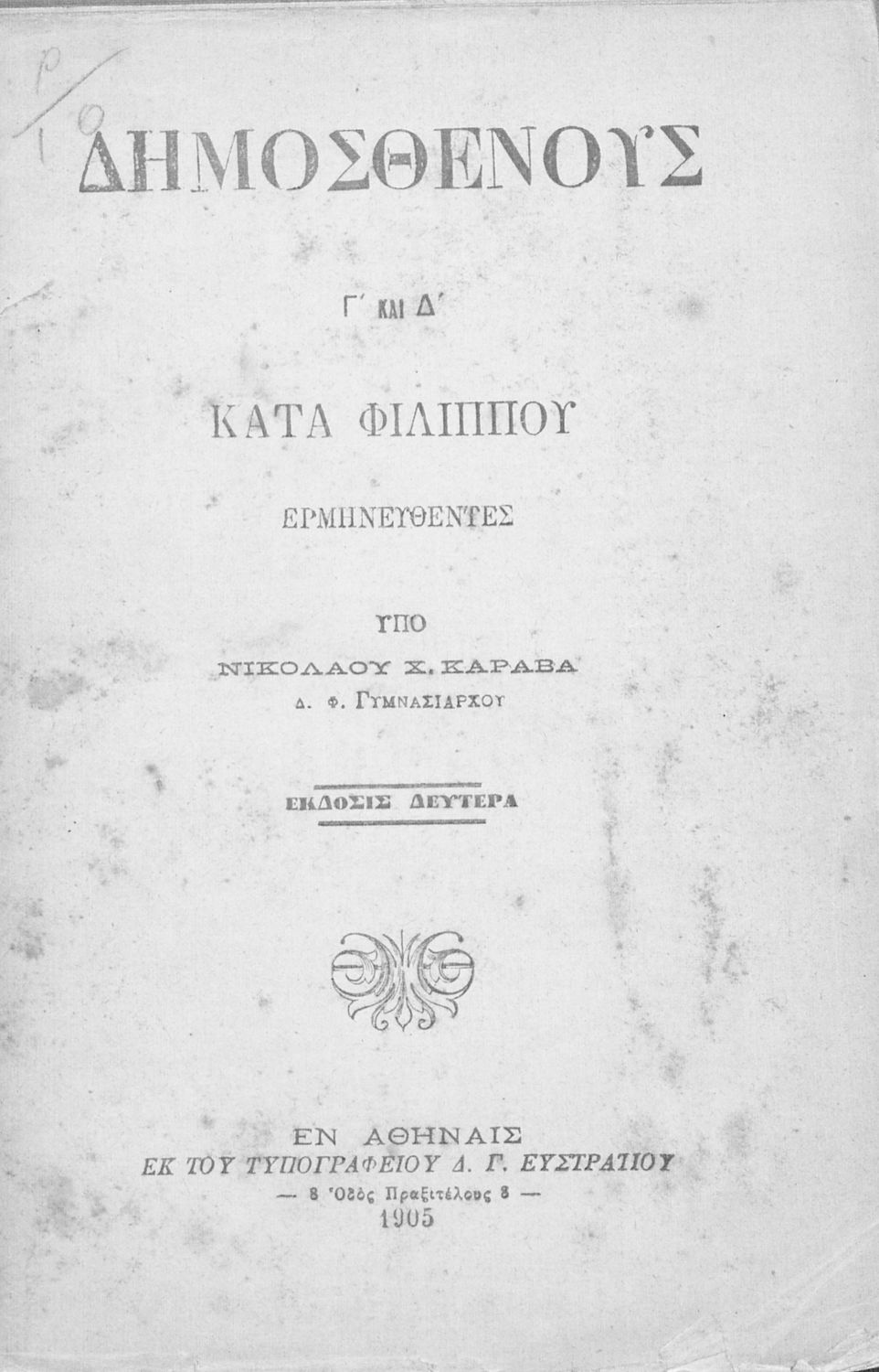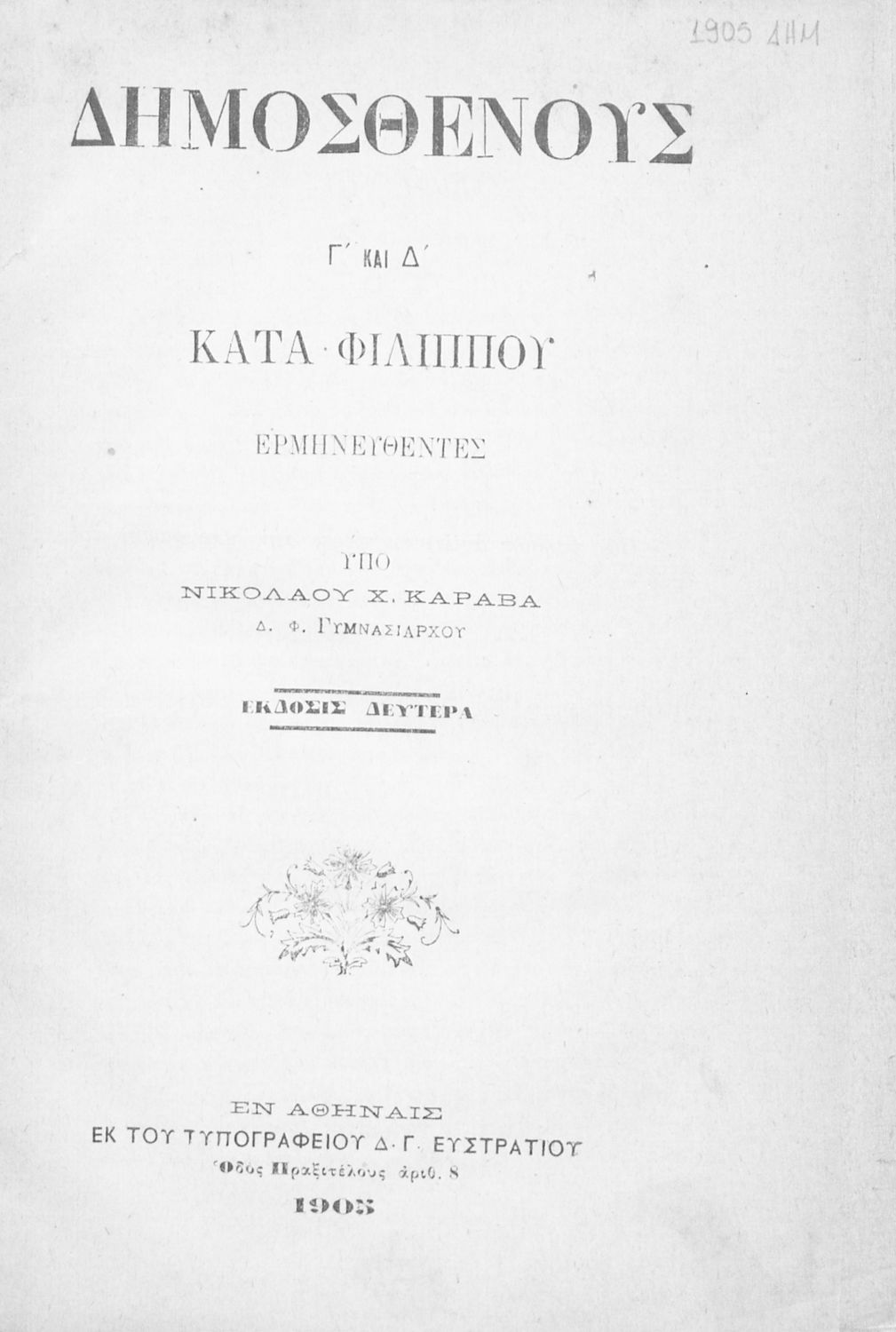 Συγγραφέας: Δημοσθένης, Νικόλαος Χ. Καραβάς (σχόλια)