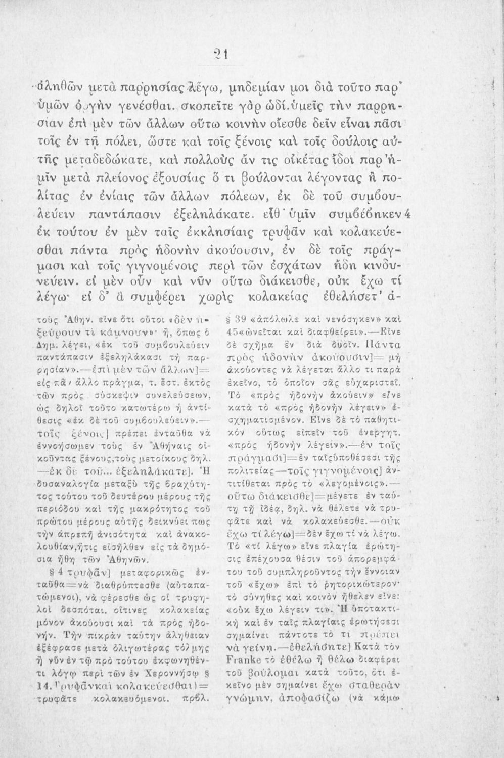 Δημοσθένης, Χρίστος Α. Παπαναστασίου, Νικόλαος Ε. Φραγκίσκος (σχόλια)
