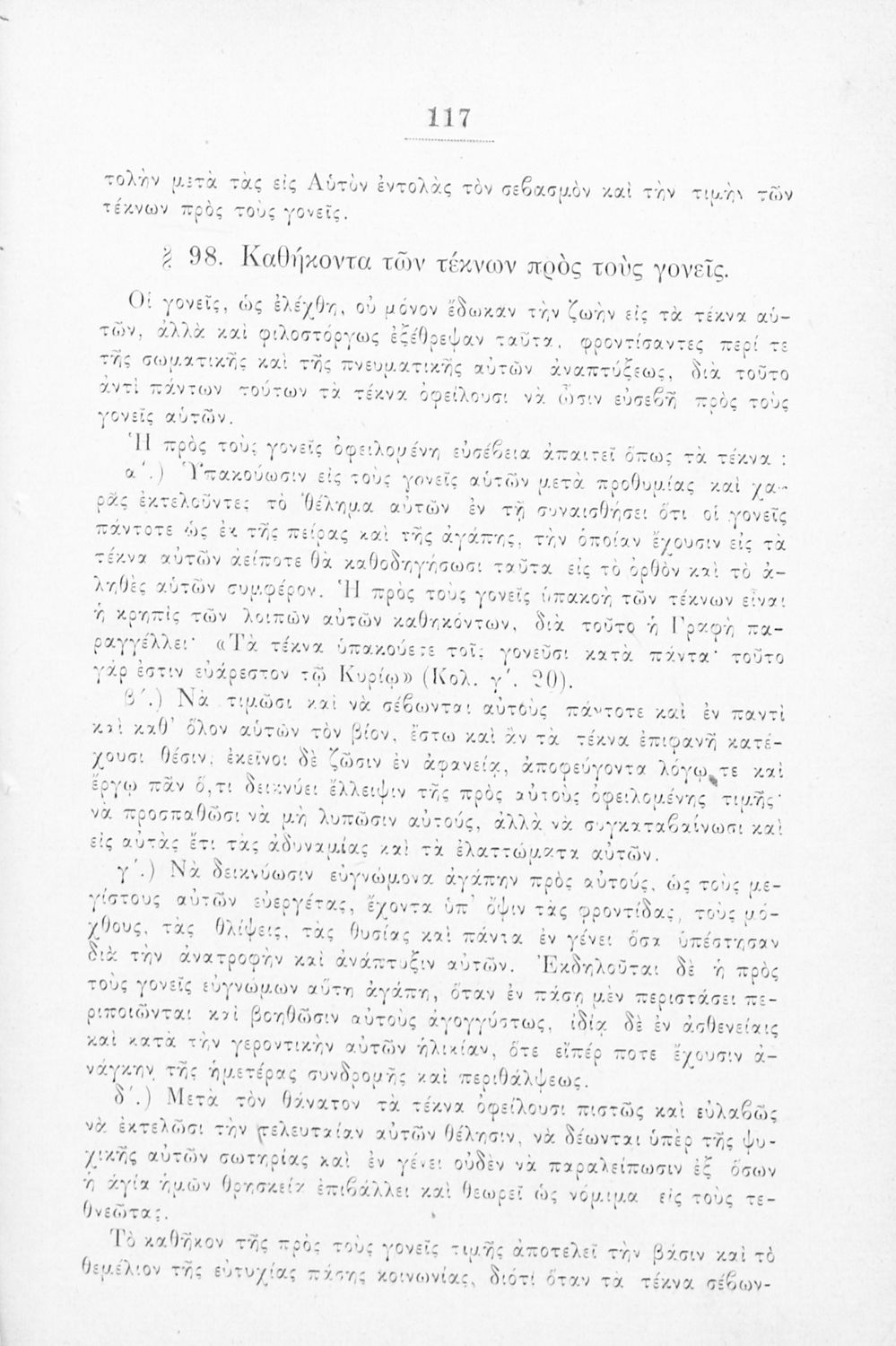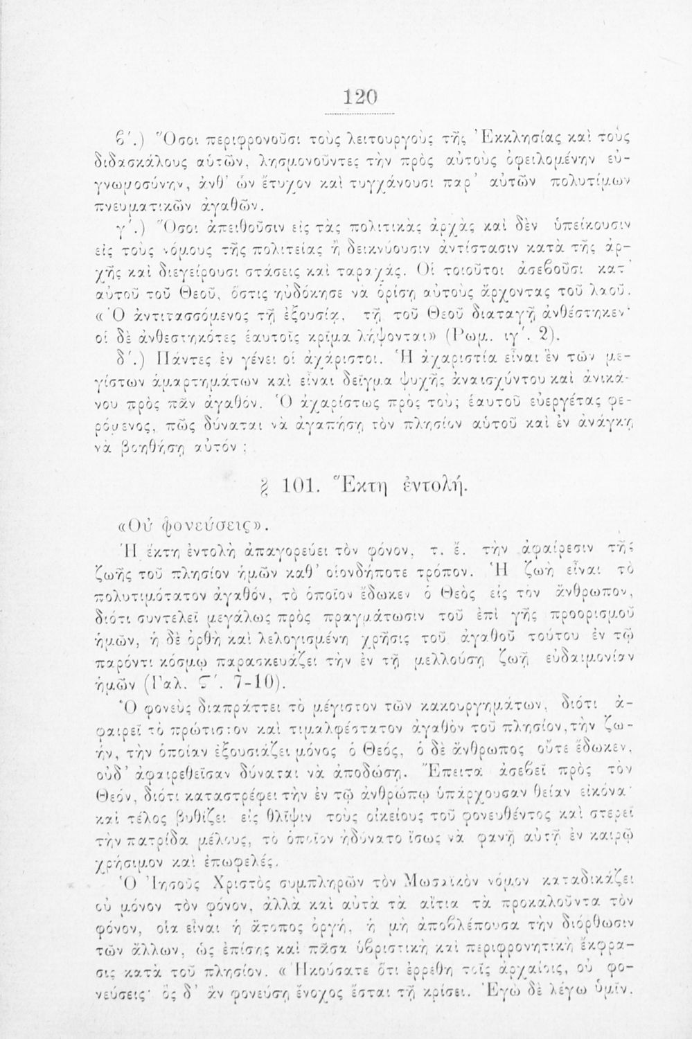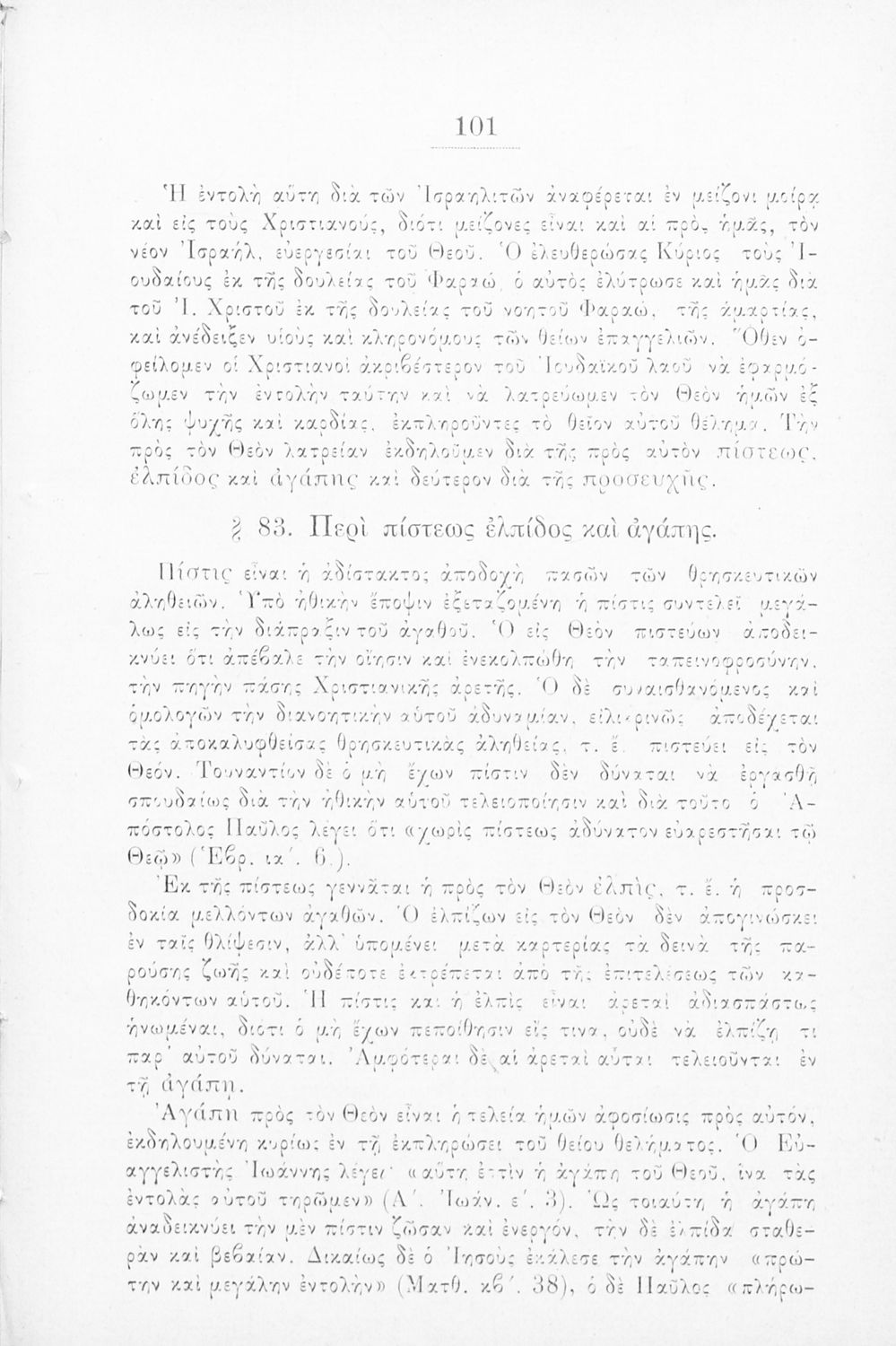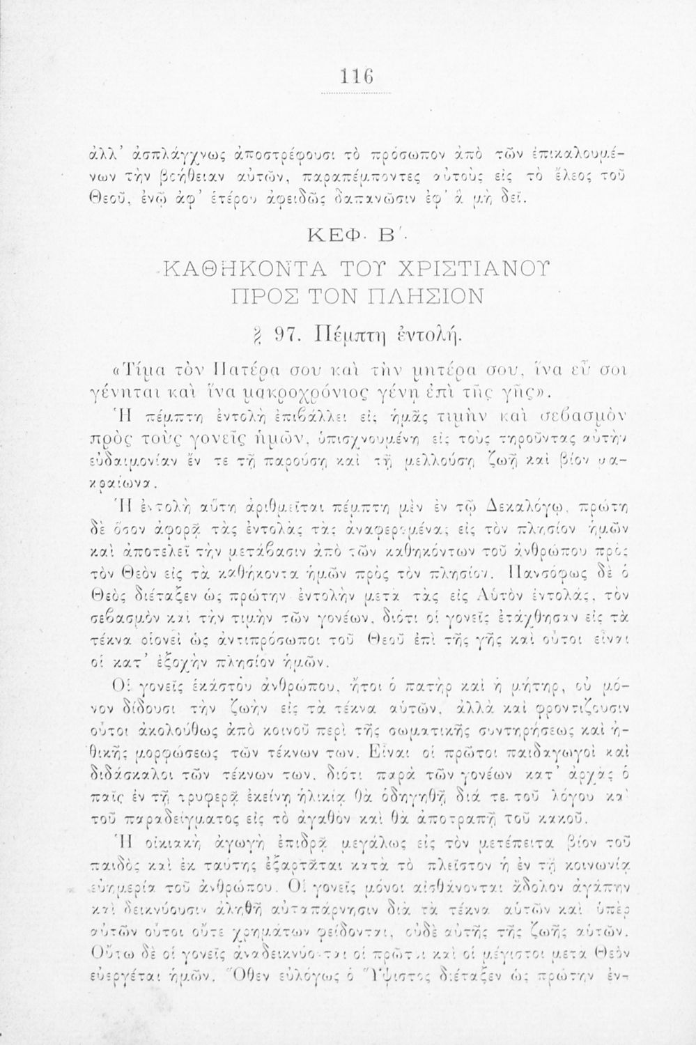 Βαθμίδα εκπαίδευσης: Δευτεροβάθμια Τάξη: Γυμνάσιο Μάθημα: Θρησκευτικά Γλώσσα: Καθαρεύουσα Παρουσίαση περιεχομένου: Σχολικό εγχειρίδιο Θρησκευτικών για τα Γυμνάσια που εστιάζει στη χριστιανική ηθική και αναλύει τα καθήκοντα του ανθρώπου προς τον Θεό, τους άλλους ανθρώπους και τον εαυτό του. |