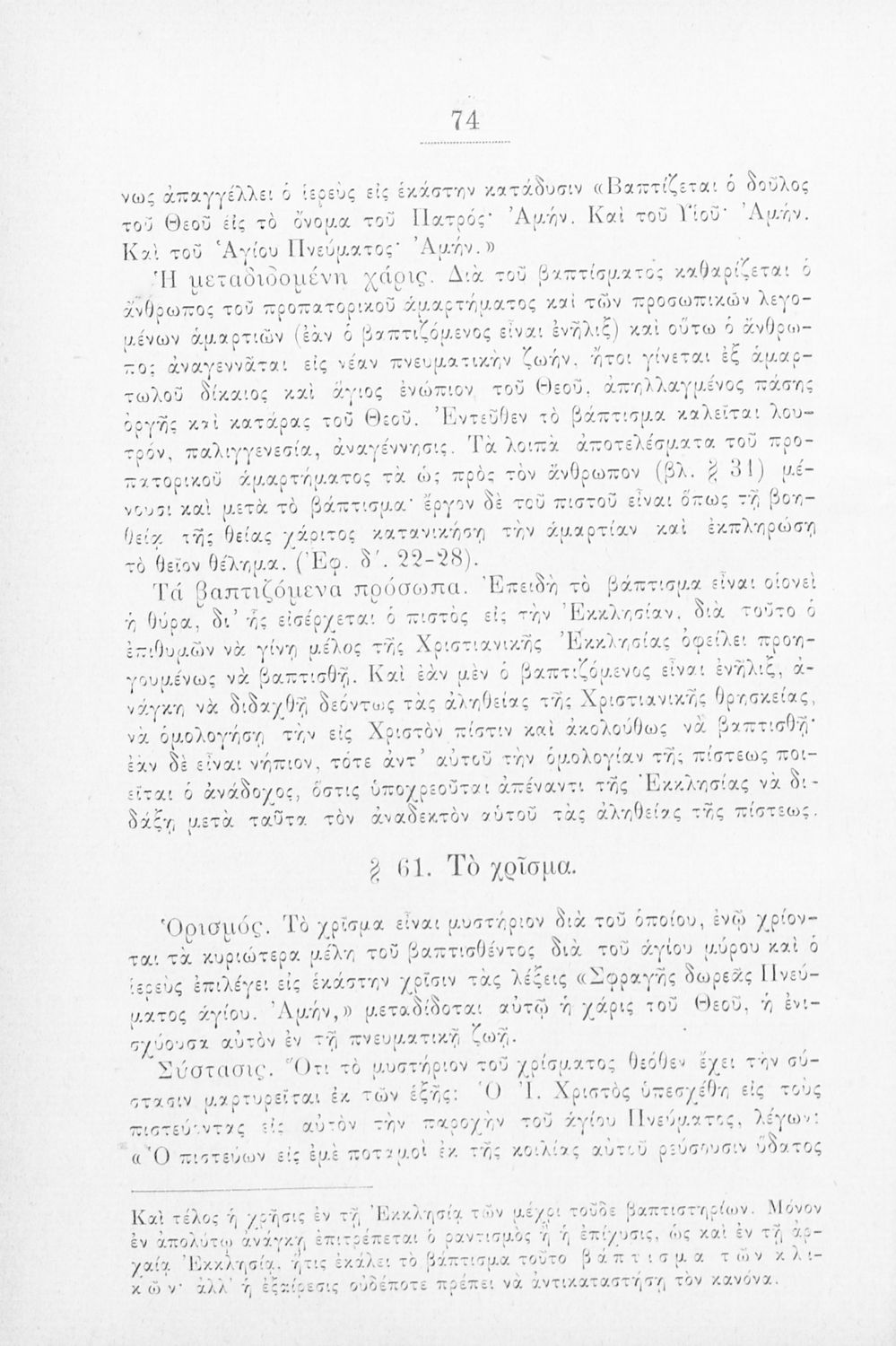 Βαθμίδα εκπαίδευσης: Δευτεροβάθμια Τάξη: Γυμνάσιο Μάθημα: Θρησκευτικά Γλώσσα: Καθαρεύουσα Παρουσίαση περιεχομένου: Σχολικό εγχειρίδιο Θρησκευτικών για τα Γυμνάσια που εστιάζει στη χριστιανική ηθική και αναλύει τα καθήκοντα του ανθρώπου προς τον Θεό, τους άλλους ανθρώπους και τον εαυτό του. |