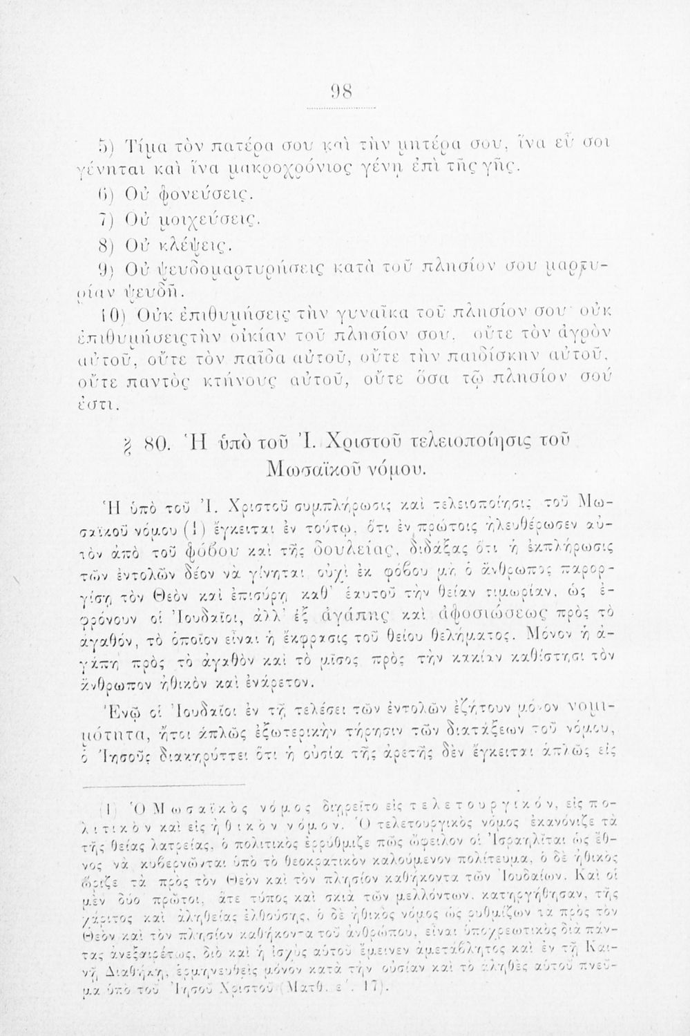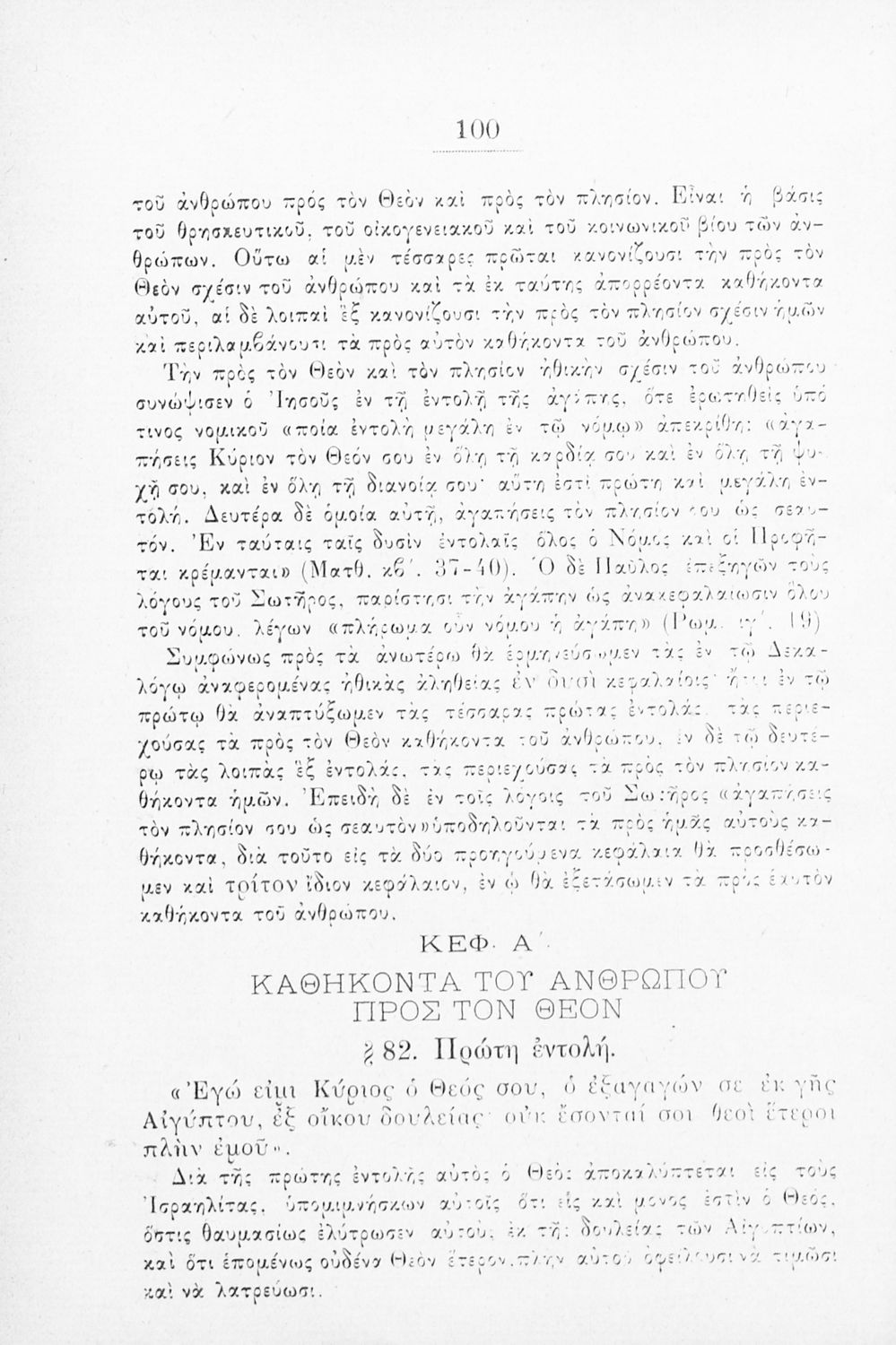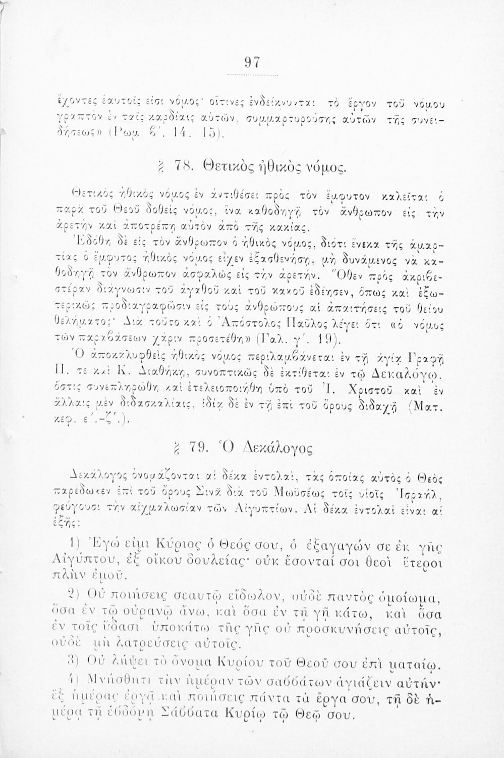 Βαθμίδα εκπαίδευσης: Δευτεροβάθμια Τάξη: Γυμνάσιο Μάθημα: Θρησκευτικά Γλώσσα: Καθαρεύουσα Παρουσίαση περιεχομένου: Σχολικό εγχειρίδιο Θρησκευτικών για τα Γυμνάσια που εστιάζει στη χριστιανική ηθική και αναλύει τα καθήκοντα του ανθρώπου προς τον Θεό, τους άλλους ανθρώπους και τον εαυτό του. |