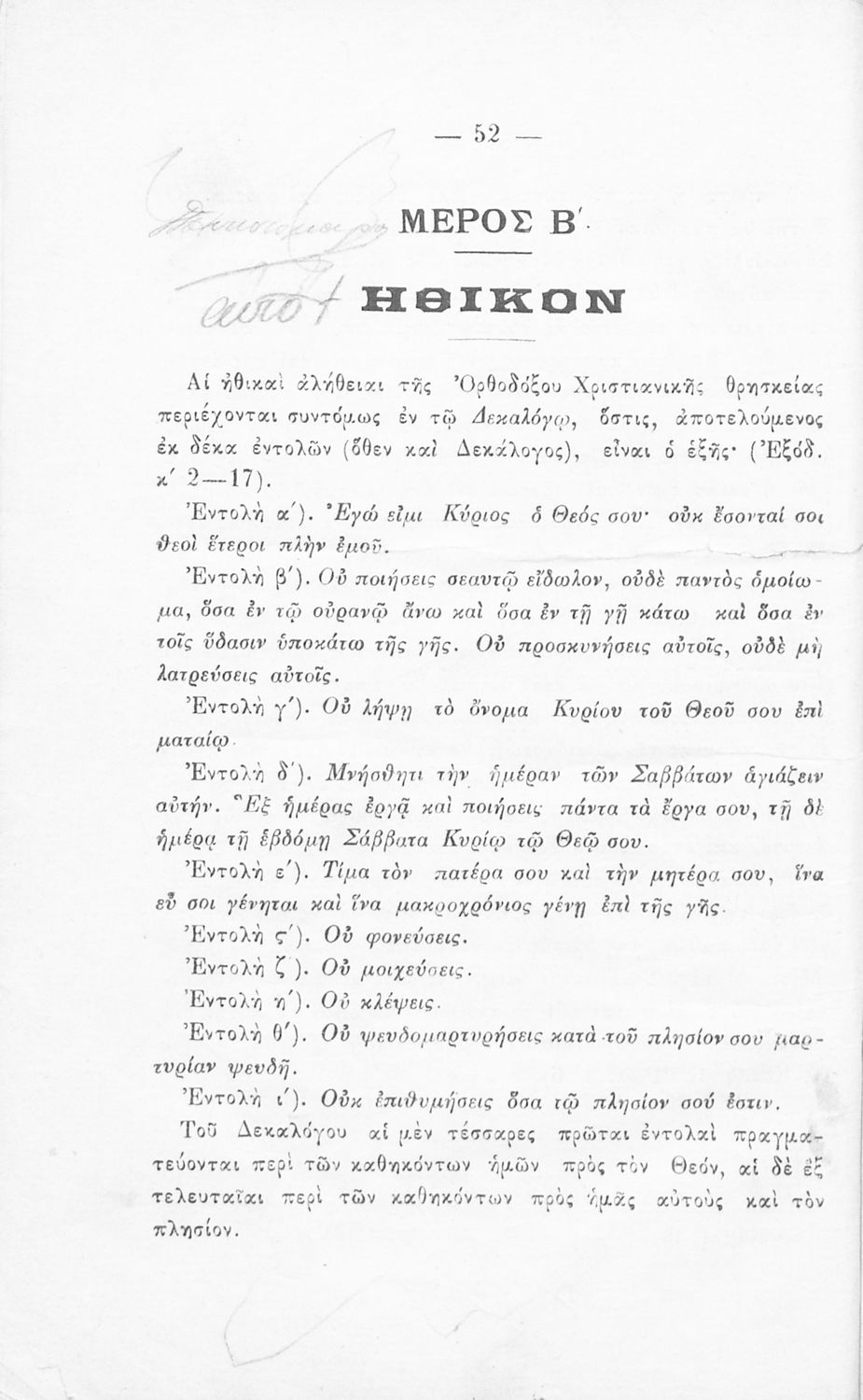 Σχολικό εγχειρίδιο Θρησκευτικών για τα Ελληνικά Σχολεία και Παρθεναγωγεία που εστιάζει σε θέματα χριστιανικής ηθικής και σε δογματικά και ηθικά ζητήματα της ορθόδοξης κατήχησης.