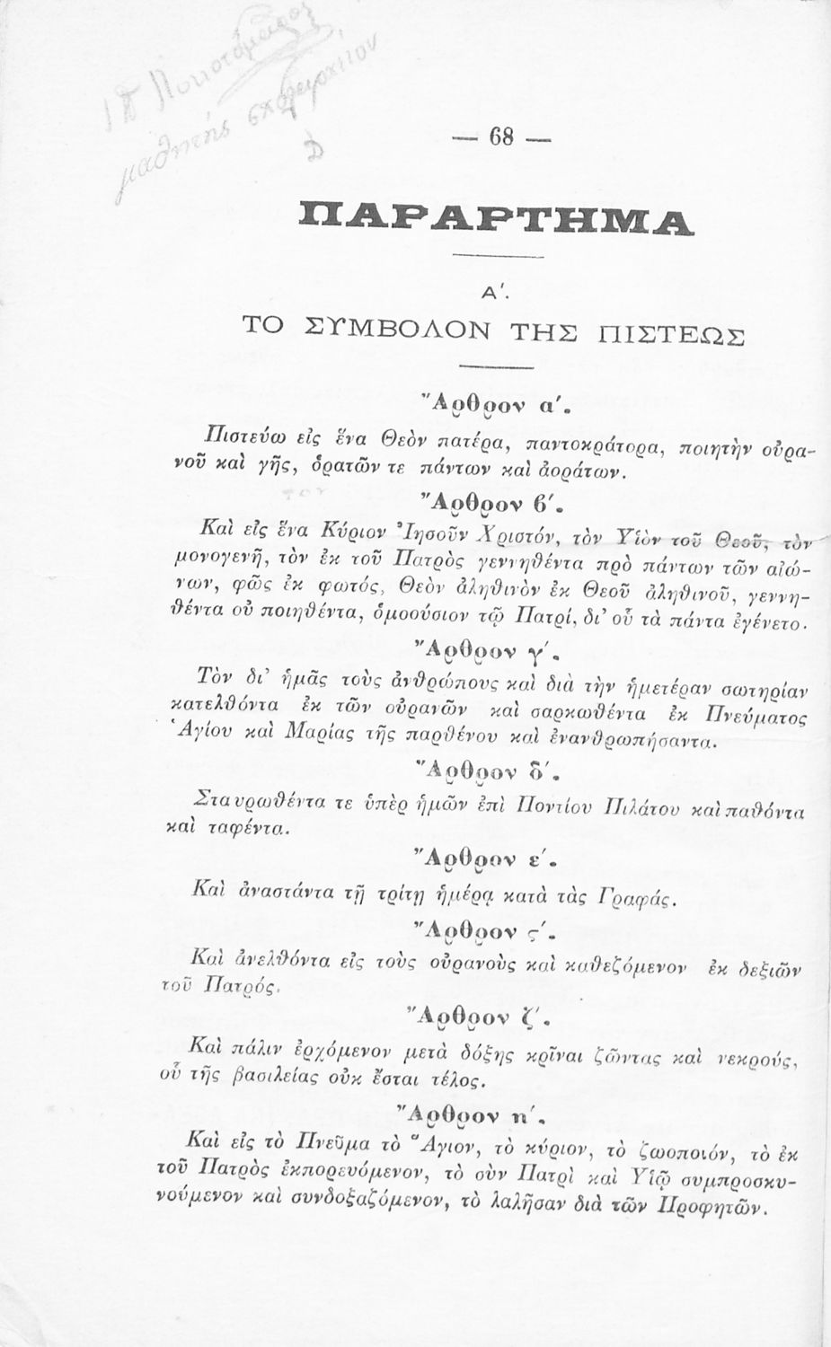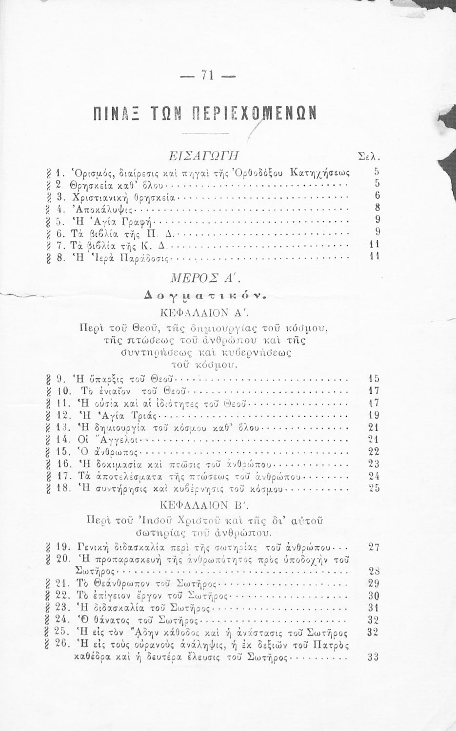 Βαθμίδα εκπαίδευσης: Δευτεροβάθμια Τάξη: Ελληνικό Σχολείο / Παρθεναγωγείο Μάθημα: Θρησκευτικά Γλώσσα: Καθαρεύουσα Παρουσίαση περιεχομένου: Σχολικό εγχειρίδιο Θρησκευτικών για τα Ελληνικά Σχολεία και παρθεναγωγεία που περιλαμβάνει εισαγωγή στην Παλαιά και Καινή διαθήκη και πραγματεύεται δογματικά και ηθικά ζητήματα της ορθόδοξης κατήχησης Είχε εγκριθεί από την Ιερά Σύνοδο |