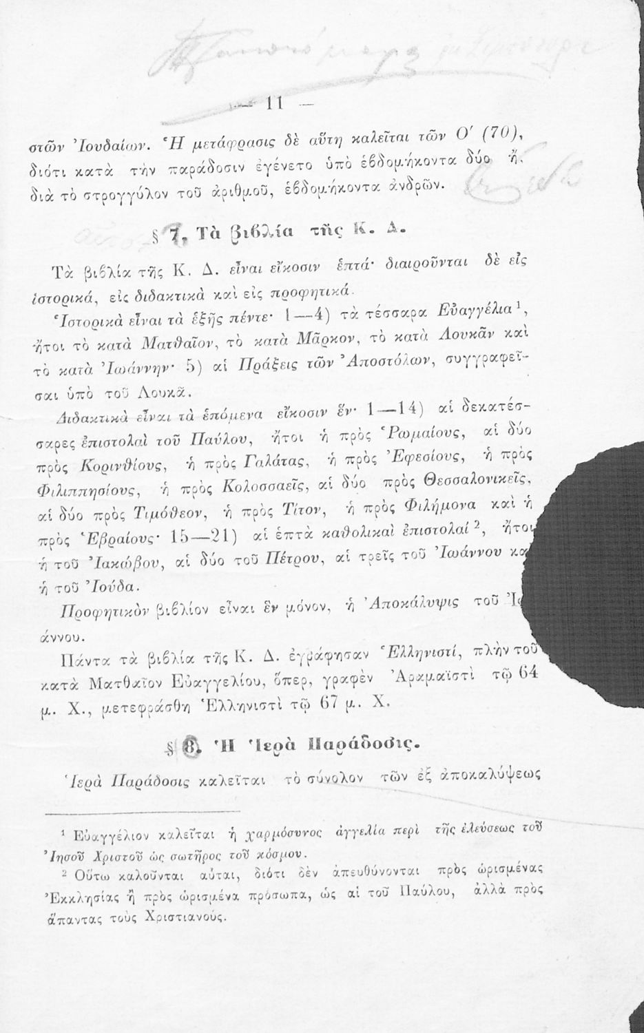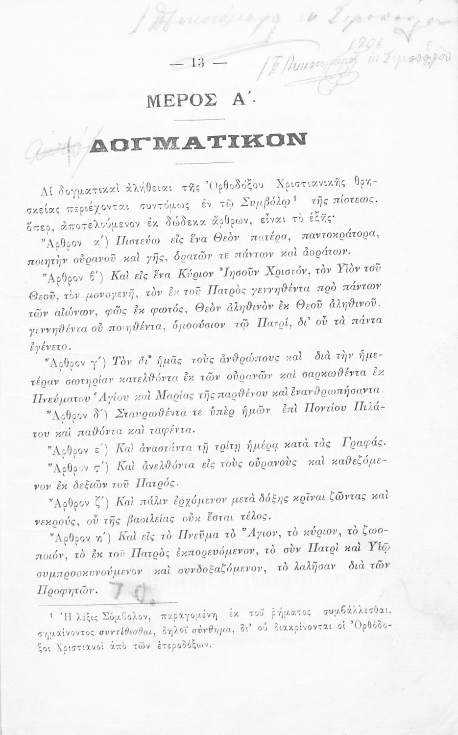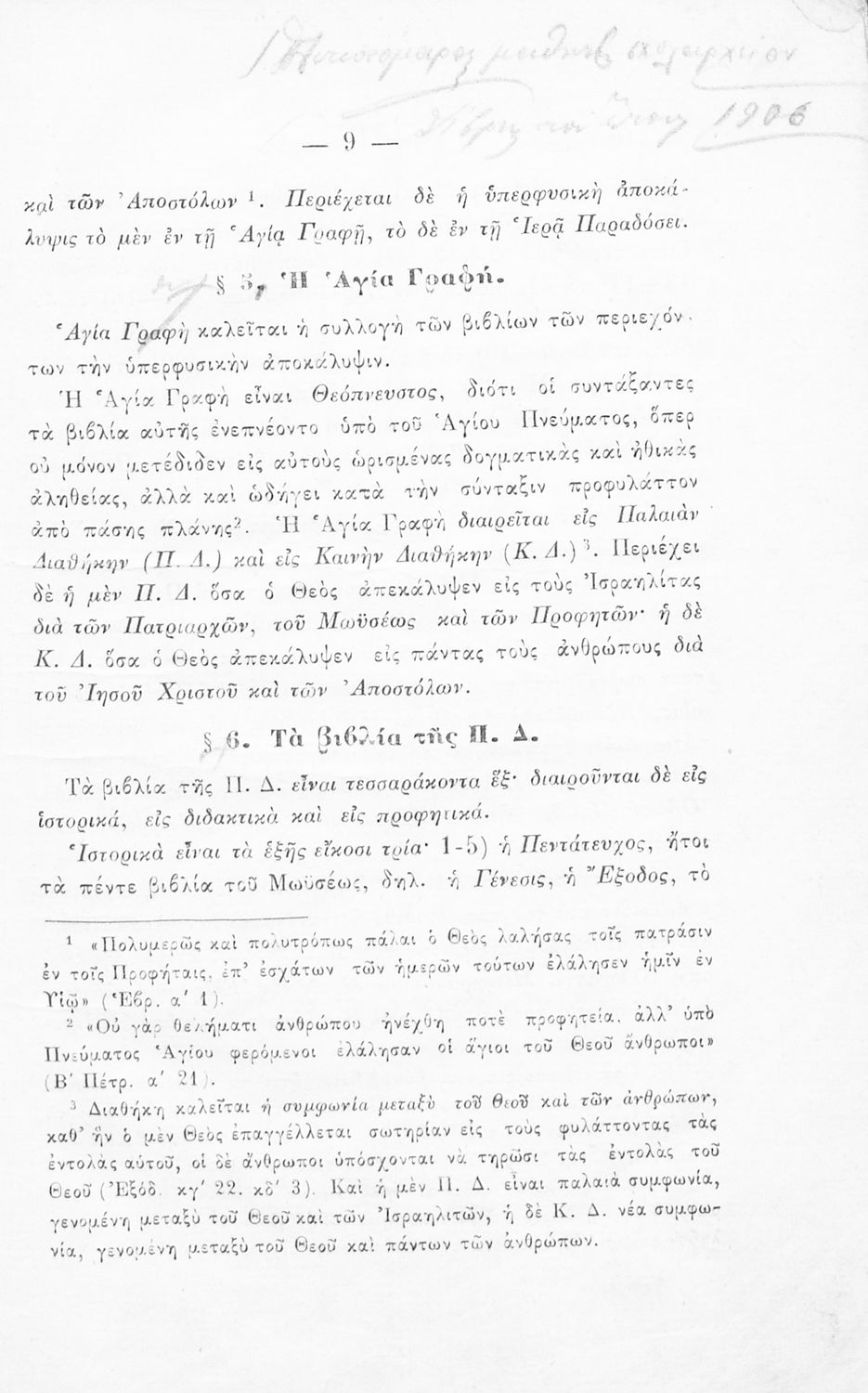 Βαθμίδα εκπαίδευσης: Δευτεροβάθμια Τάξη: Ελληνικό Σχολείο / Παρθεναγωγείο Μάθημα: Θρησκευτικά Γλώσσα: Καθαρεύουσα Παρουσίαση περιεχομένου: Σχολικό εγχειρίδιο Θρησκευτικών για τα Ελληνικά Σχολεία και παρθεναγωγεία που περιλαμβάνει εισαγωγή στην Παλαιά και Καινή διαθήκη και πραγματεύεται δογματικά και ηθικά ζητήματα της ορθόδοξης κατήχησης Είχε εγκριθεί από την Ιερά Σύνοδο |