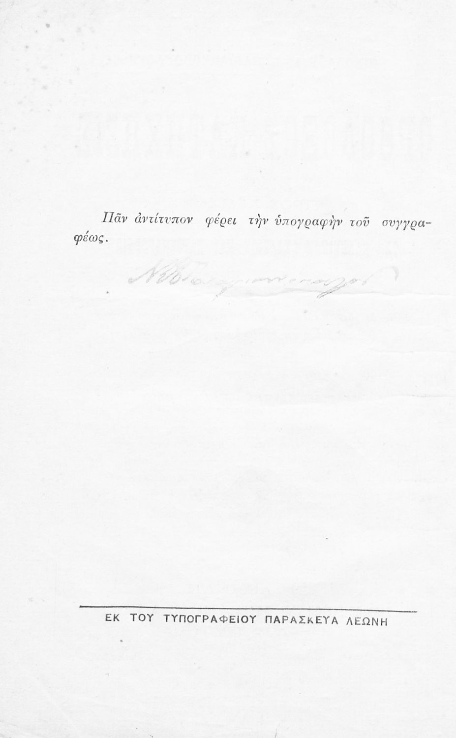 Εντοπισμός πρωτοτύπου: Ελληνικό Λογοτεχνικό και Ιστορικό Αρχείο Κωδικός βιβλιοθήκης: 1905 ΠΑΠ |