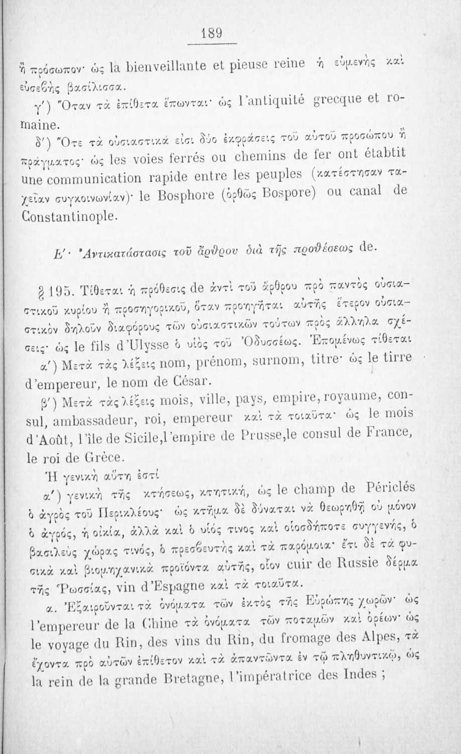 LDR 00995 2200205 4500 035 ## _a02-02252 040 ## _aΕλληνικό Λογοτεχνικό και Ιστορικό Αρχείο 041 ## _ael 100 ## _aΙωάννης Α. Τέτσης 110 ## _a1905 ΤΕΤ ΓΡΑ 245 0# _aΓραμματική της γαλλικής γλώσσης, προς χρήσιν των μαθητών των Γυμνασίων 250 ## _a2η Έκδοση 260 ## _aΑθήνα _bΒασιλική Τυπογραφία Ραφτάνης-Παπαγεωργίου _c1905 300 ## _a262 520 ## _aΣχολικό εγχειρίδιο Γαλλικών Γυμνασίου που περιλαμβάνει τους κανόνες γραμματικής και συντακτικού. 521 ## _aΓυμνάσιο 522 ## _aΕλλάδα 546 ## _aΚαθαρεύουσα 563 ## _aΜαλακό Εξώφυλλο 650 #4 _aΑντωνυμίες _aΕπίθετα _aΟνόματα _aΡήματα