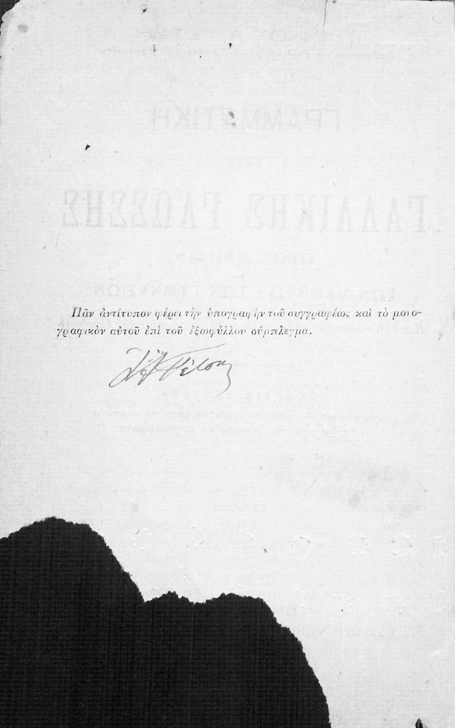 Εντοπισμός πρωτοτύπου: Ελληνικό Λογοτεχνικό και Ιστορικό Αρχείο Κωδικός βιβλιοθήκης: 1905 ΤΕΤ ΓΡΑ |