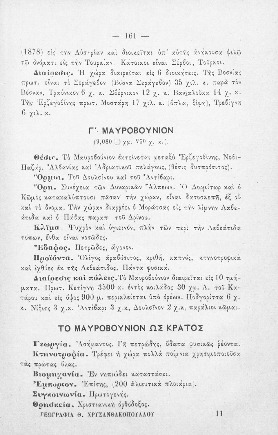 Σχολικό εγχειρίδιο Γεωγραφίας για τα Ελληνικά Σχολεία και Παρθεναγωγεία που παρουσιάζει τις γενικές έννοιες της επιστήμης της γεωγραφίας και αναλύει τη φυσική και πολιτική γεωγραφία της Ελλάδας και των 5 ...