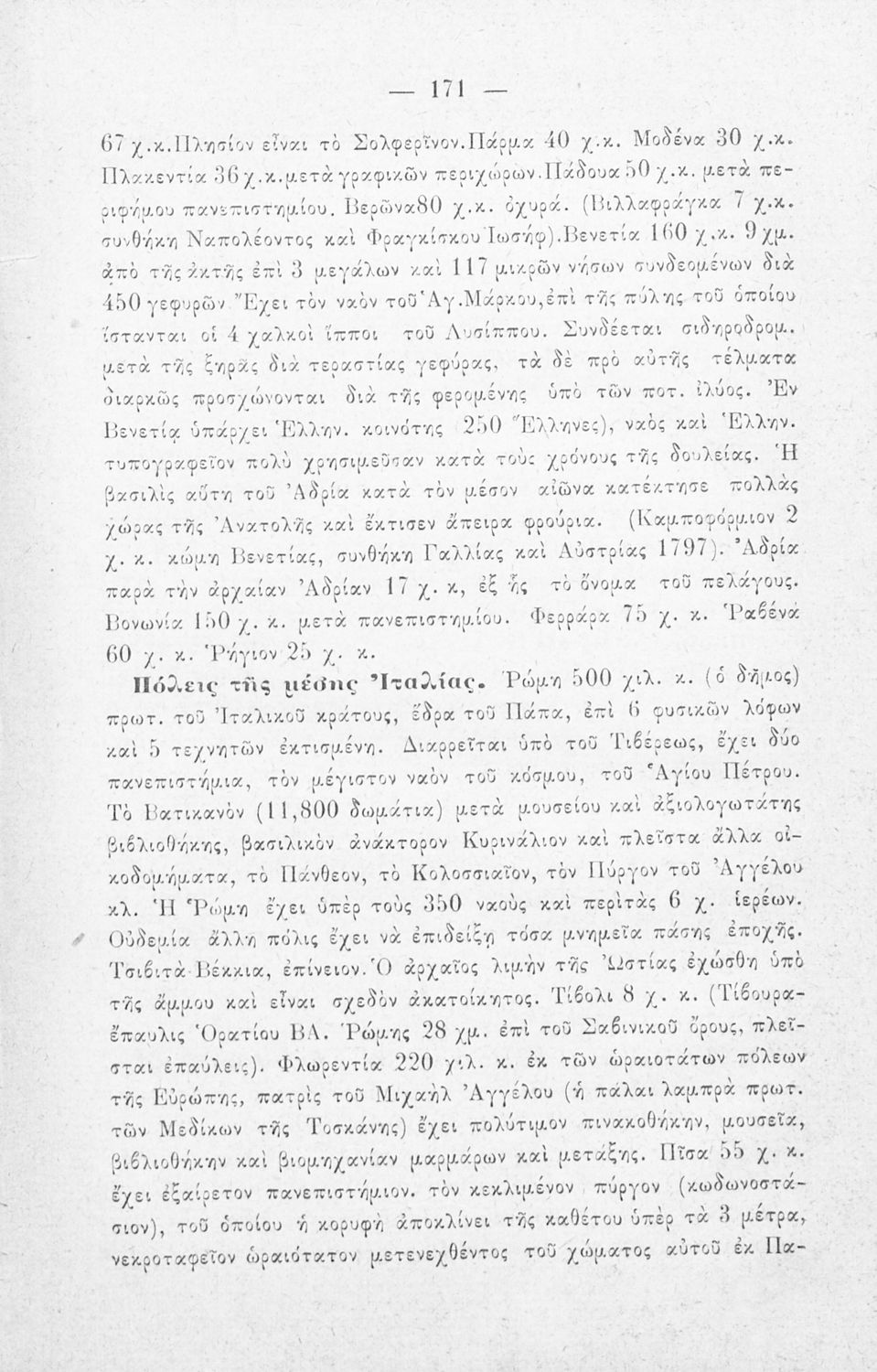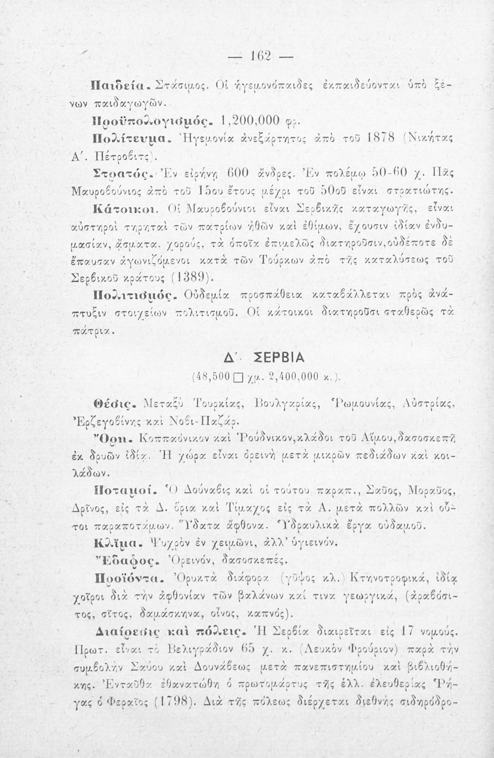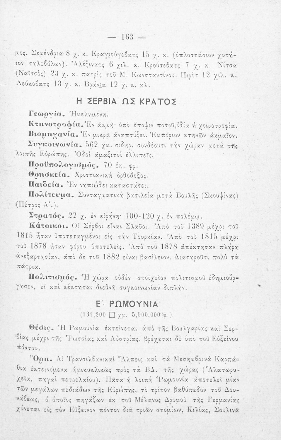 Σχολικό εγχειρίδιο Γεωγραφίας για Ελληνικά Σχολεία και Παρθεναγωγεία που περιλαμβάνει στοιχεία φυσικής, πολιτικής, πολιτισμικής και ιστορικής γεωγραφίας και εξετάζει ενδεικτικά κράτη και περιοχές από τις πέντε ηπείρους από γεωφυσική, πολιτική και οικονομική σκοπιά.