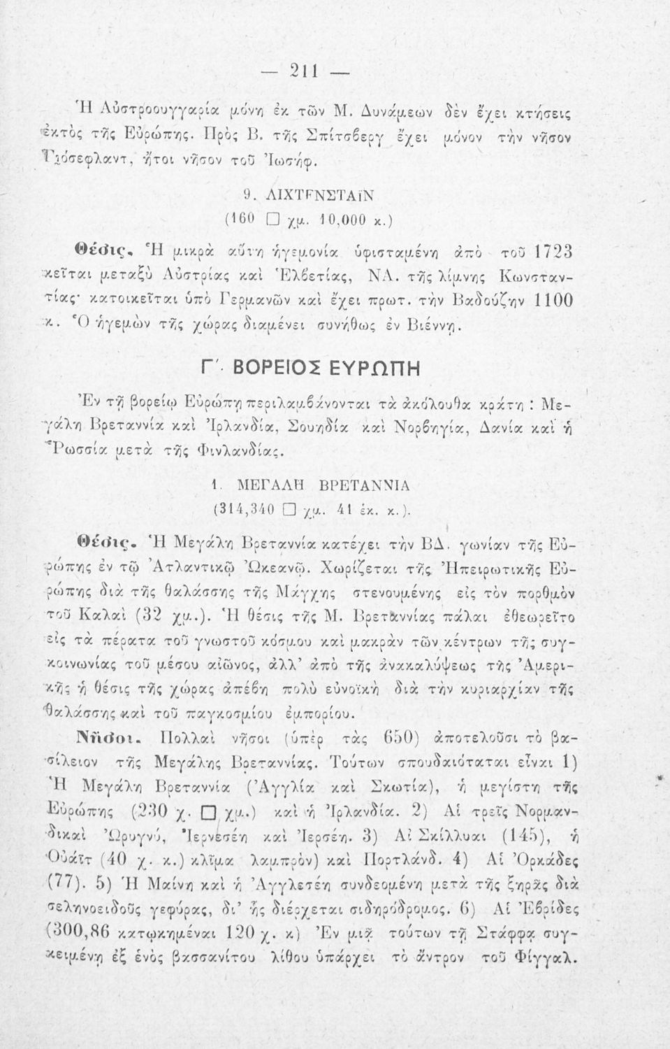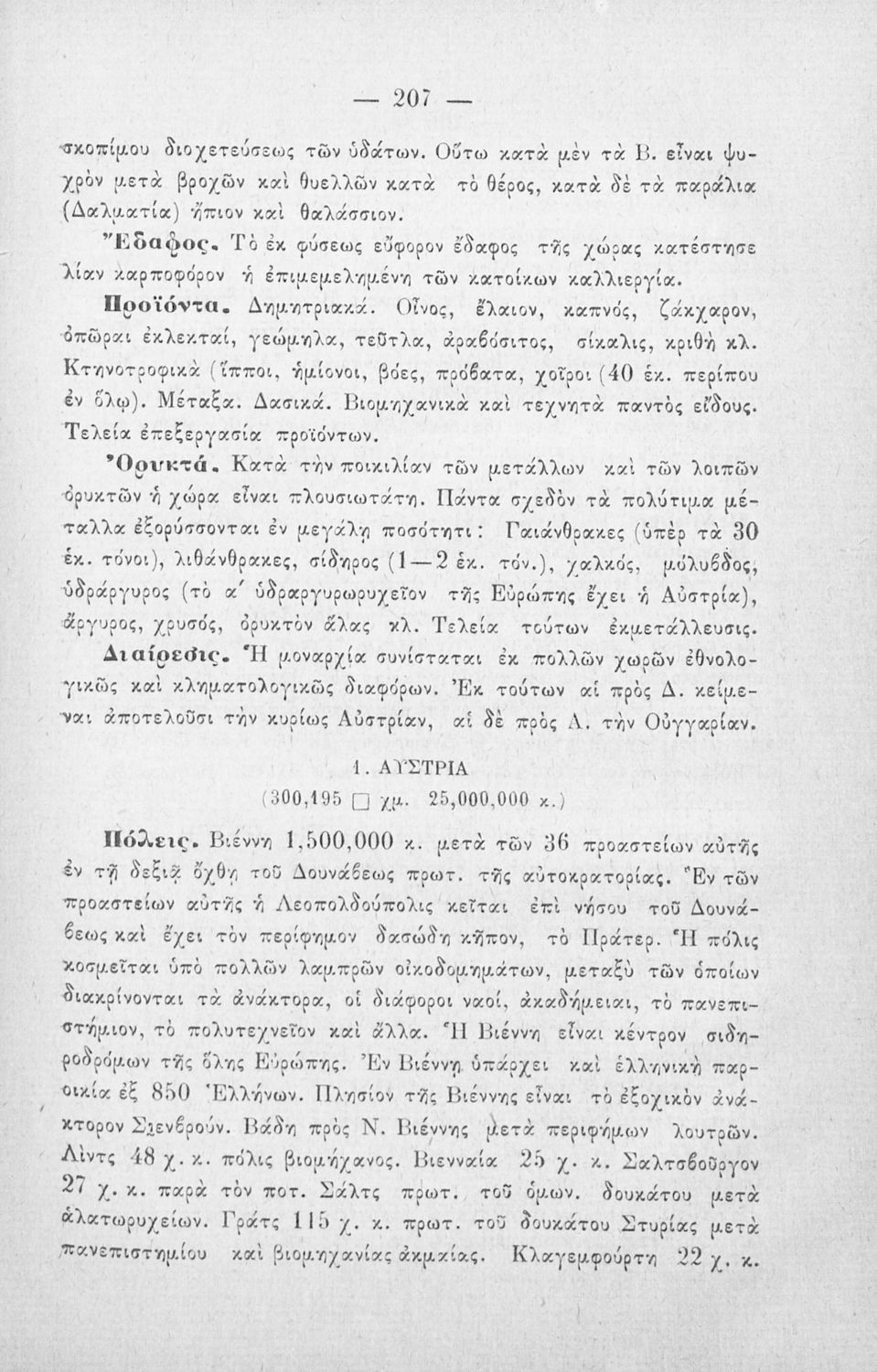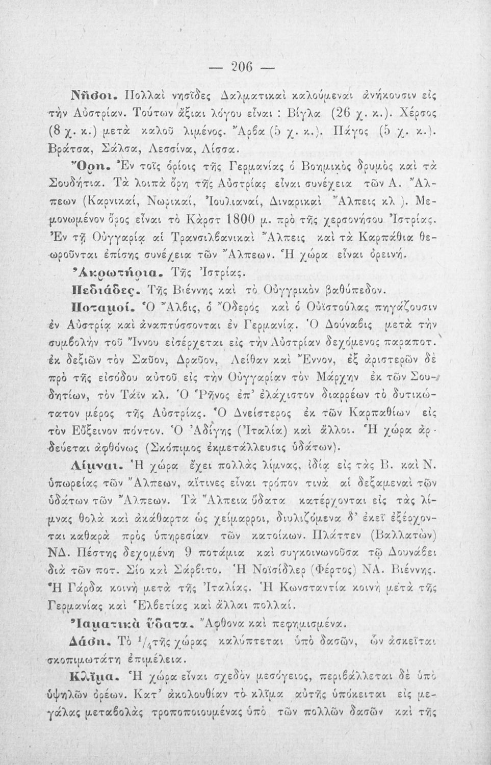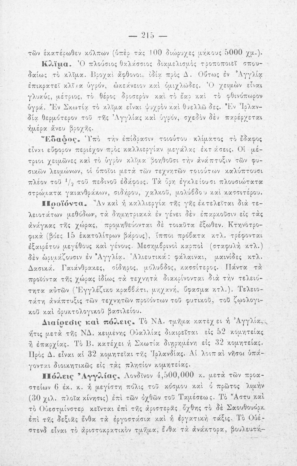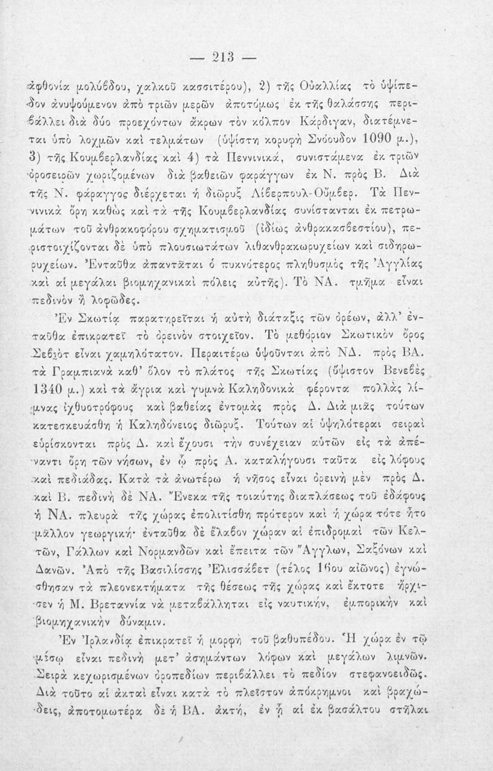 Σχολικό εγχειρίδιο Γεωγραφίας για Ελληνικά Σχολεία και Παρθεναγωγεία που περιλαμβάνει στοιχεία φυσικής, πολιτικής, πολιτισμικής και ιστορικής γεωγραφίας και εξετάζει ενδεικτικά κράτη και περιοχές από τις πέντε ηπείρους από γεωφυσική, πολιτική και οικονομική σκοπιά.