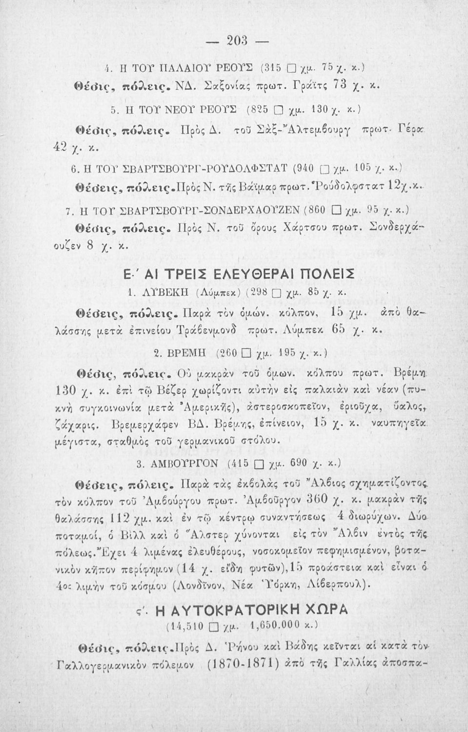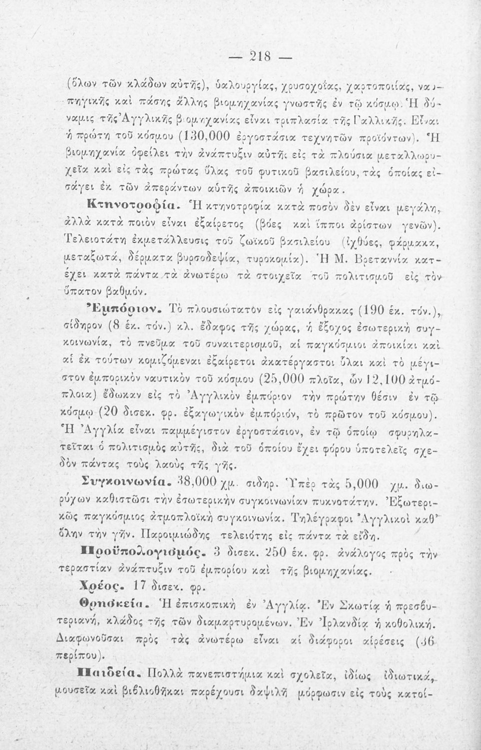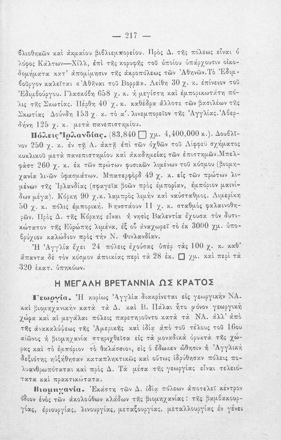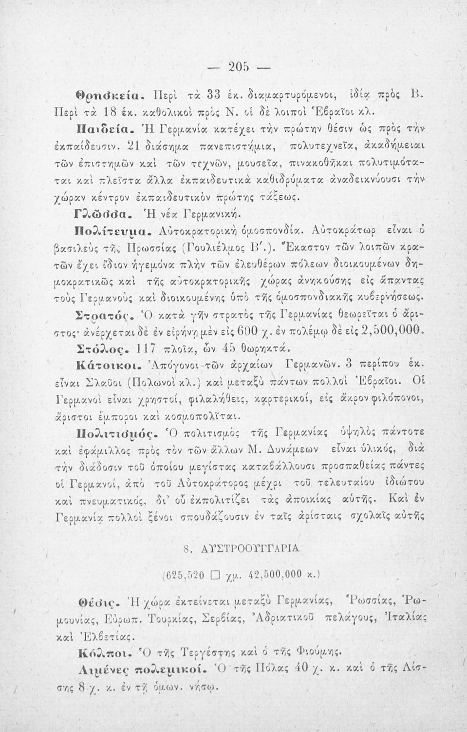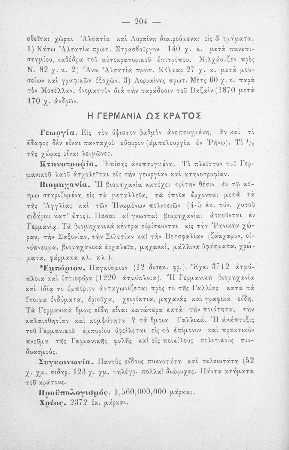 Σχολικό εγχειρίδιο Γεωγραφίας για Ελληνικά Σχολεία και Παρθεναγωγεία που περιλαμβάνει στοιχεία φυσικής, πολιτικής, πολιτισμικής και ιστορικής γεωγραφίας και εξετάζει ενδεικτικά κράτη και περιοχές από τις πέντε ηπείρους από γεωφυσική, πολιτική και οικονομική σκοπιά.