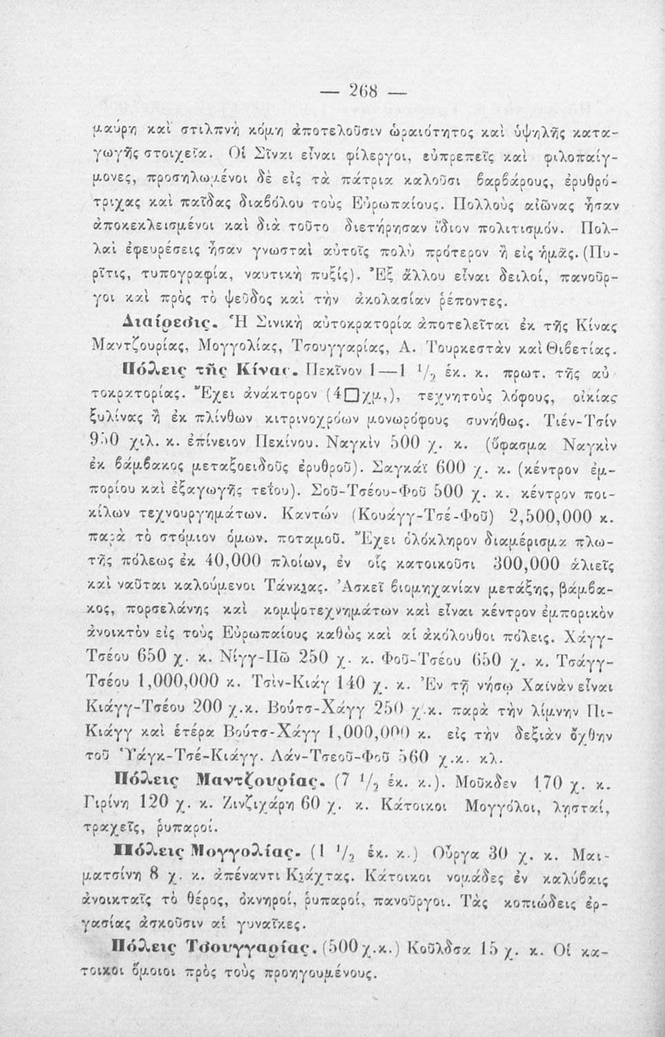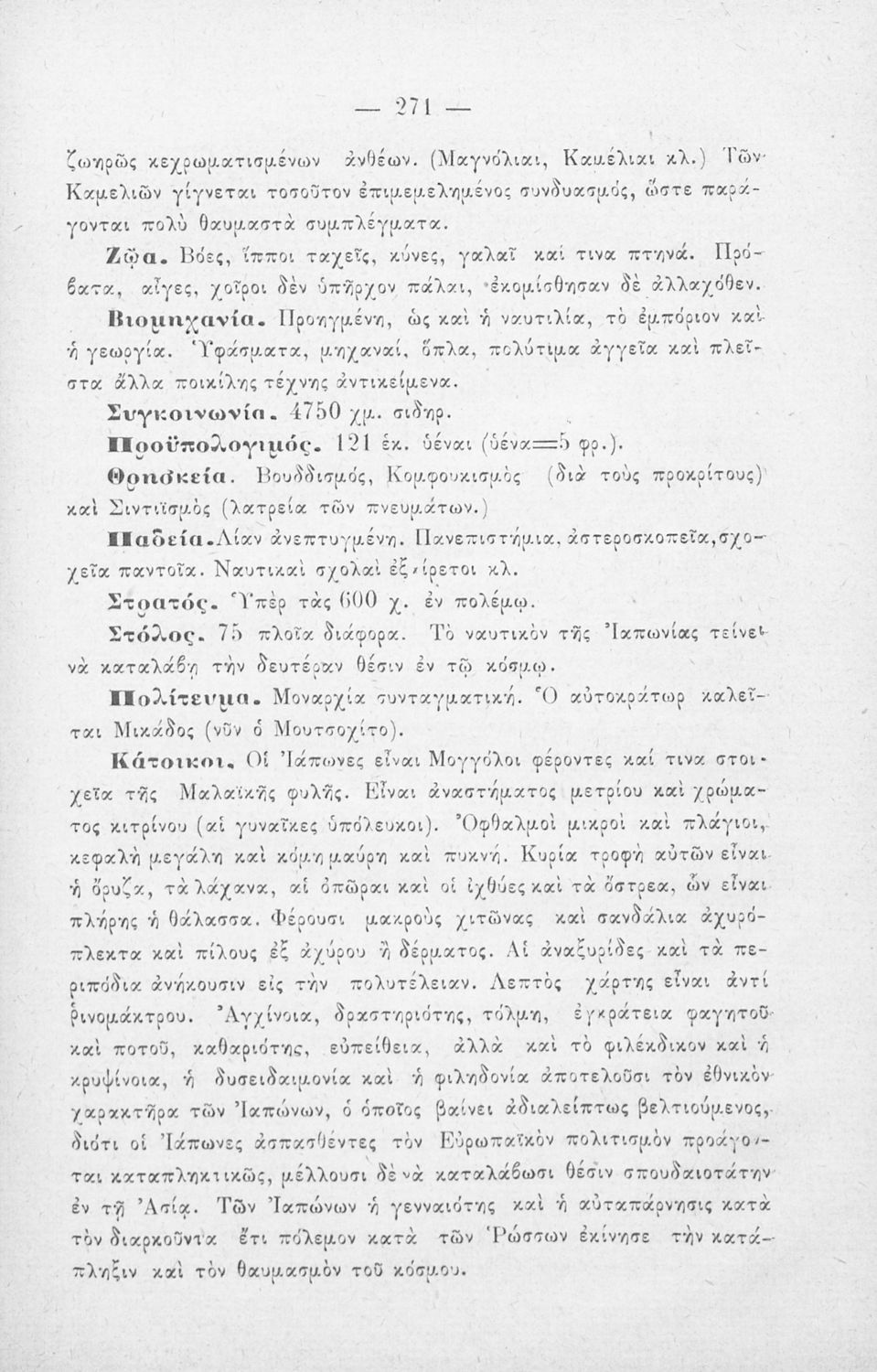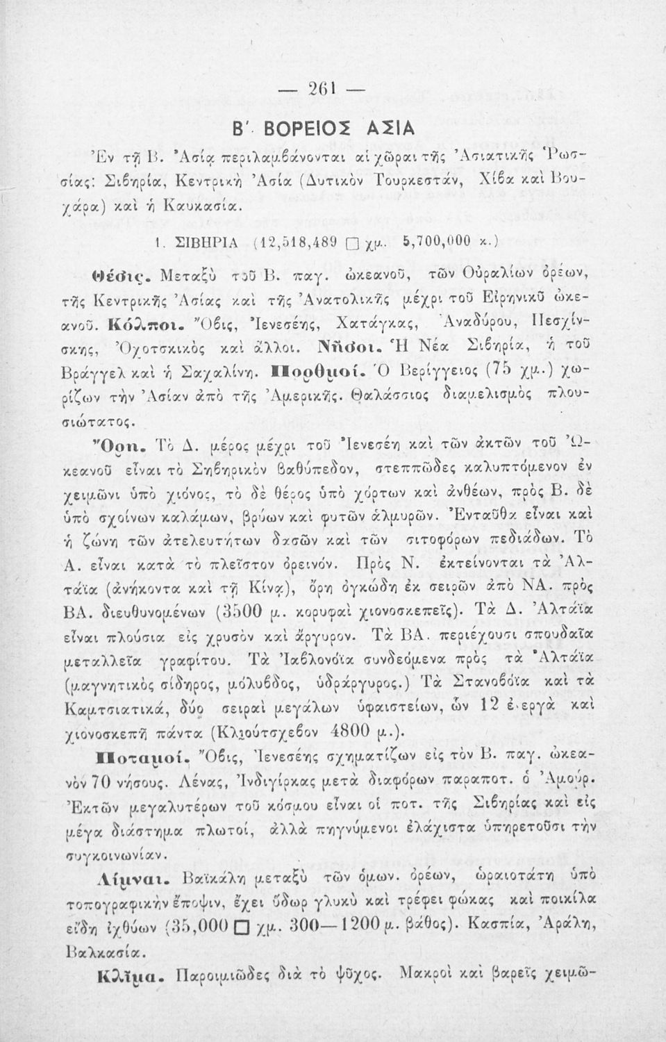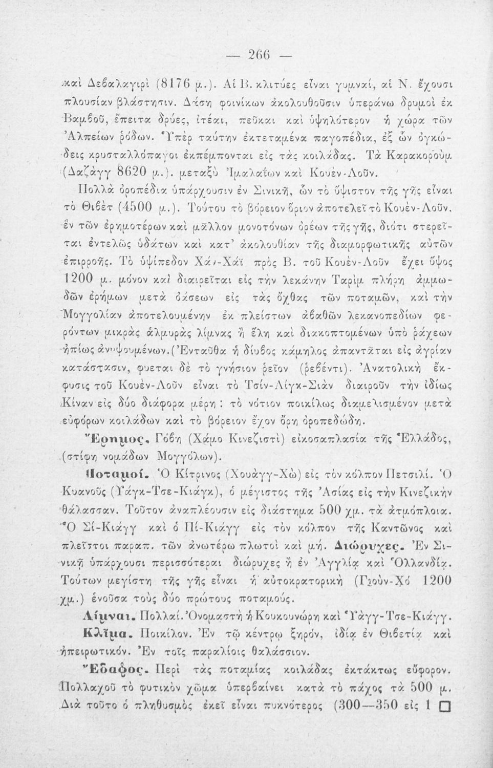 Σχολικό εγχειρίδιο Γεωγραφίας για Ελληνικά Σχολεία και Παρθεναγωγεία που περιλαμβάνει στοιχεία φυσικής, πολιτικής, πολιτισμικής και ιστορικής γεωγραφίας και εξετάζει ενδεικτικά κράτη και περιοχές από τις πέντε ηπείρους από γεωφυσική, πολιτική και οικονομική σκοπιά.