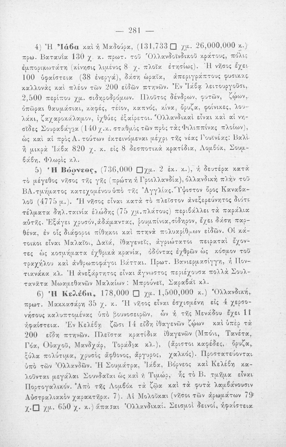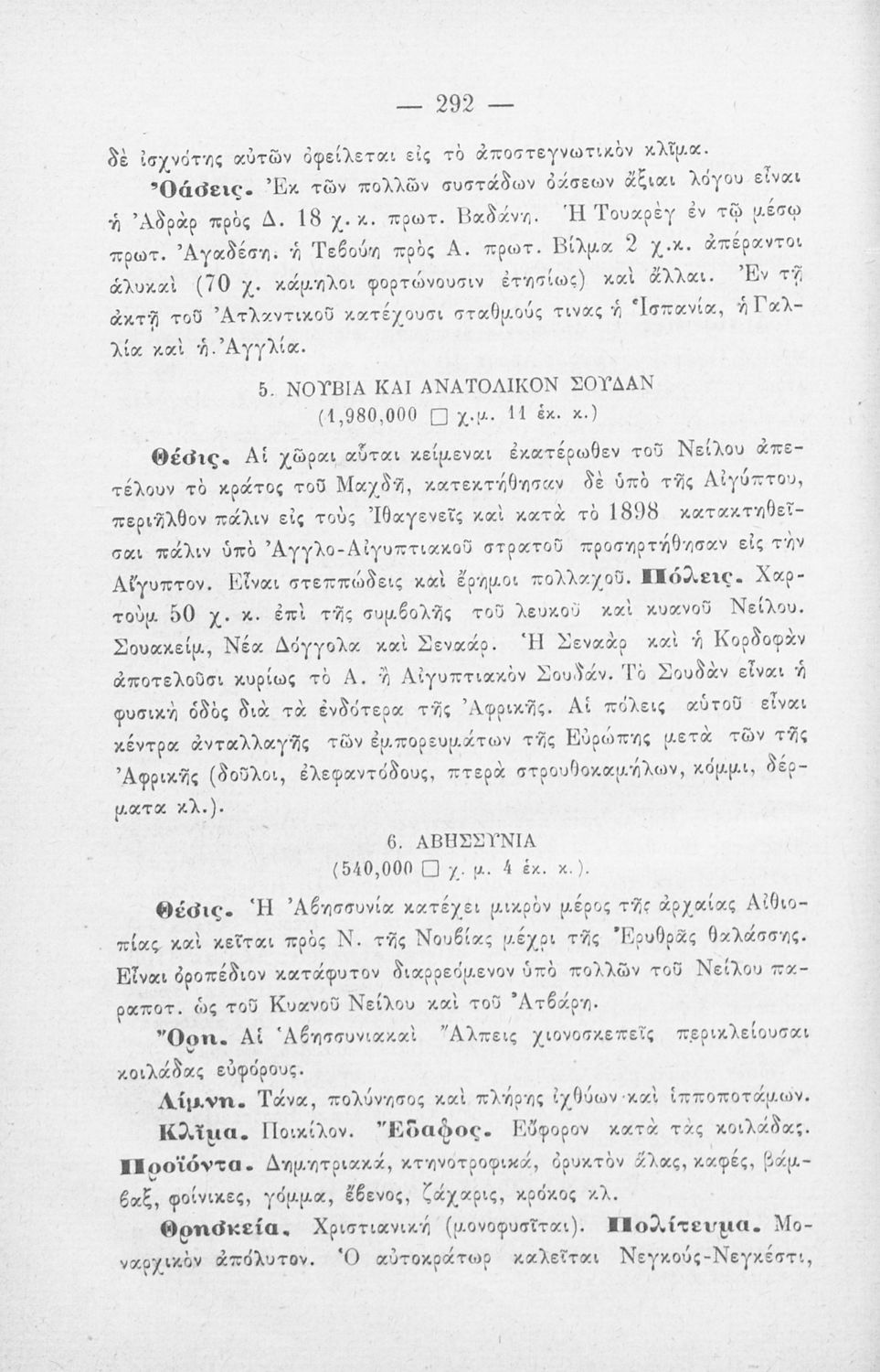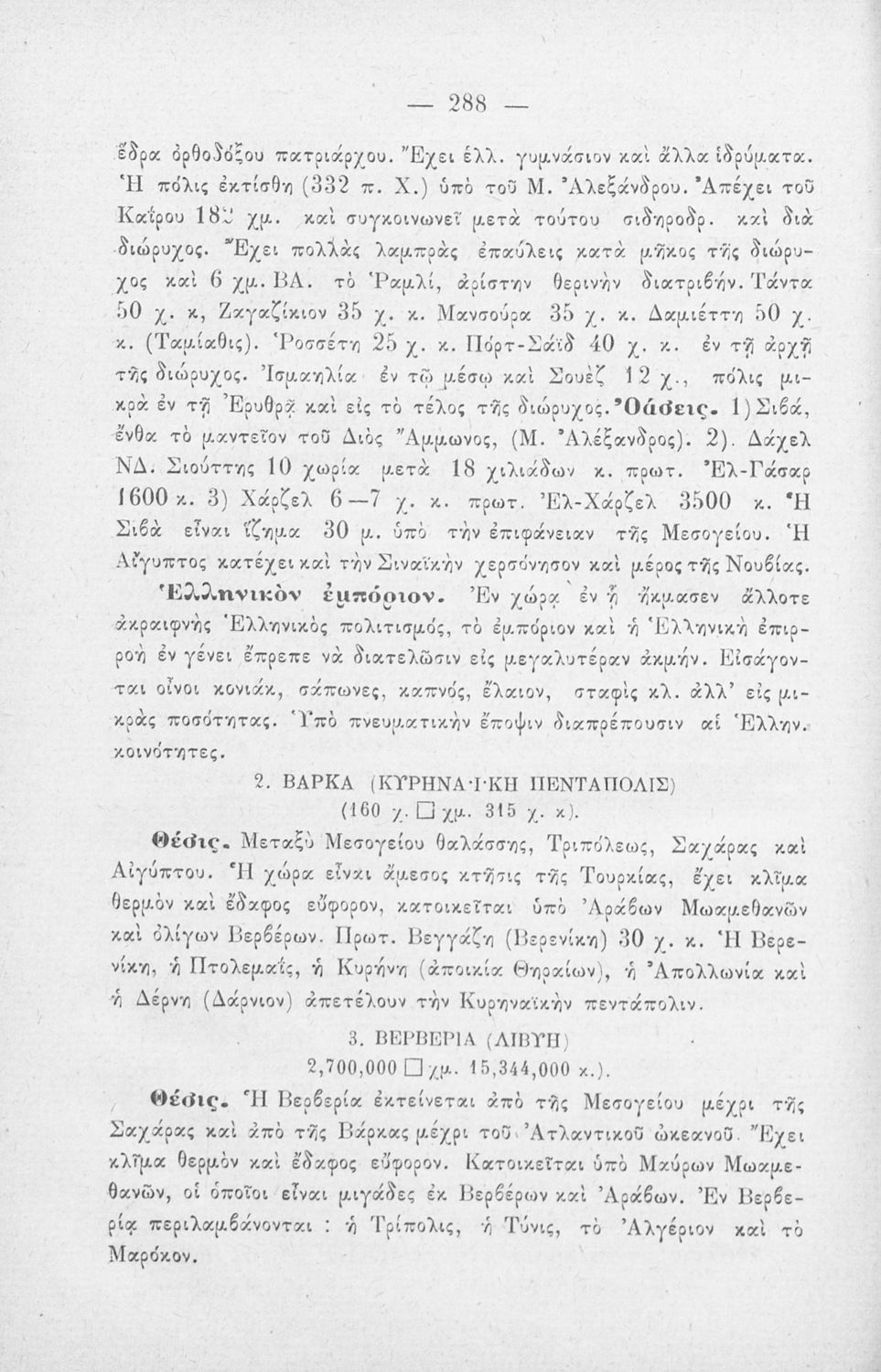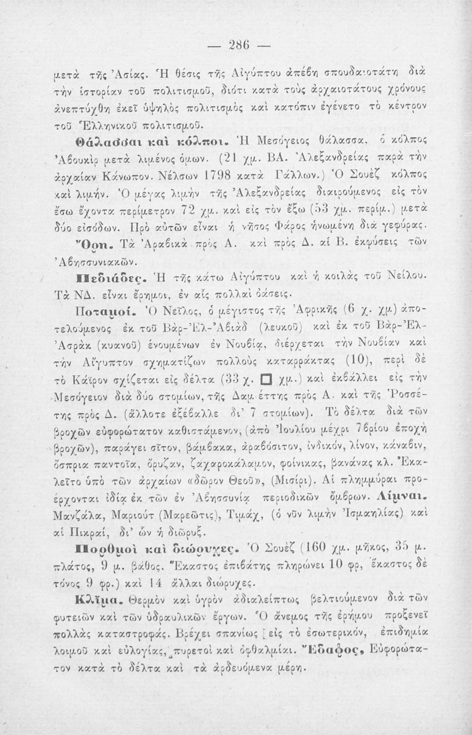 Σχολικό εγχειρίδιο Γεωγραφίας για Ελληνικά Σχολεία και Παρθεναγωγεία που περιλαμβάνει στοιχεία φυσικής, πολιτικής, πολιτισμικής και ιστορικής γεωγραφίας και εξετάζει ενδεικτικά κράτη και περιοχές από τις πέντε ηπείρους από γεωφυσική, πολιτική και οικονομική σκοπιά.