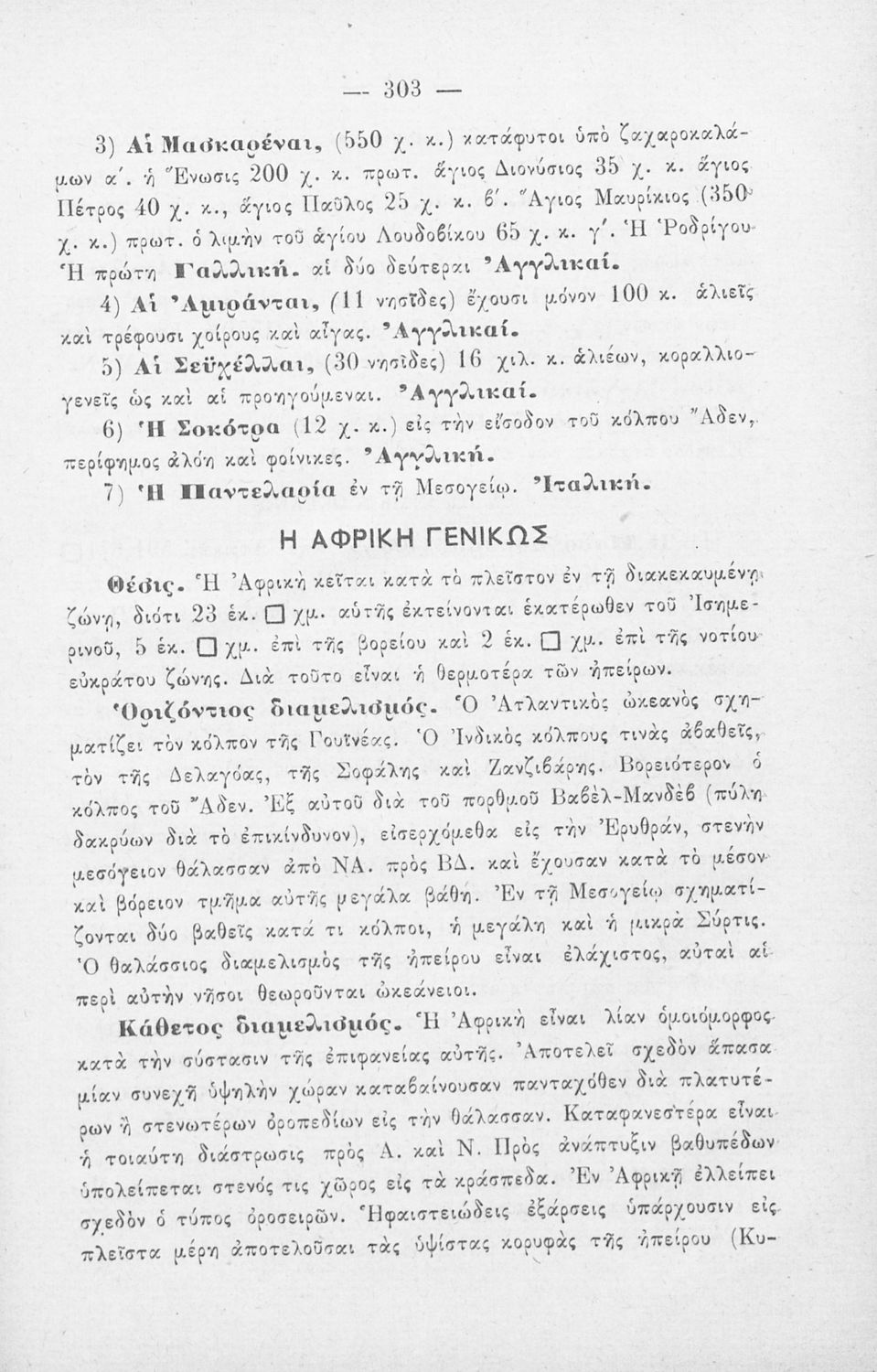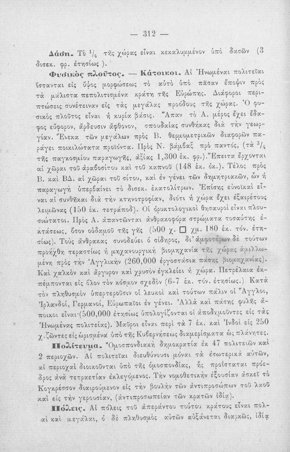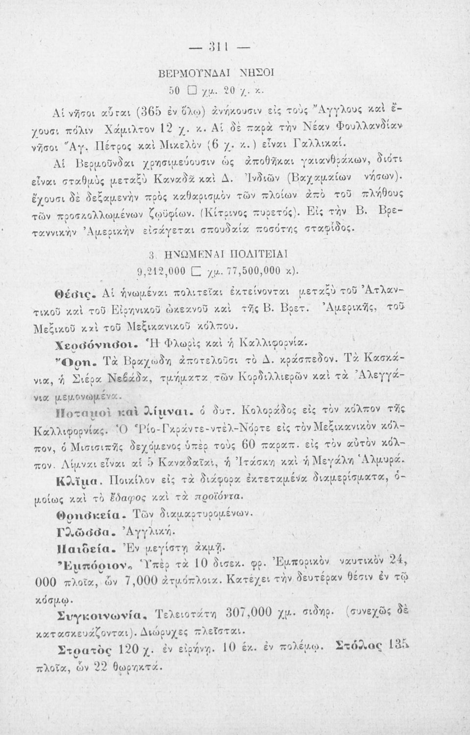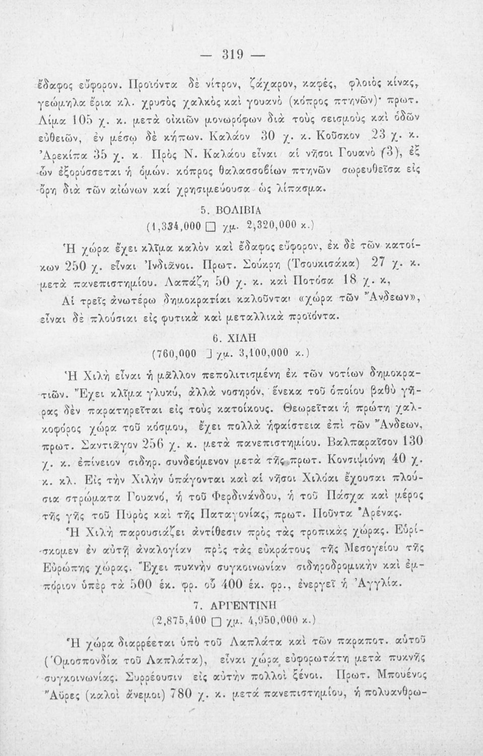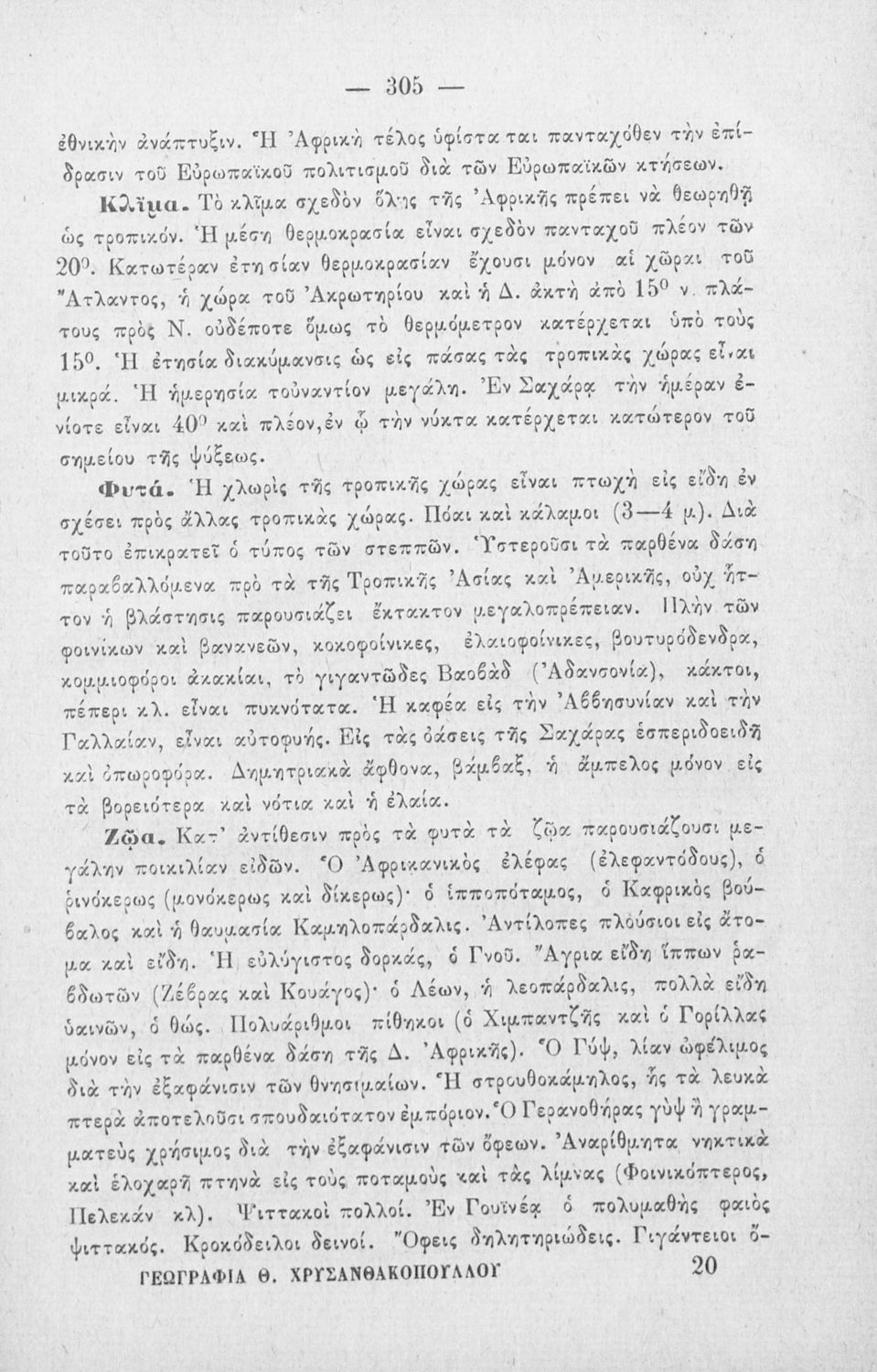 Σχολικό εγχειρίδιο Γεωγραφίας για Ελληνικά Σχολεία και Παρθεναγωγεία που περιλαμβάνει στοιχεία φυσικής, πολιτικής, πολιτισμικής και ιστορικής γεωγραφίας και εξετάζει ενδεικτικά κράτη και περιοχές από τις πέντε ηπείρους από γεωφυσική, πολιτική και οικονομική σκοπιά.