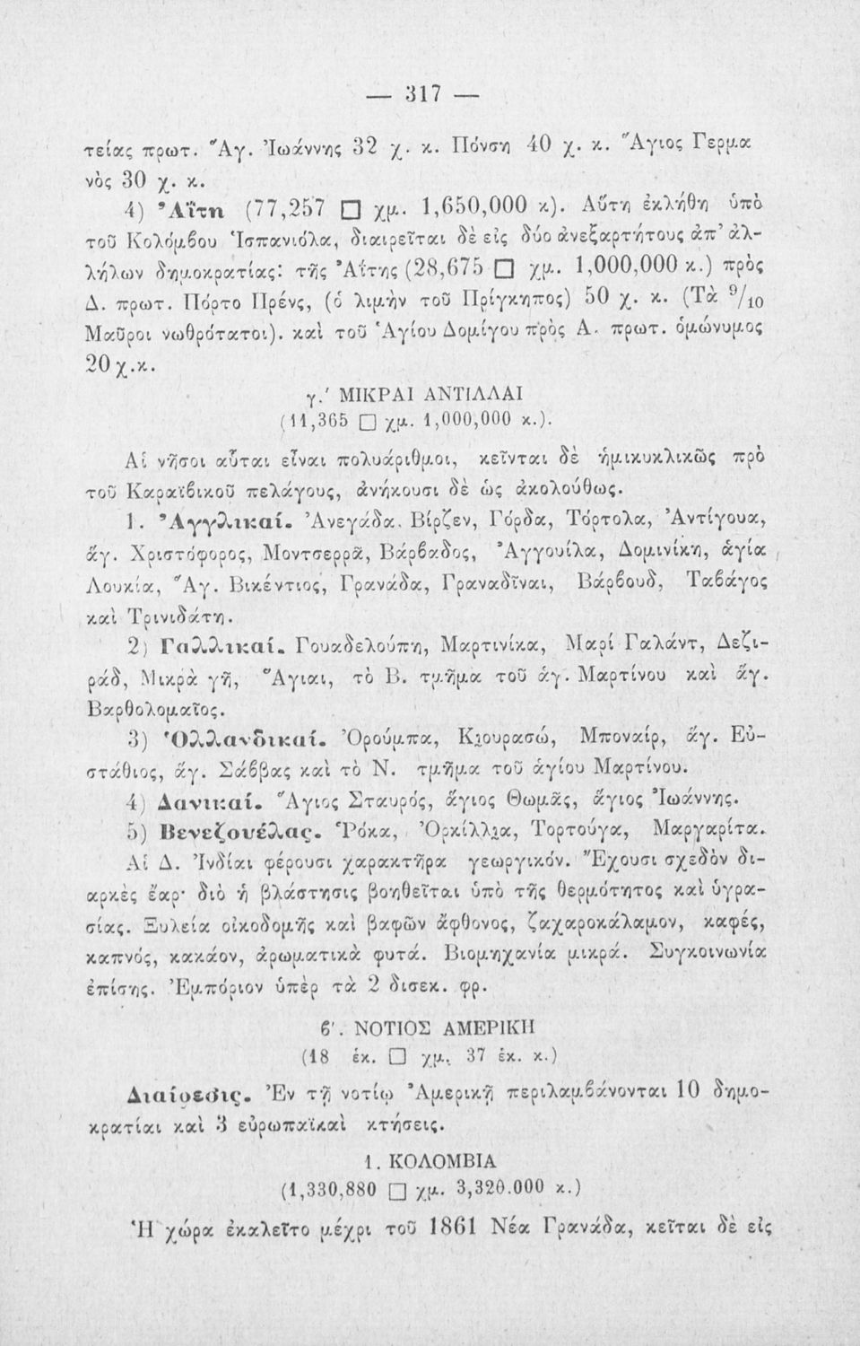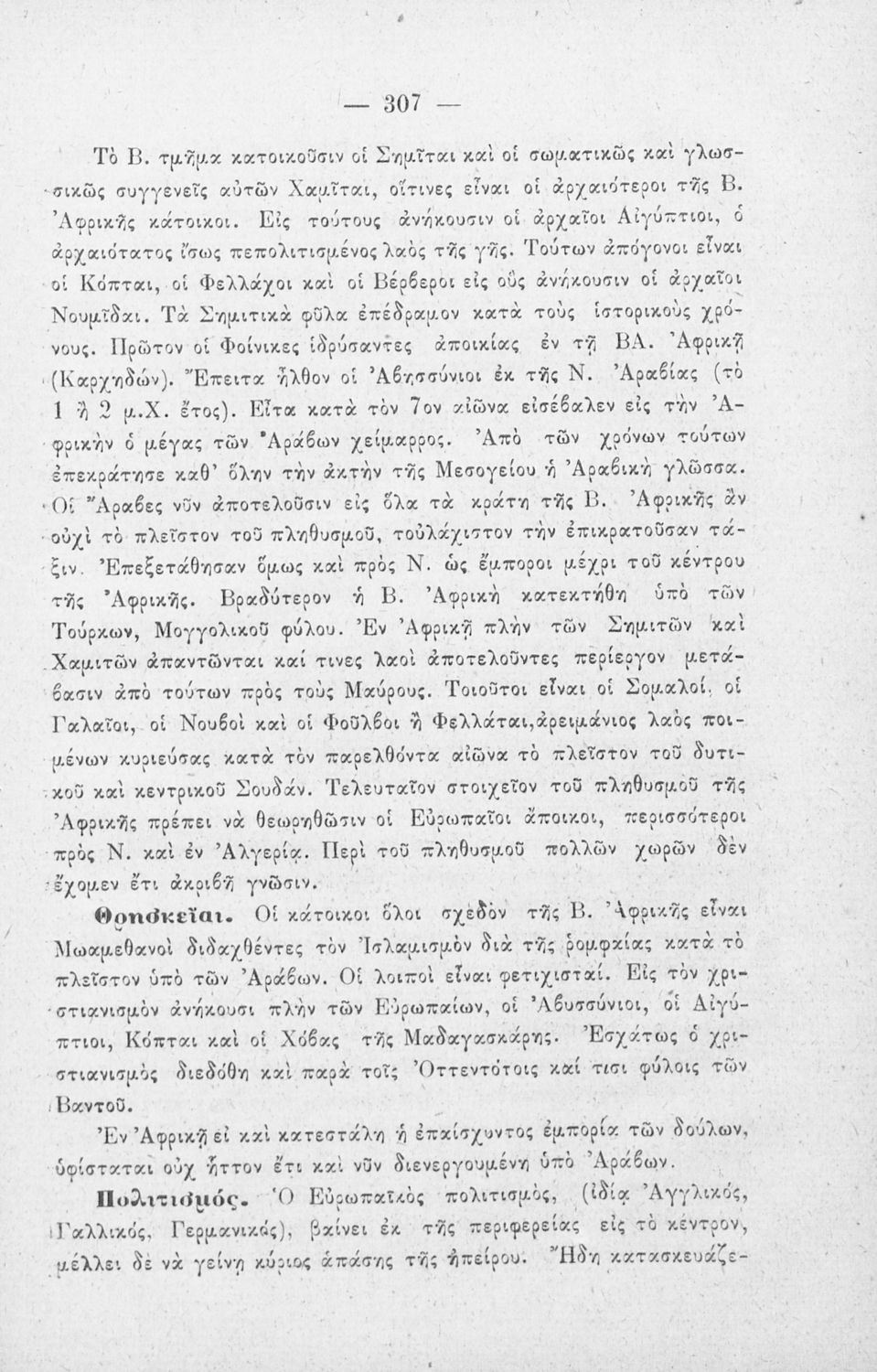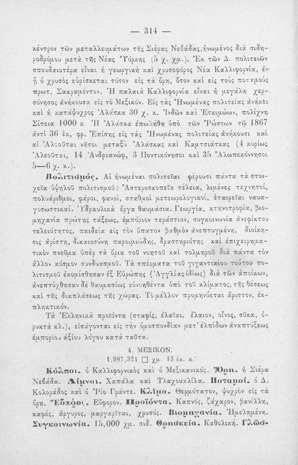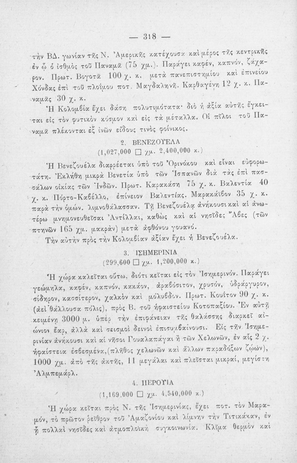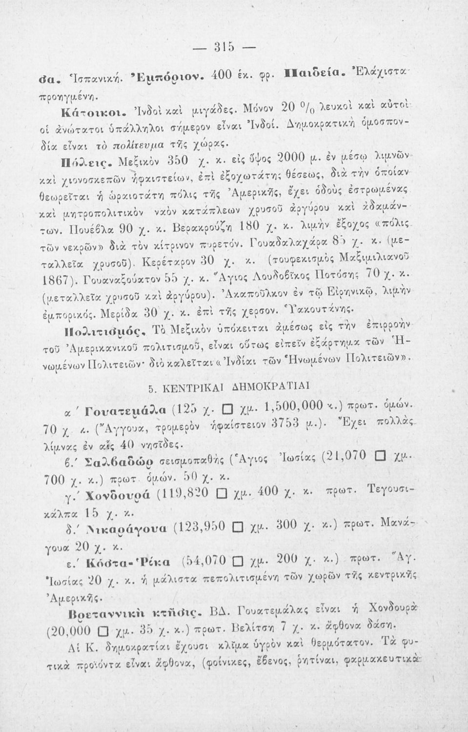 Σχολικό εγχειρίδιο Γεωγραφίας για Ελληνικά Σχολεία και Παρθεναγωγεία που περιλαμβάνει στοιχεία φυσικής, πολιτικής, πολιτισμικής και ιστορικής γεωγραφίας και εξετάζει ενδεικτικά κράτη και περιοχές από τις πέντε ηπείρους από γεωφυσική, πολιτική και οικονομική σκοπιά.
