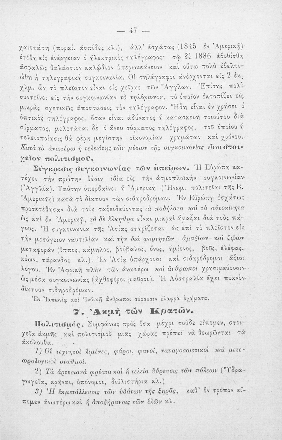 Σχολικό εγχειρίδιο Γεωγραφίας για Ελληνικά Σχολεία και Παρθεναγωγεία που περιλαμβάνει στοιχεία φυσικής, πολιτικής, πολιτισμικής και ιστορικής γεωγραφίας και εξετάζει ενδεικτικά κράτη και περιοχές από τις πέντε ηπείρους από γεωφυσική, πολιτική και οικονομική σκοπιά.