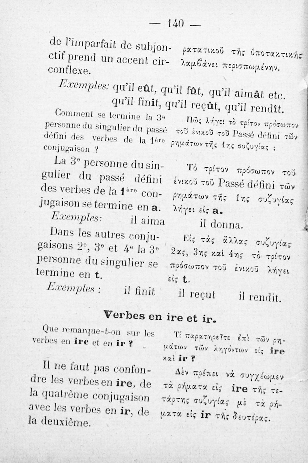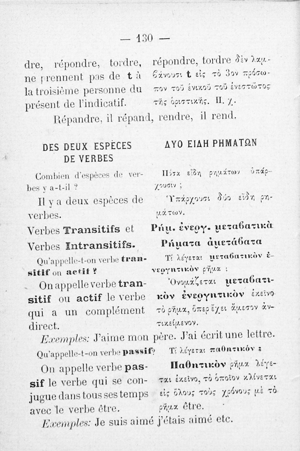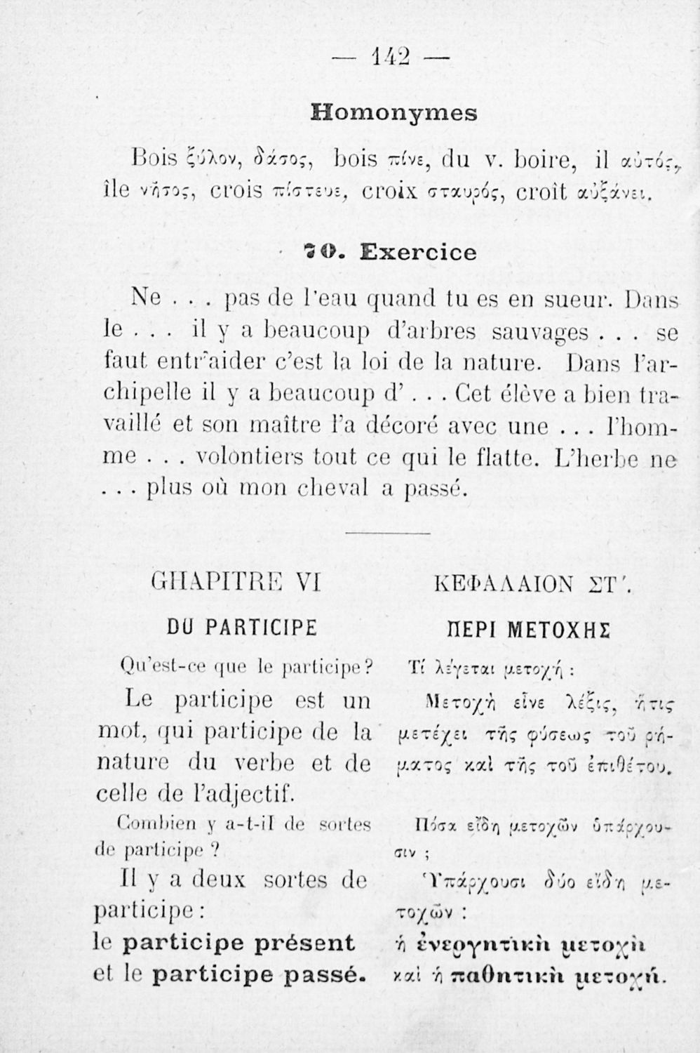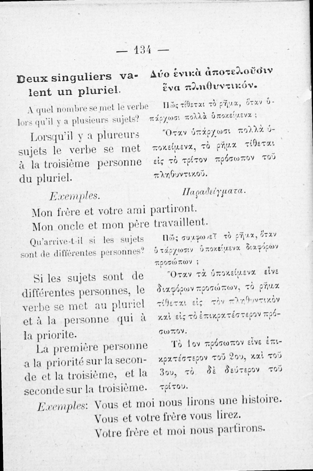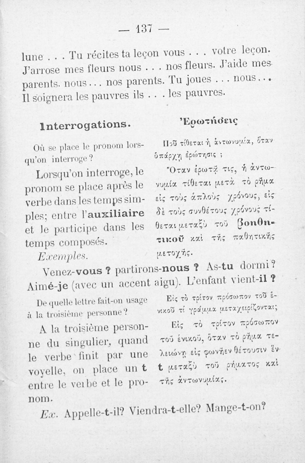 Cours elementaire de grammaire pratique de la langue francaise = Στοιχειώδης πρακτική γραμματική της γαλλικής γλώσσης, γαλλιστί και ελληνιστί κατ΄ ερωταπόκρισιν μετά γυμνασμάτων και ομώνυμων, Προς χρήσιν των Ελληνικών σχολών αμφότερων των φύλων