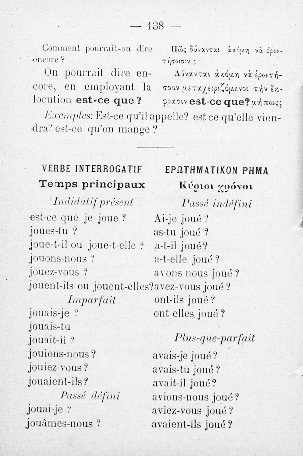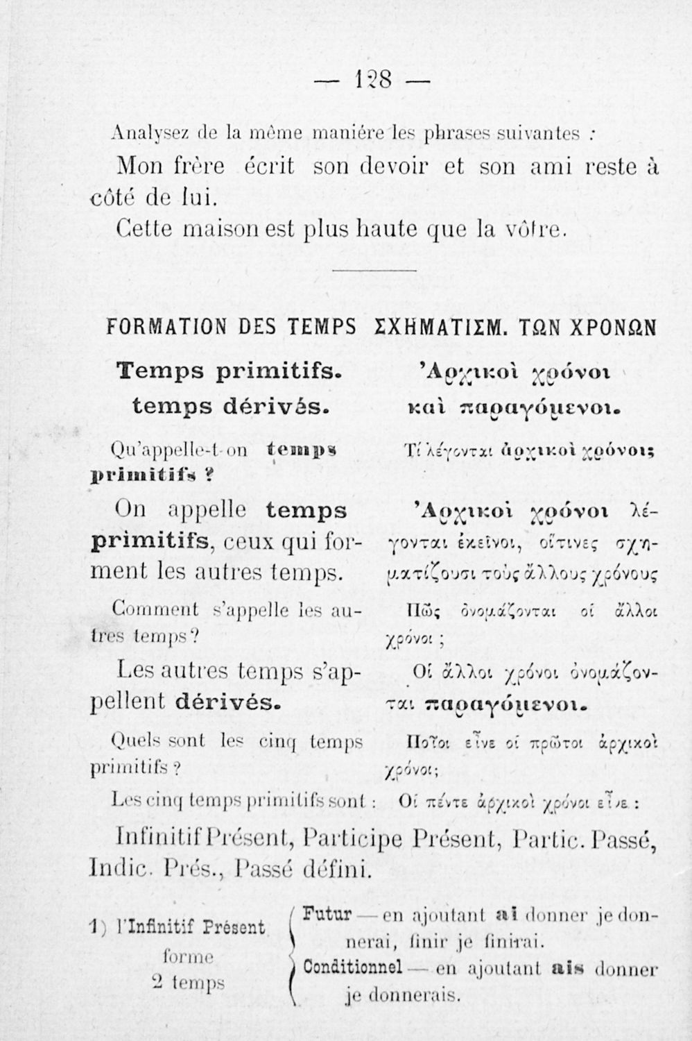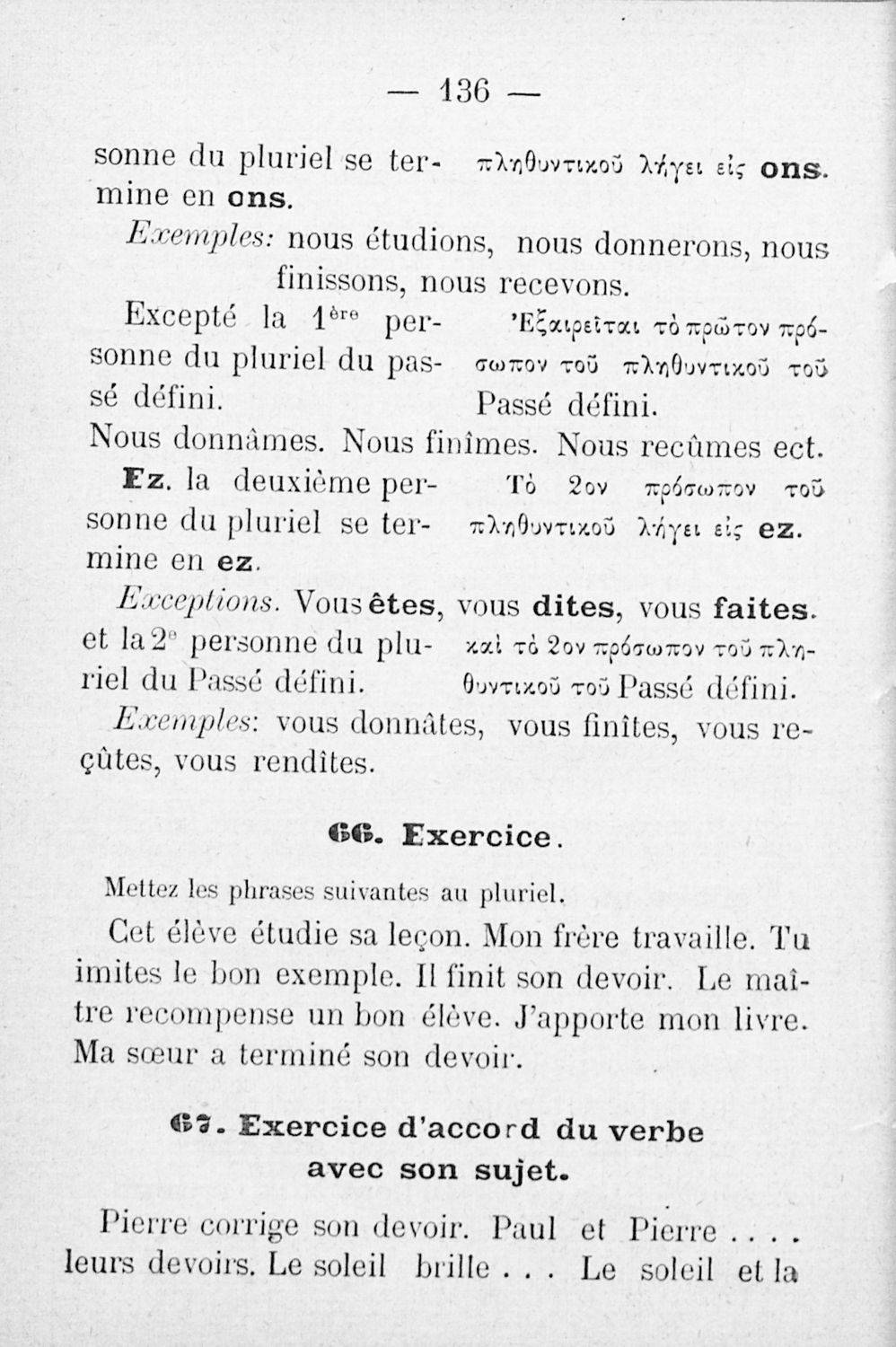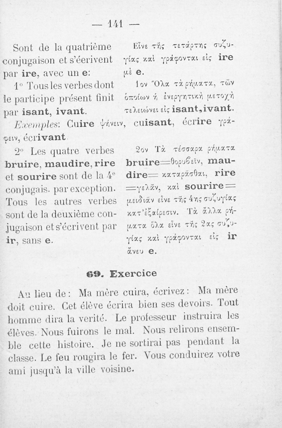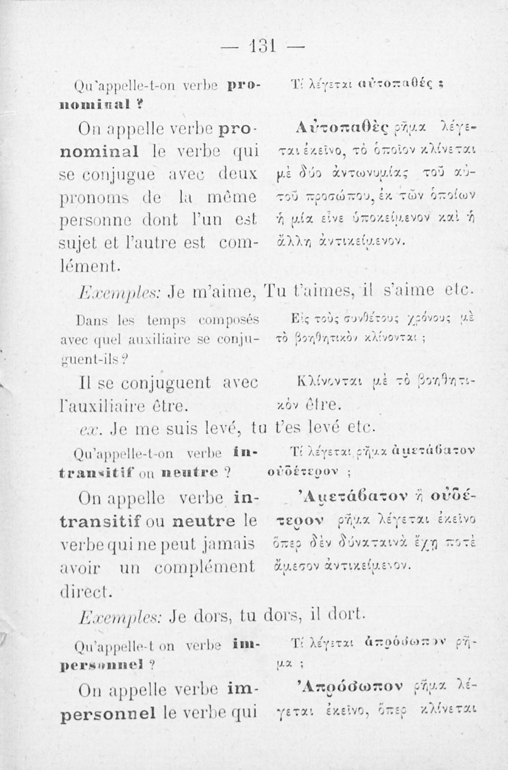 Cours elementaire de grammaire pratique de la langue francaise = Στοιχειώδης πρακτική γραμματική της γαλλικής γλώσσης, γαλλιστί και ελληνιστί κατ΄ ερωταπόκρισιν μετά γυμνασμάτων και ομώνυμων, Προς χρήσιν των Ελληνικών σχολών αμφότερων των φύλων