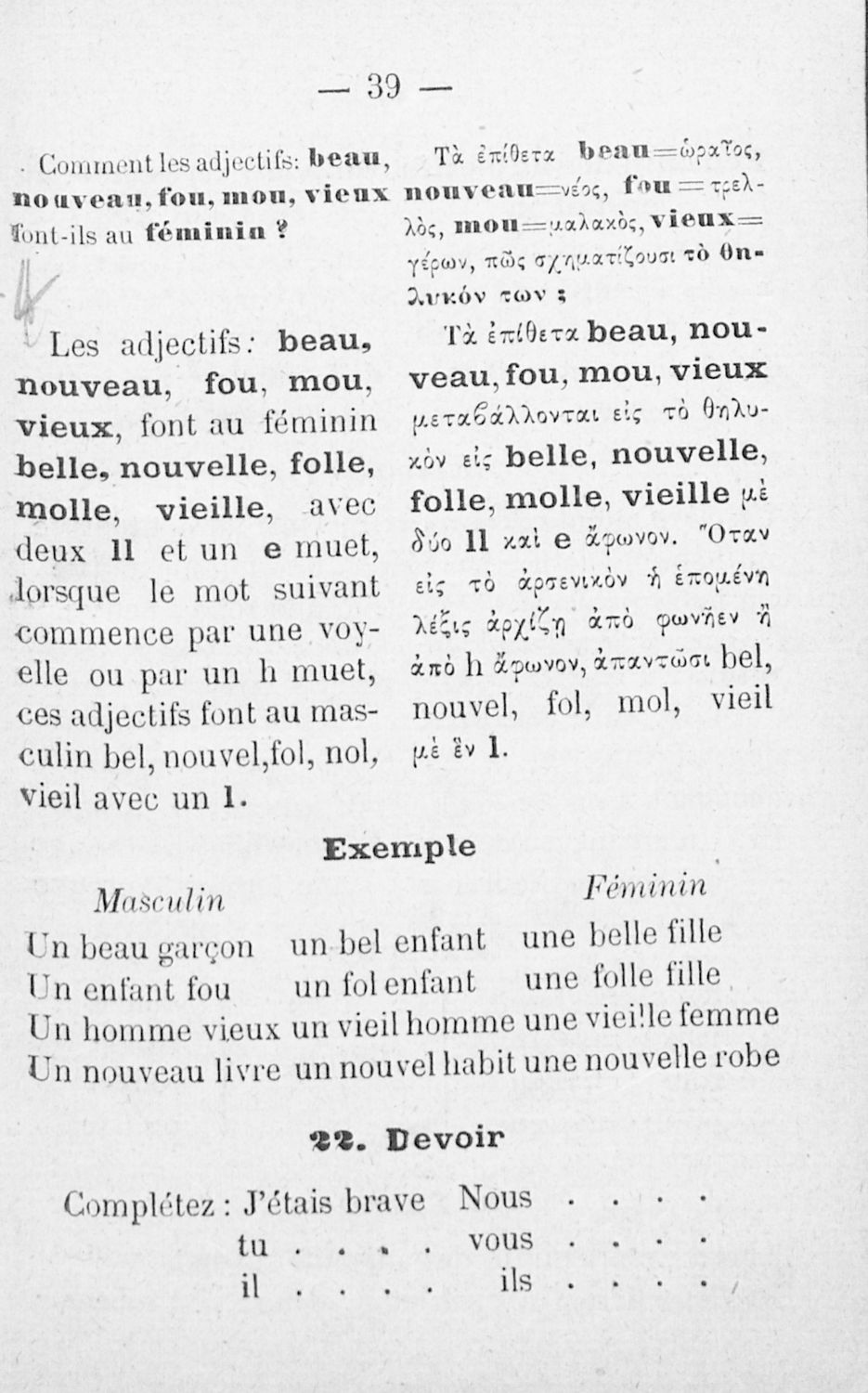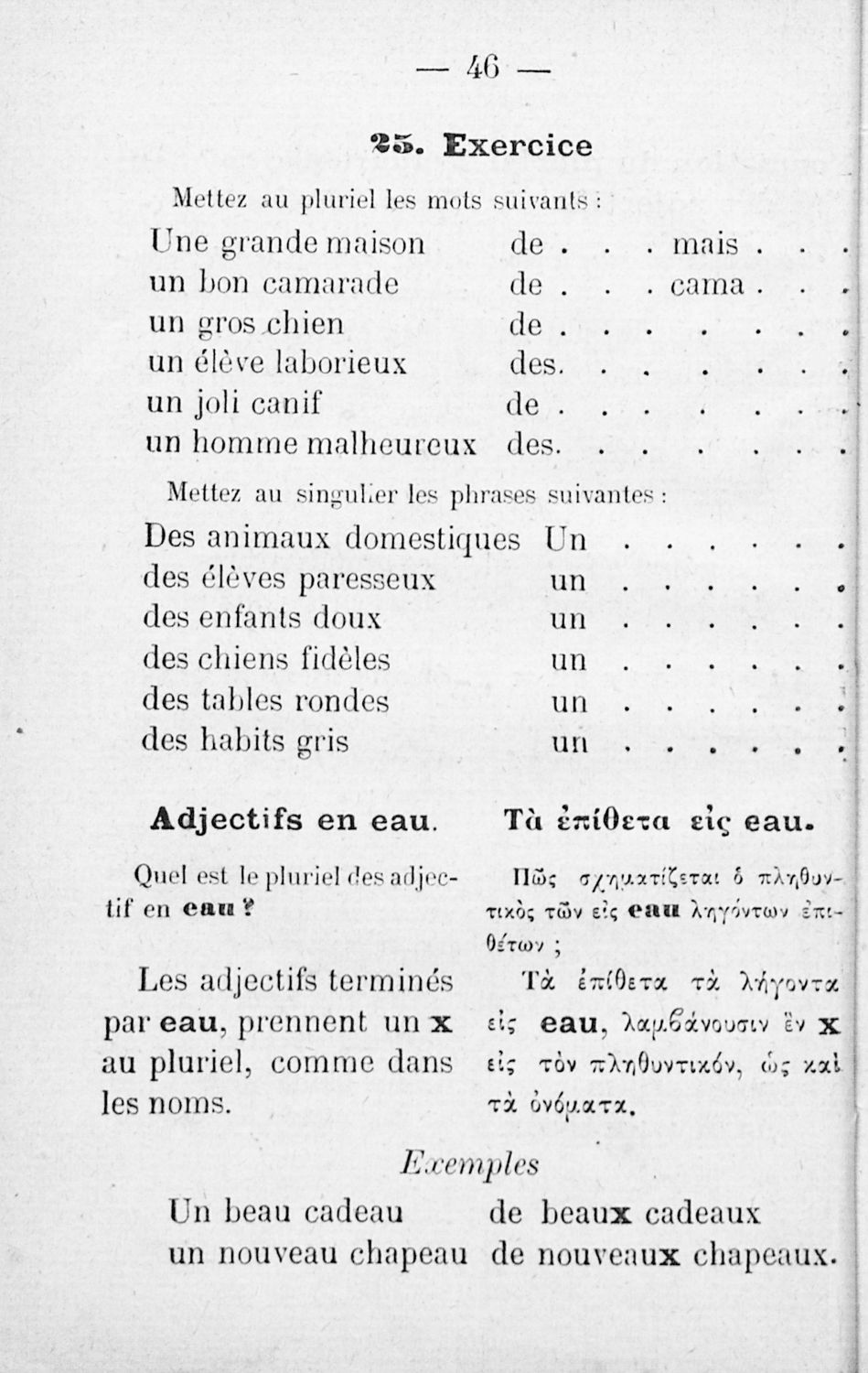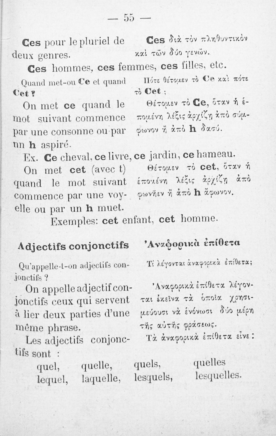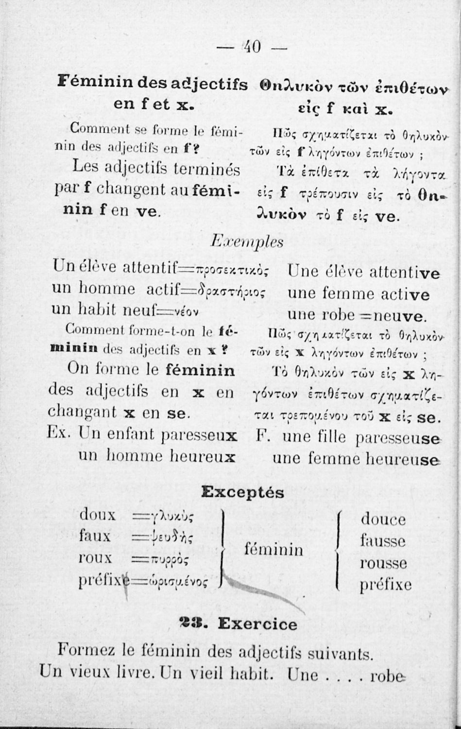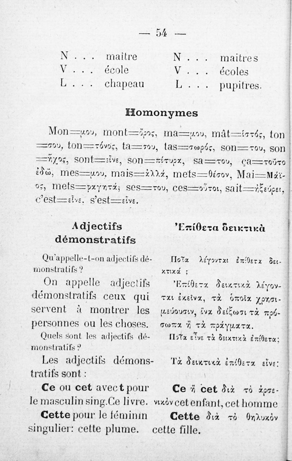 Cours elementaire de grammaire pratique de la langue francaise = Στοιχειώδης πρακτική γραμματική της γαλλικής γλώσσης, γαλλιστί και ελληνιστί κατ΄ ερωταπόκρισιν μετά γυμνασμάτων και ομώνυμων, Προς χρήσιν των Ελληνικών σχολών αμφότερων των φύλων