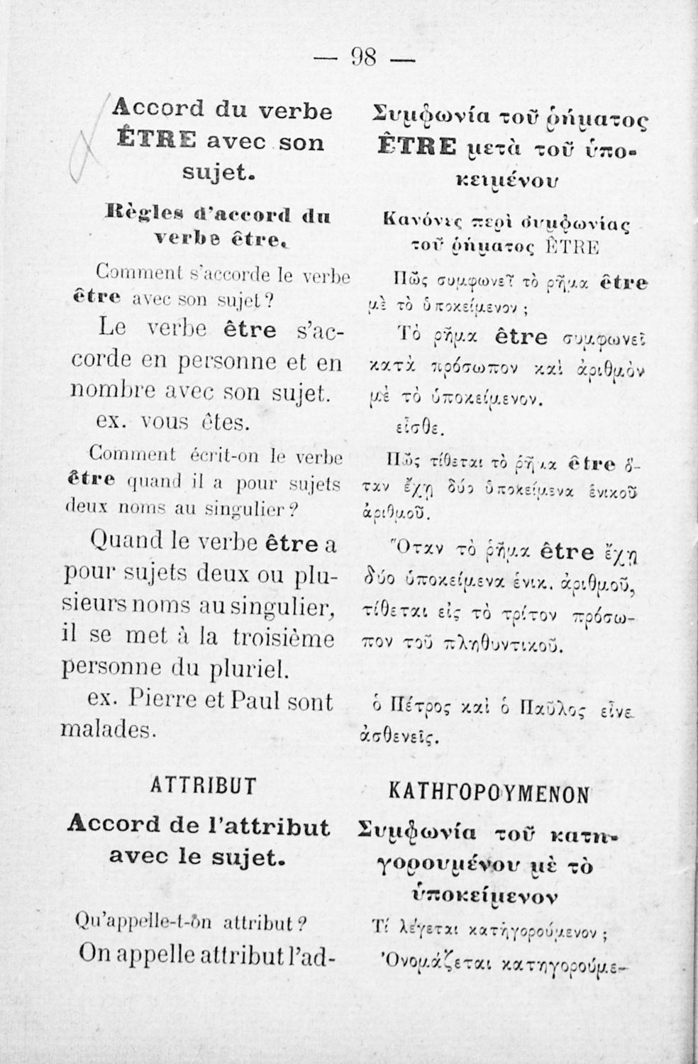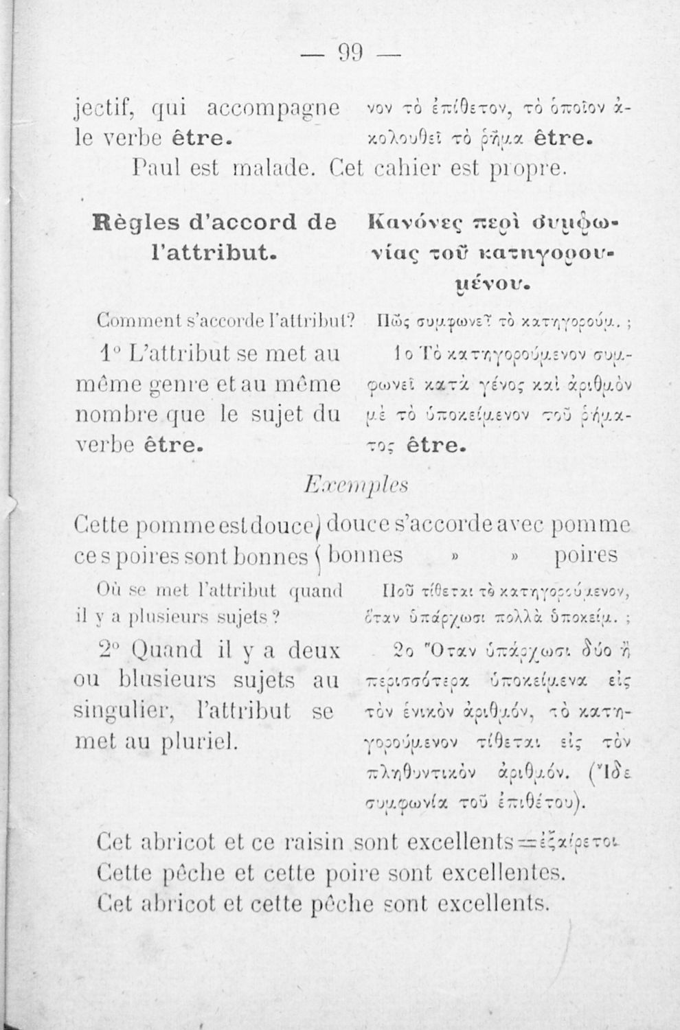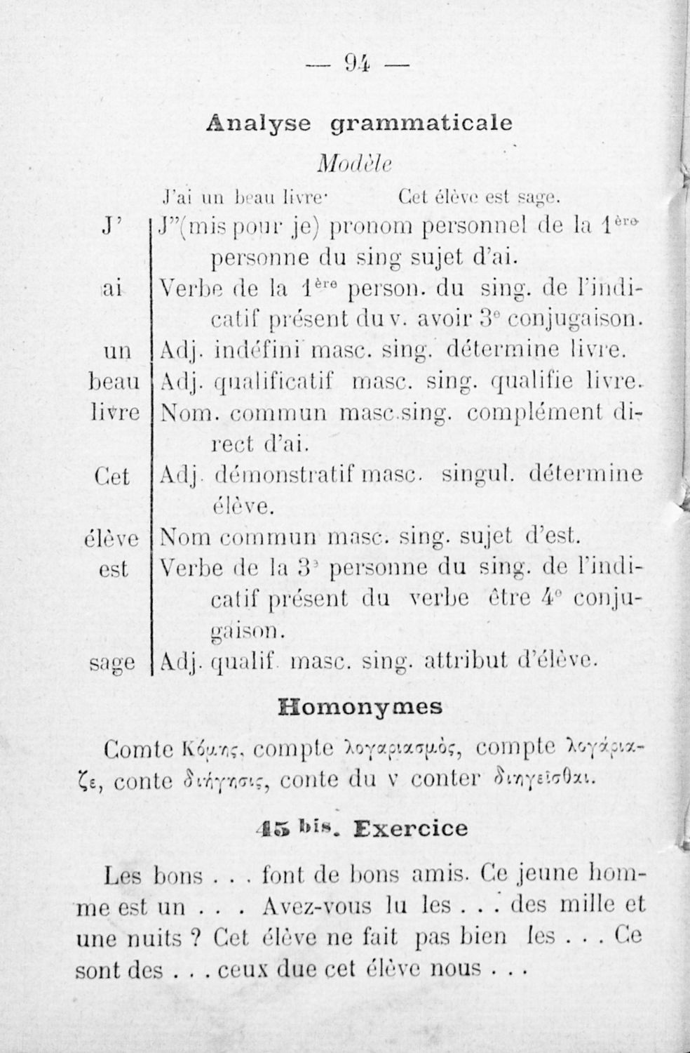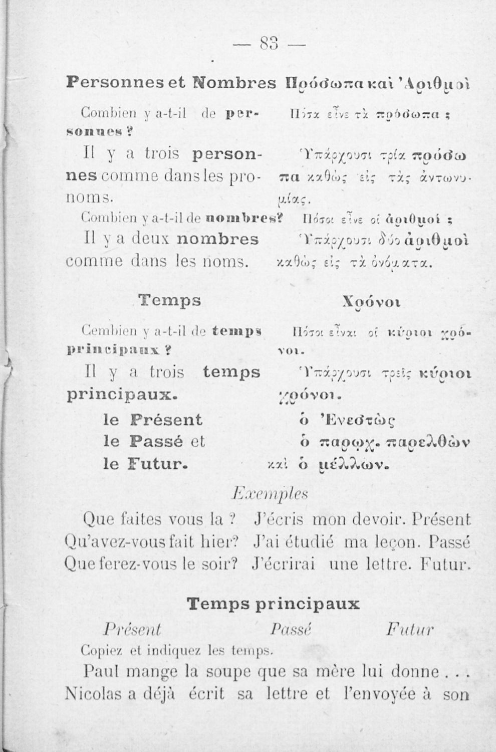 Cours elementaire de grammaire pratique de la langue francaise = Στοιχειώδης πρακτική γραμματική της γαλλικής γλώσσης, γαλλιστί και ελληνιστί κατ΄ ερωταπόκρισιν μετά γυμνασμάτων και ομώνυμων, Προς χρήσιν των Ελληνικών σχολών αμφότερων των φύλων