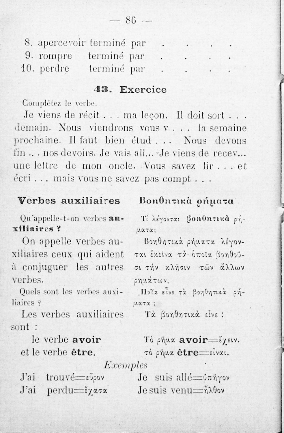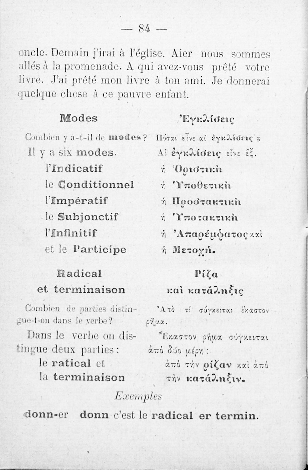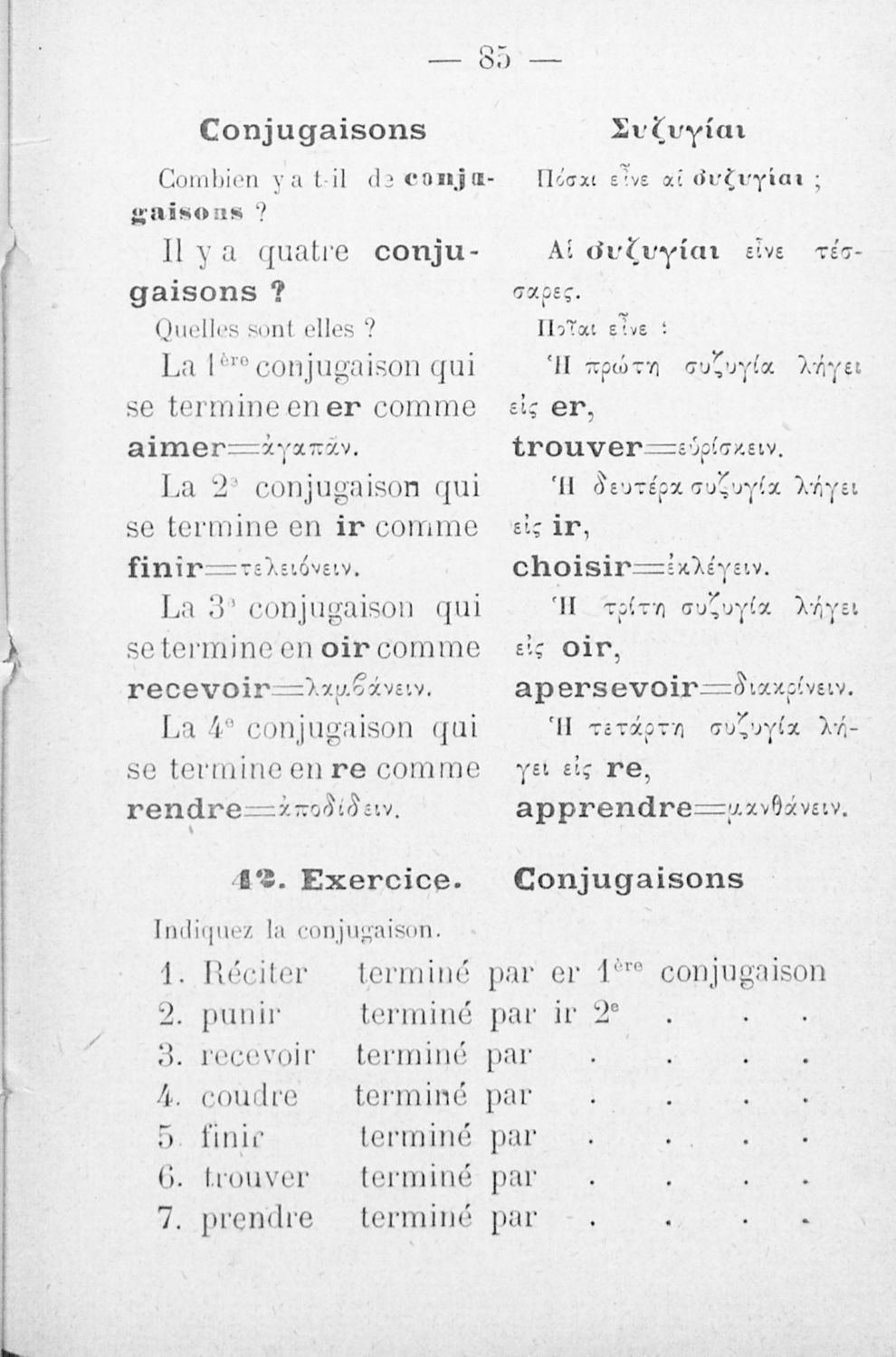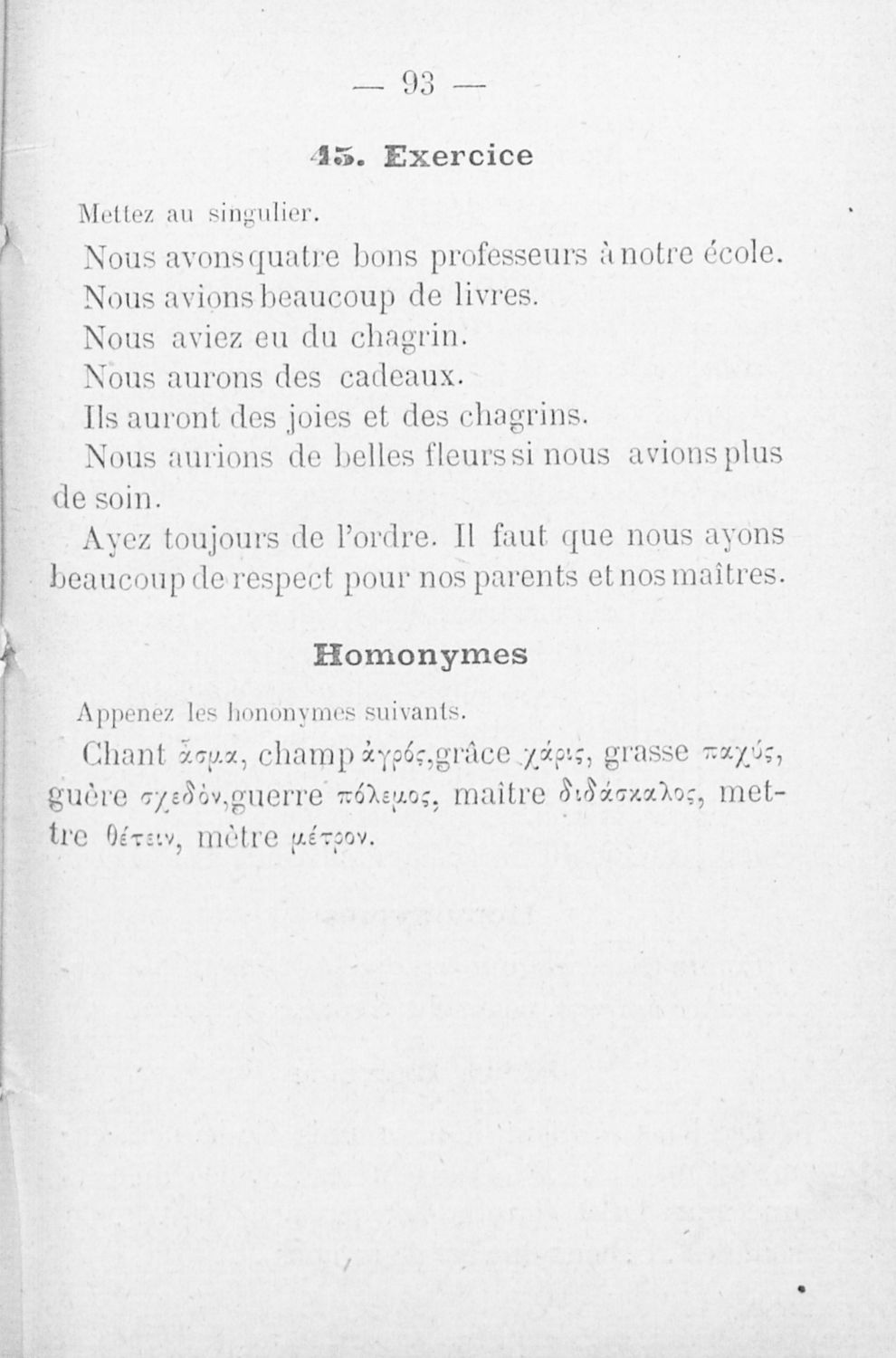 Cours elementaire de grammaire pratique de la langue francaise = Στοιχειώδης πρακτική γραμματική της γαλλικής γλώσσης, γαλλιστί και ελληνιστί κατ΄ ερωταπόκρισιν μετά γυμνασμάτων και ομώνυμων, Προς χρήσιν των Ελληνικών σχολών αμφότερων των φύλων