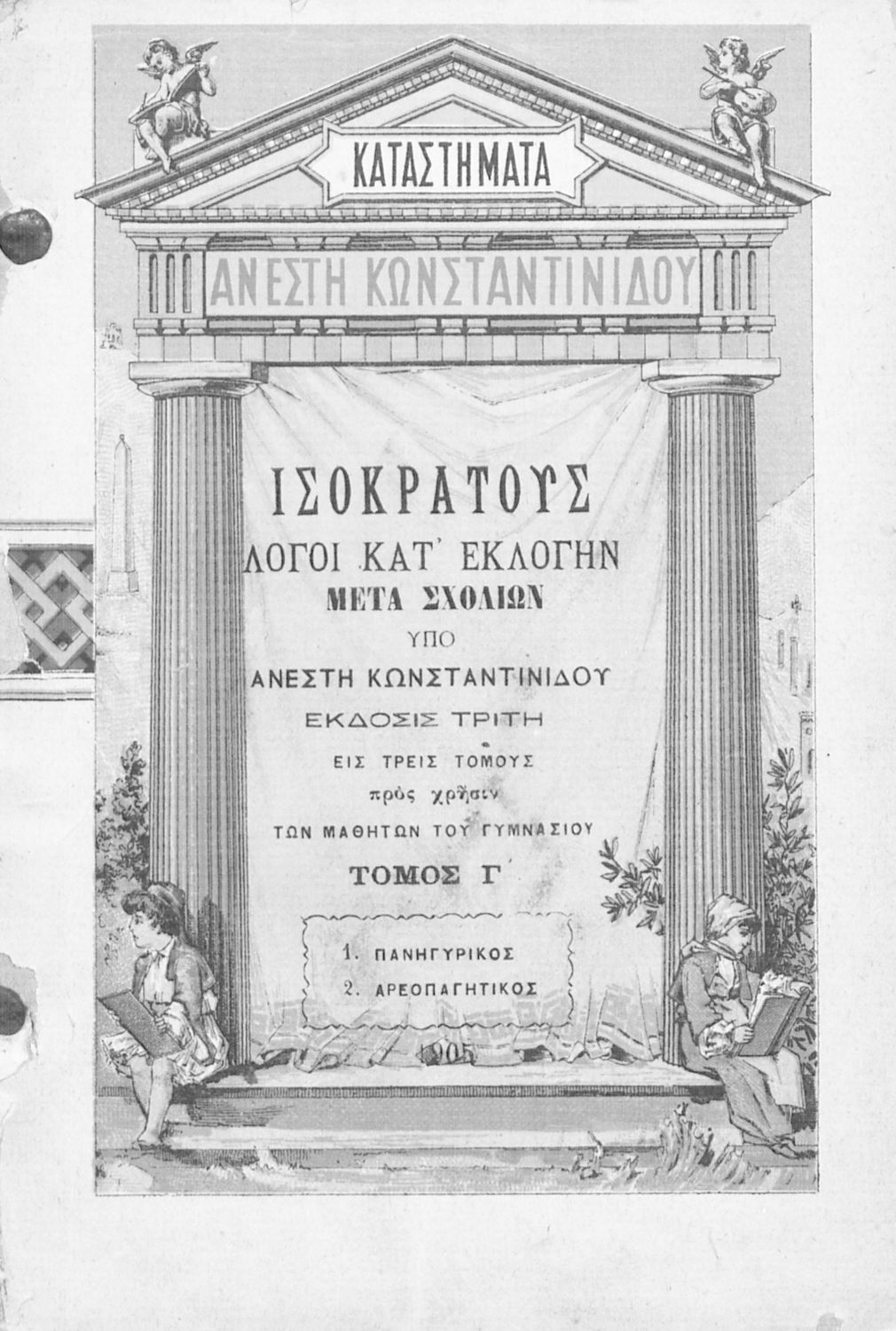 LDR 01247 2200205 4500 035 ## _a02-02257 040 ## _aΕλληνικό Λογοτεχνικό και Ιστορικό Αρχείο 041 ## _ael 100 ## _aΙσοκράτης _aΑνέστης Κωνσταντινίδης (σχόλια) 110 ## _a1904 ΙΣΟ 245 0# _aΙσοκράτους Λόγοι κατ΄ εκλογήν εις τρεις τόμους προς χρήσιν των μαθητών του γυμνασίου τόμος Γ΄ διά την Β΄ τάξιν 250 ## _a3η Έκδοση 260 ## _aΑθήνα _bΤυπογραφείο: Ανέστης Κωνσταντινίδης _c1904 300 ## _a169 _bΣκίτσα (έγχρωμα) 520 ## _aΣχολικό εγχειρίδιο Αρχαίων Ελληνικών Β΄ Γυμνασίου που περιλαμβάνει τους Λόγους του Ισοκράτη Πανηγυρικός και Αρεοπαγίτικος και ερμηνευτικά σχόλια. 521 ## _aΒ' Γυμνασίου 522 ## _aΕλλάδα 546 ## _aΚαθαρεύουσα 563 ## _aΜαλακό Εξώφυλλο 650 #4 _aΑθηναίοι _aΒ΄ Αθηναϊκή Συμμαχία _aΒάρβαροι _aΈλληνες